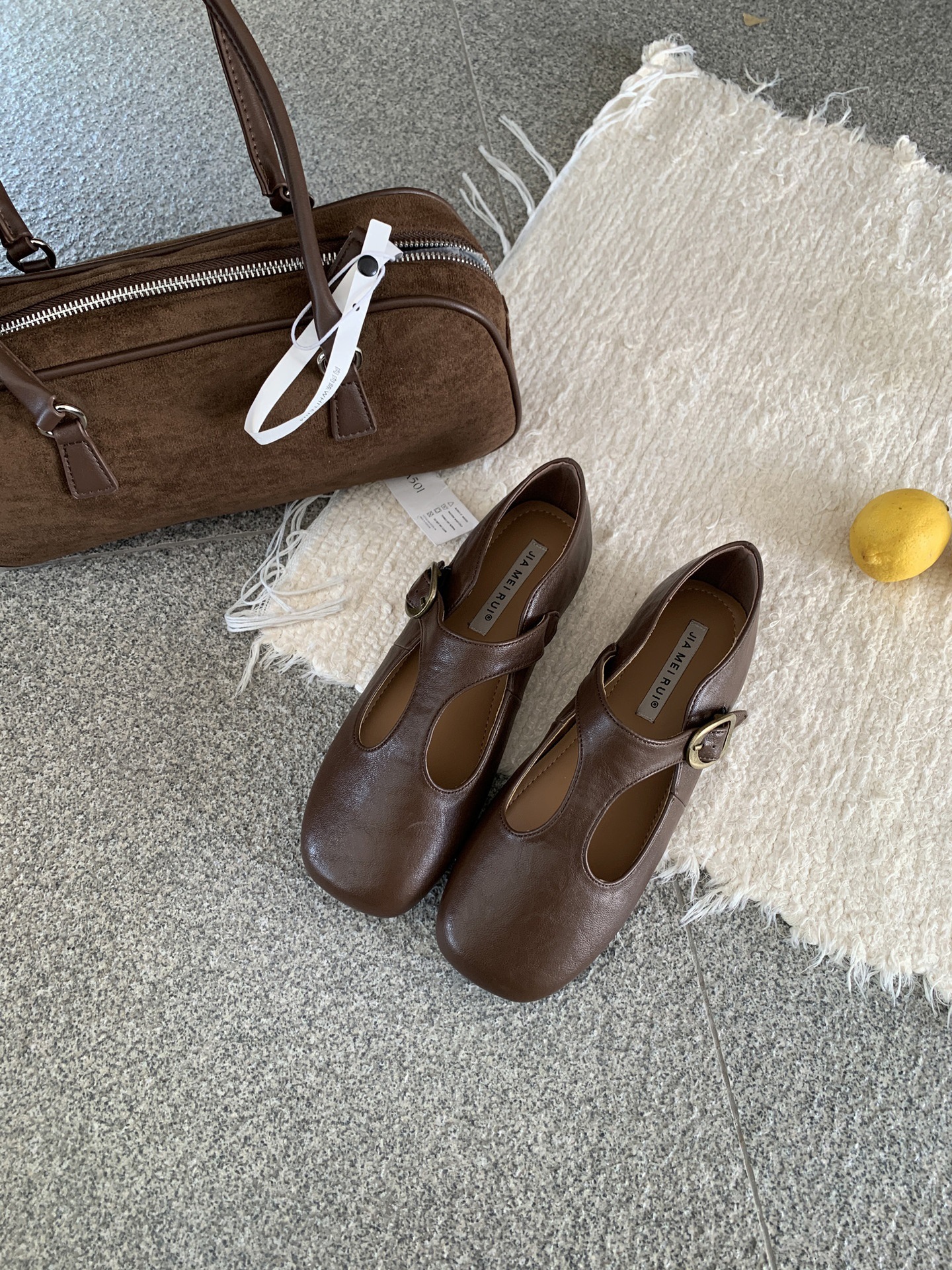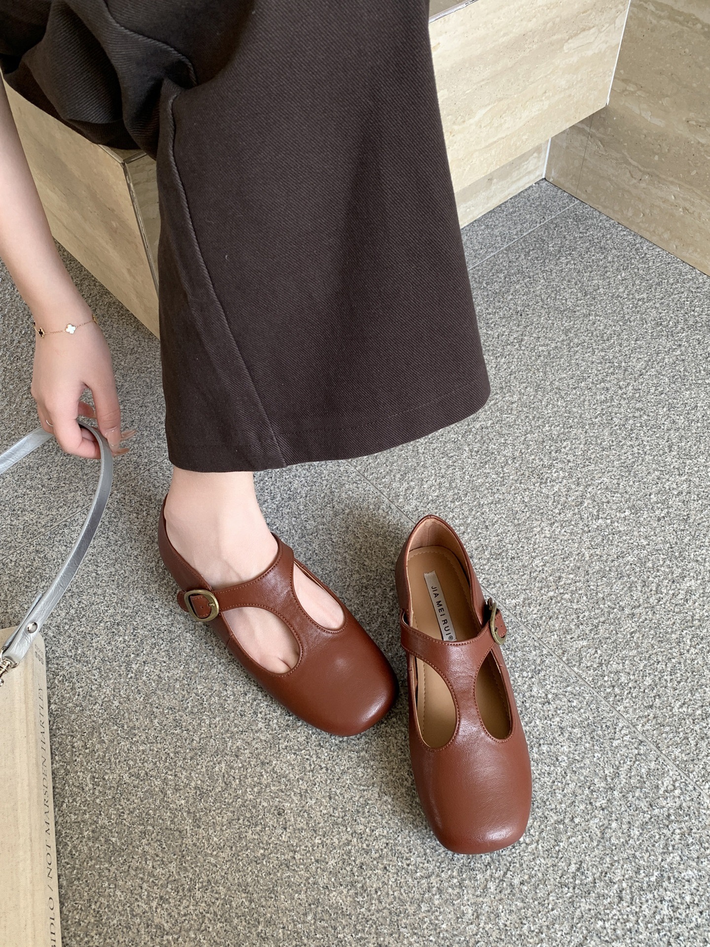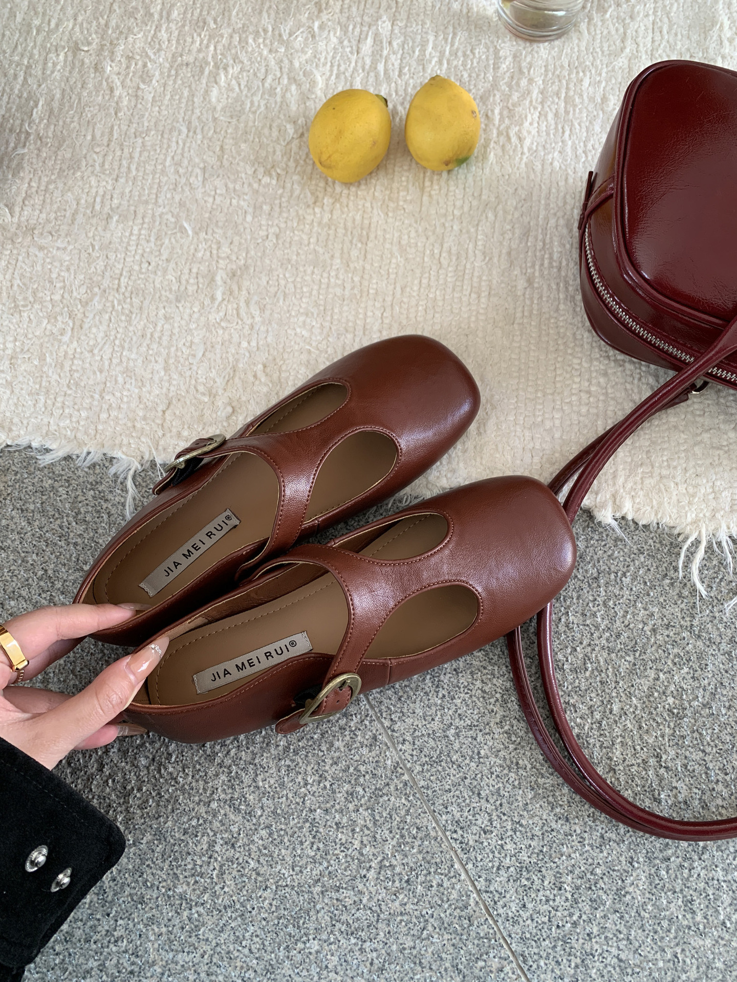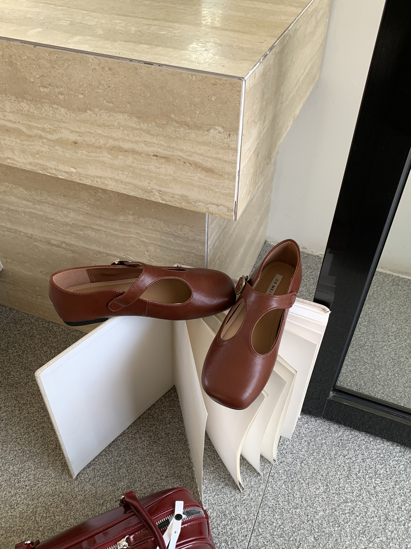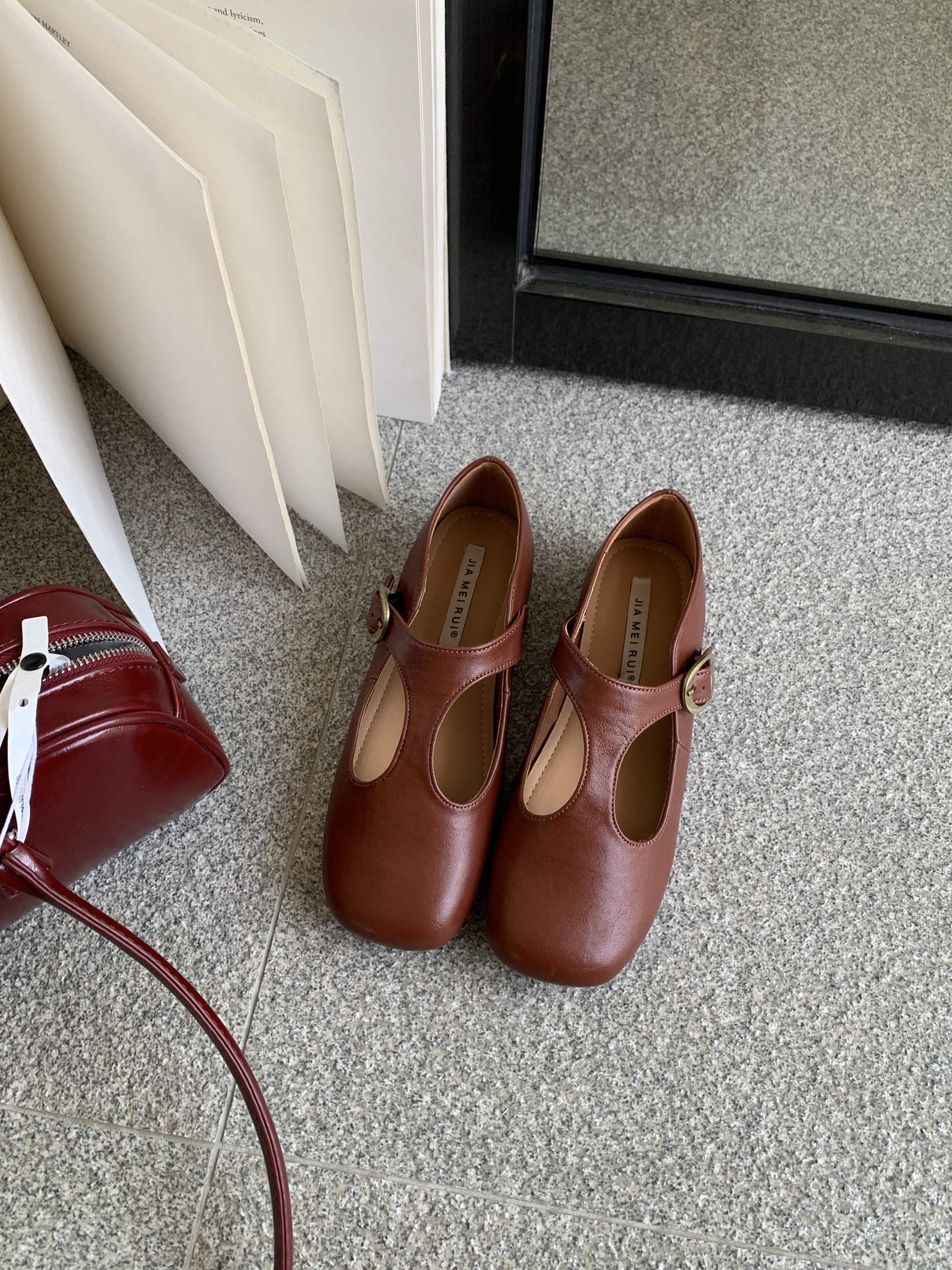 늦은 저녁 스타일 모리 스타일 레트로 레드 싱글 레이어 신발 여성 신발 2025 봄 프랑스 플랫 소프트 하단 우아한 통근 우유 신발스토어 가기