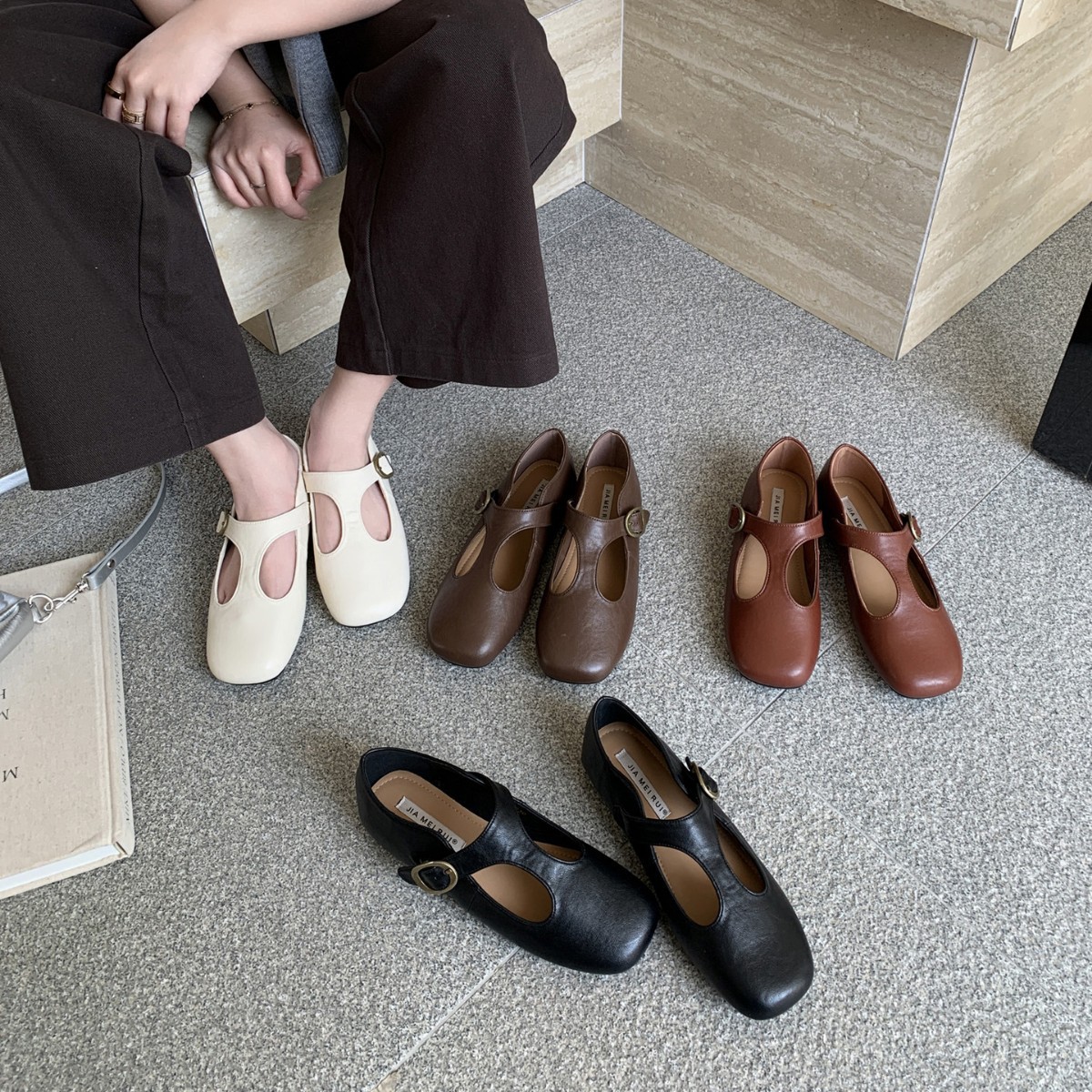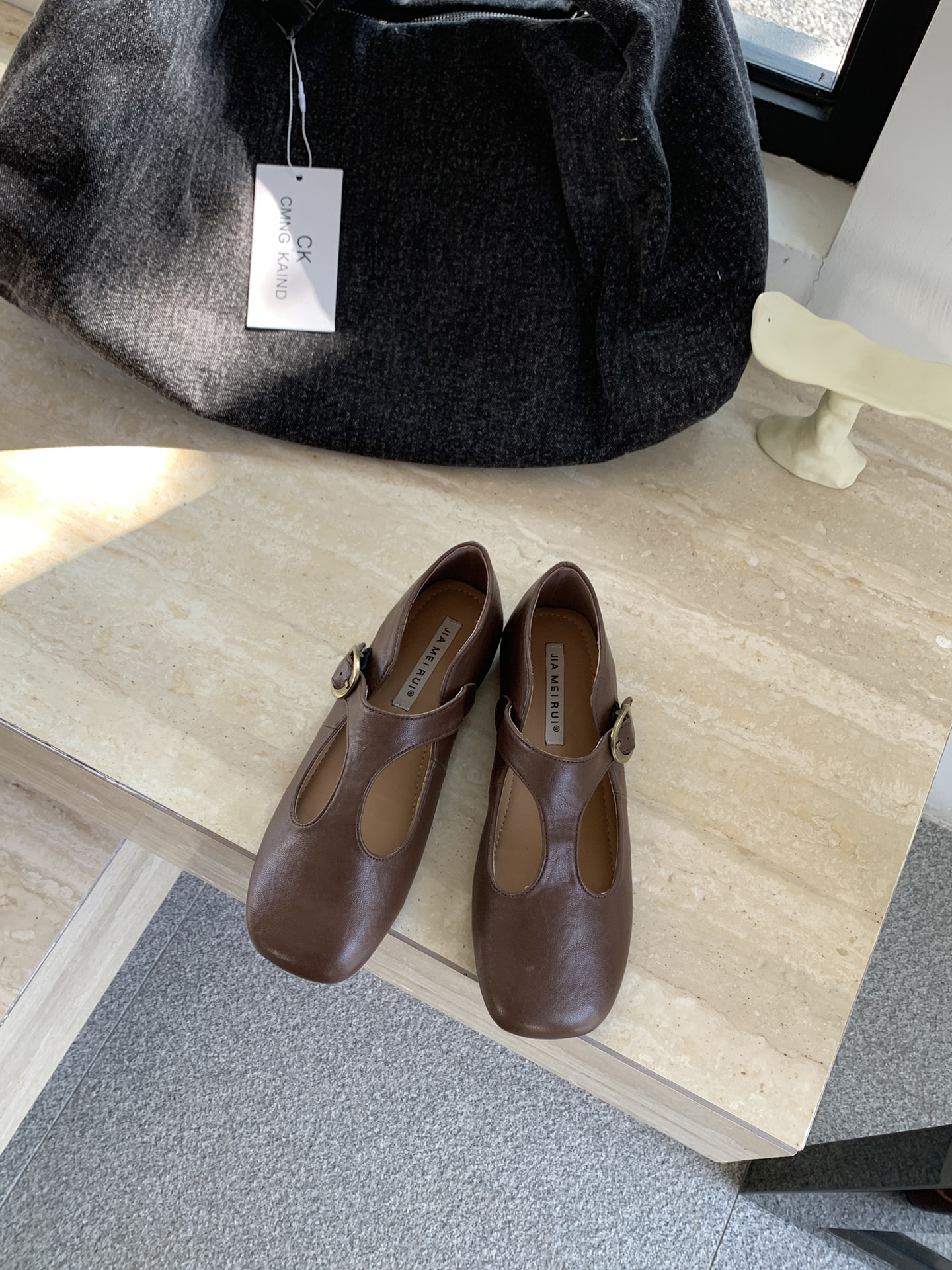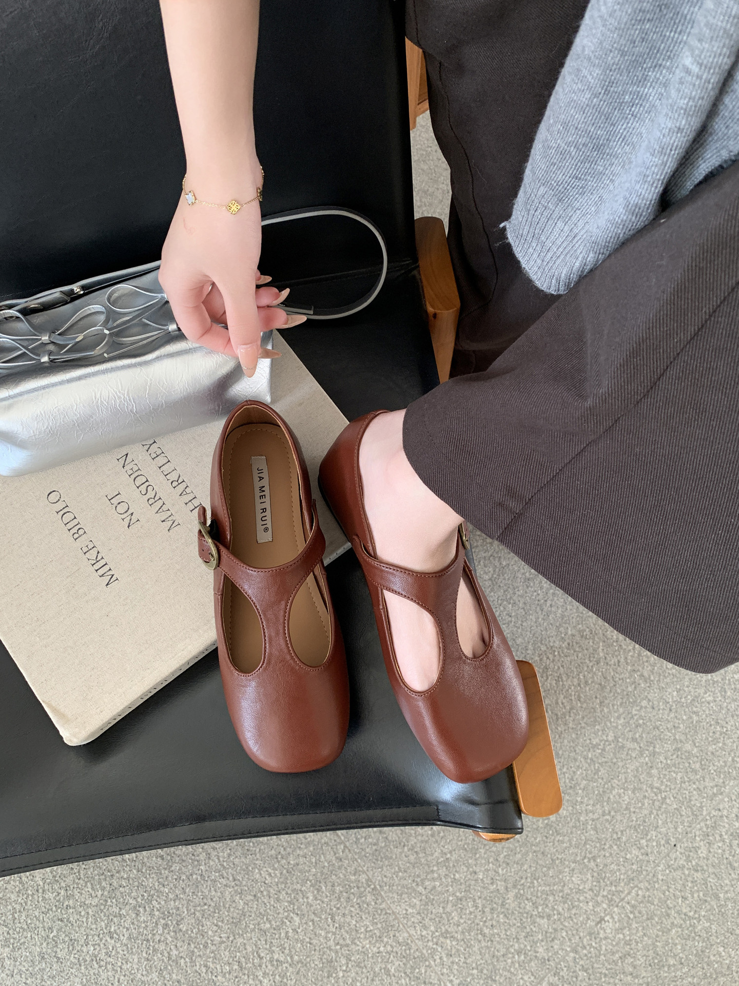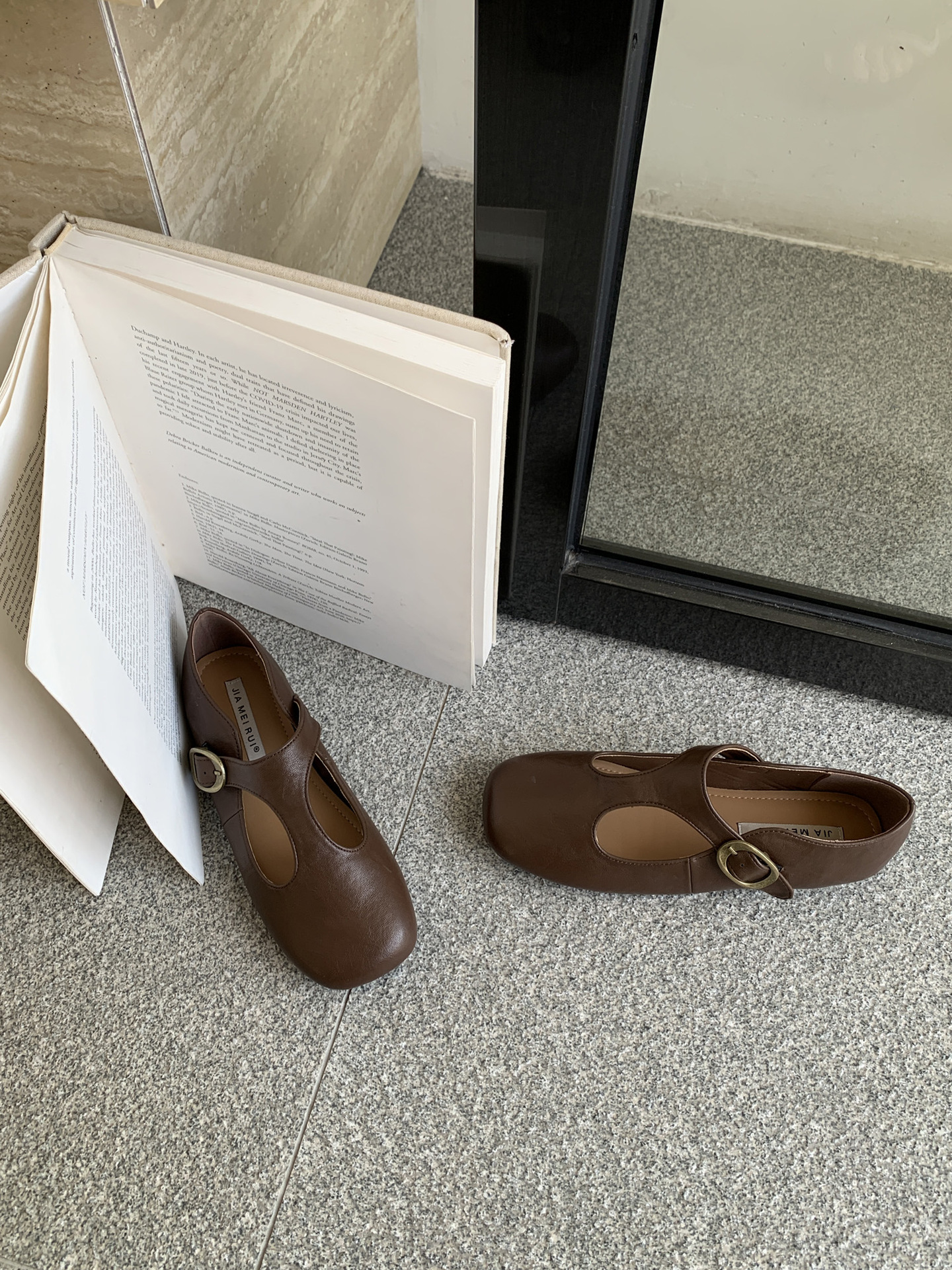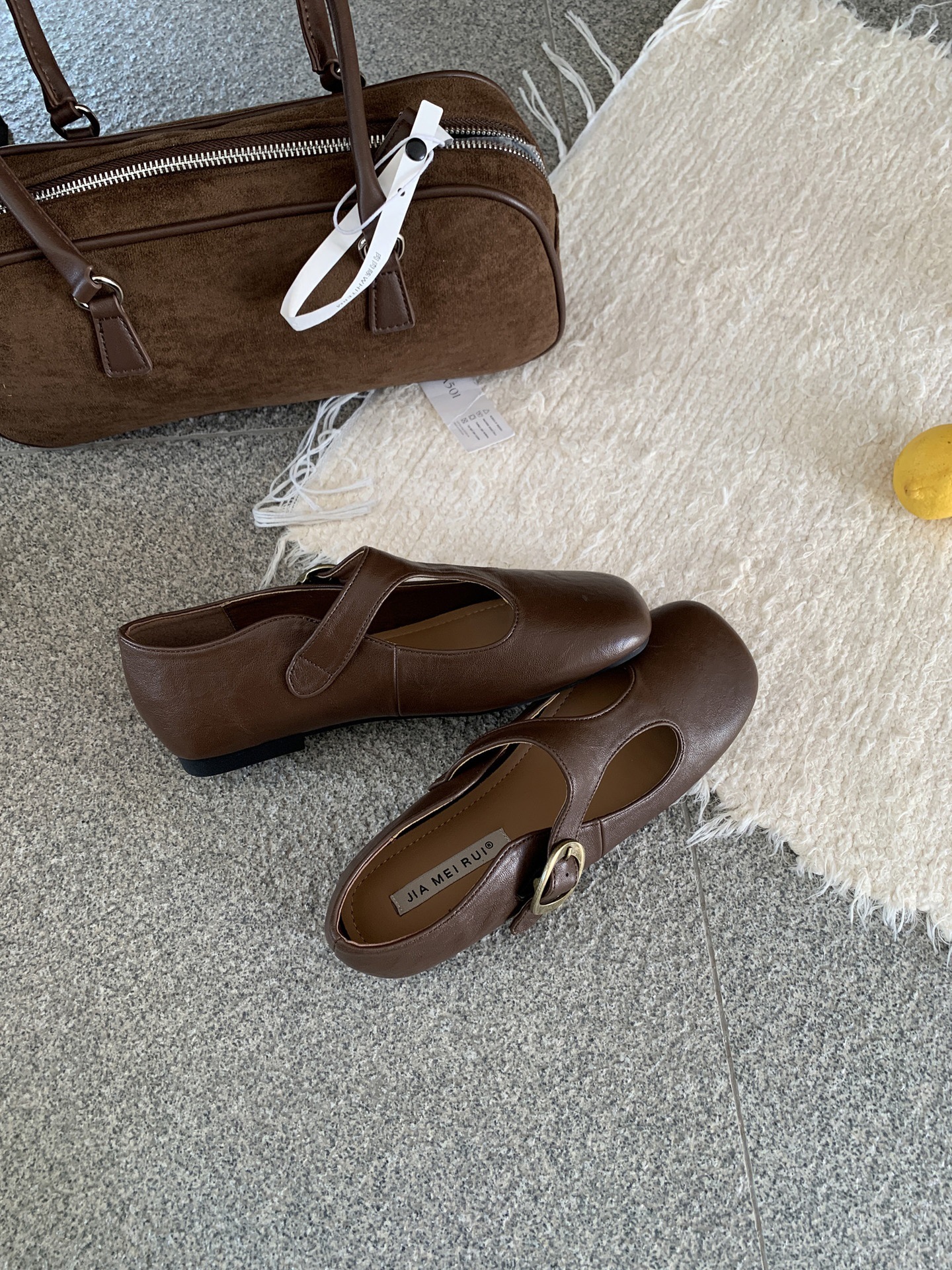 늦은 저녁 스타일 모리 스타일 레트로 레드 싱글 레이어 신발 여성 신발 2025 봄 프랑스 플랫 소프트 하단 우아한 통근 우유 신발스토어 가기