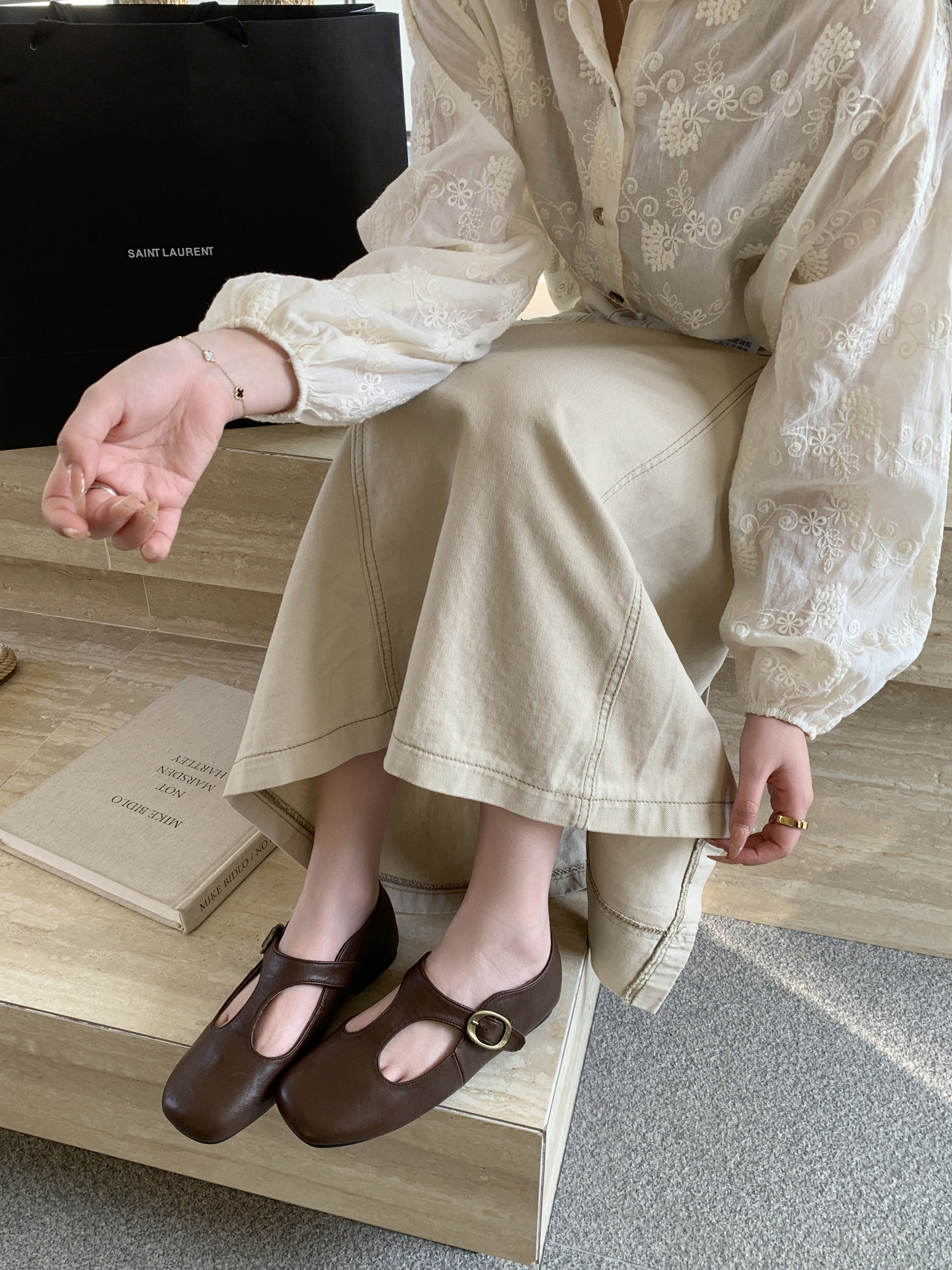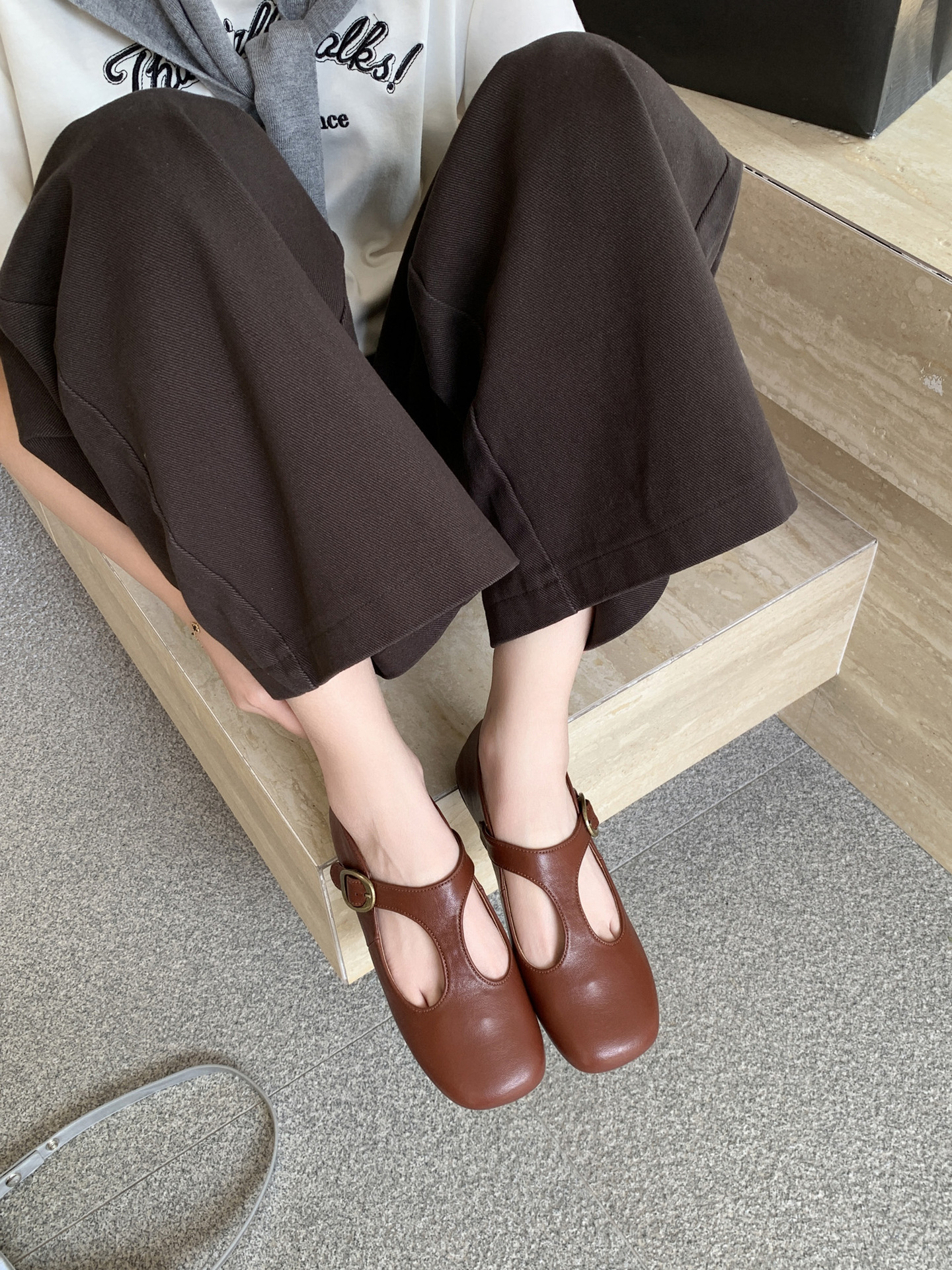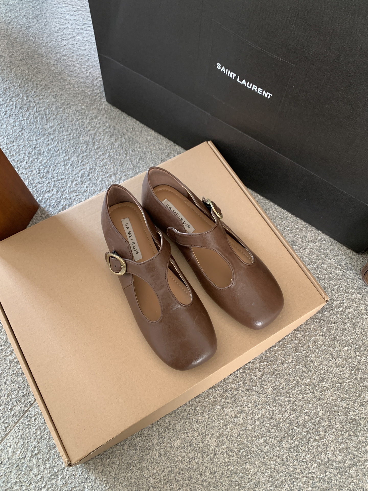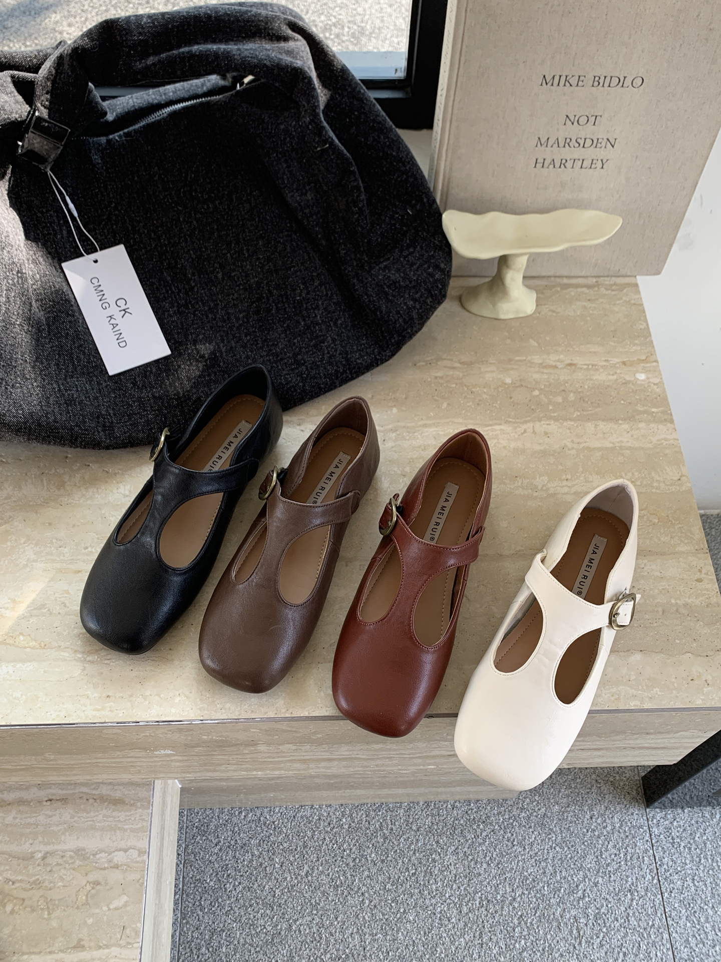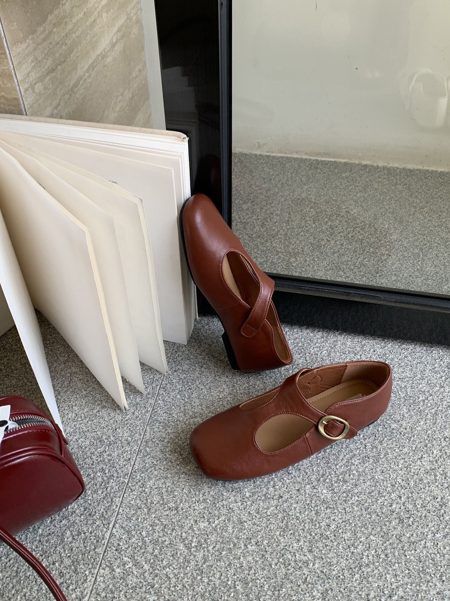 늦은 저녁 스타일 모리 스타일 레트로 레드 싱글 레이어 신발 여성 신발 2025 봄 프랑스 플랫 소프트 하단 우아한 통근 우유 신발스토어 가기