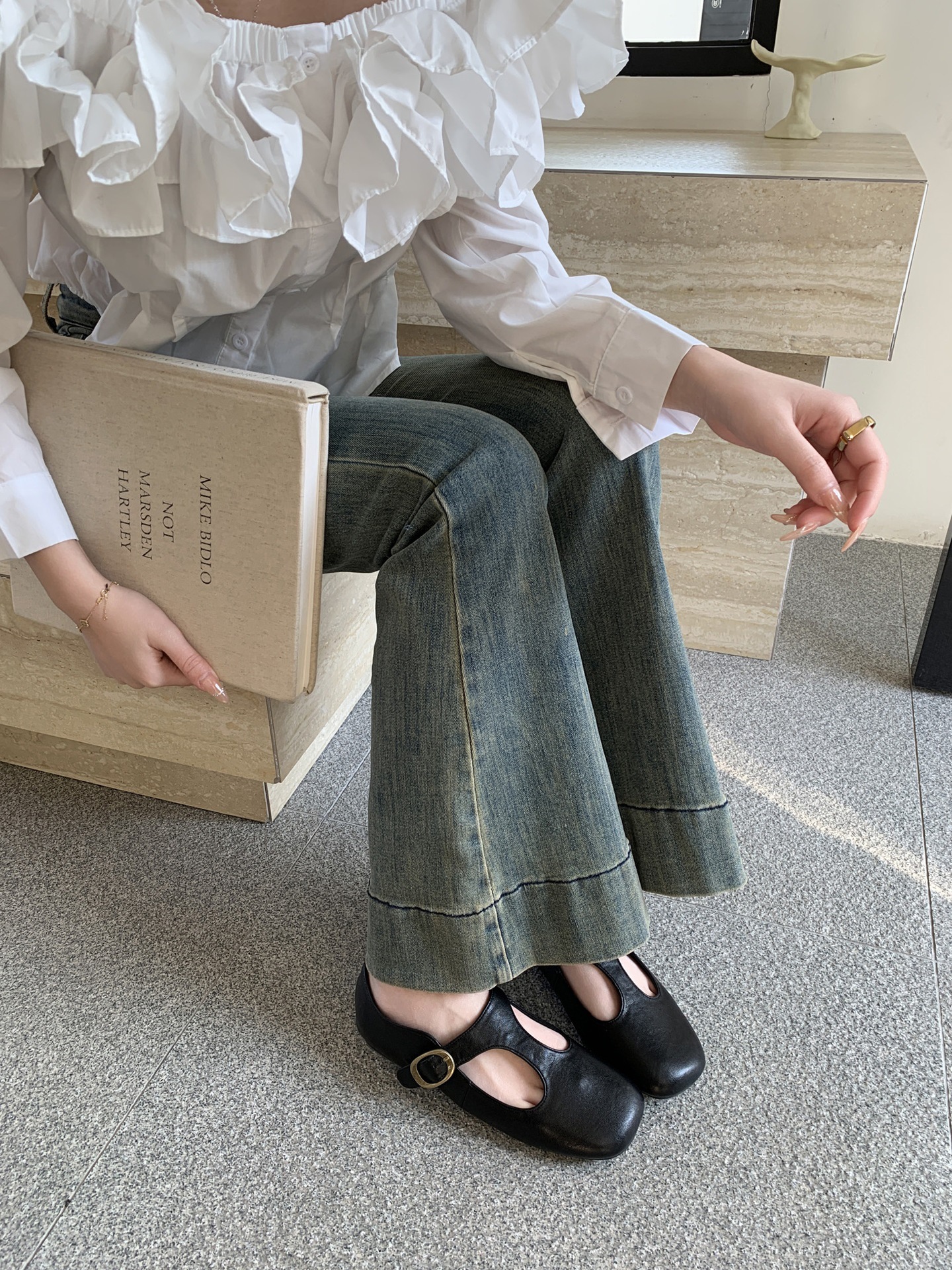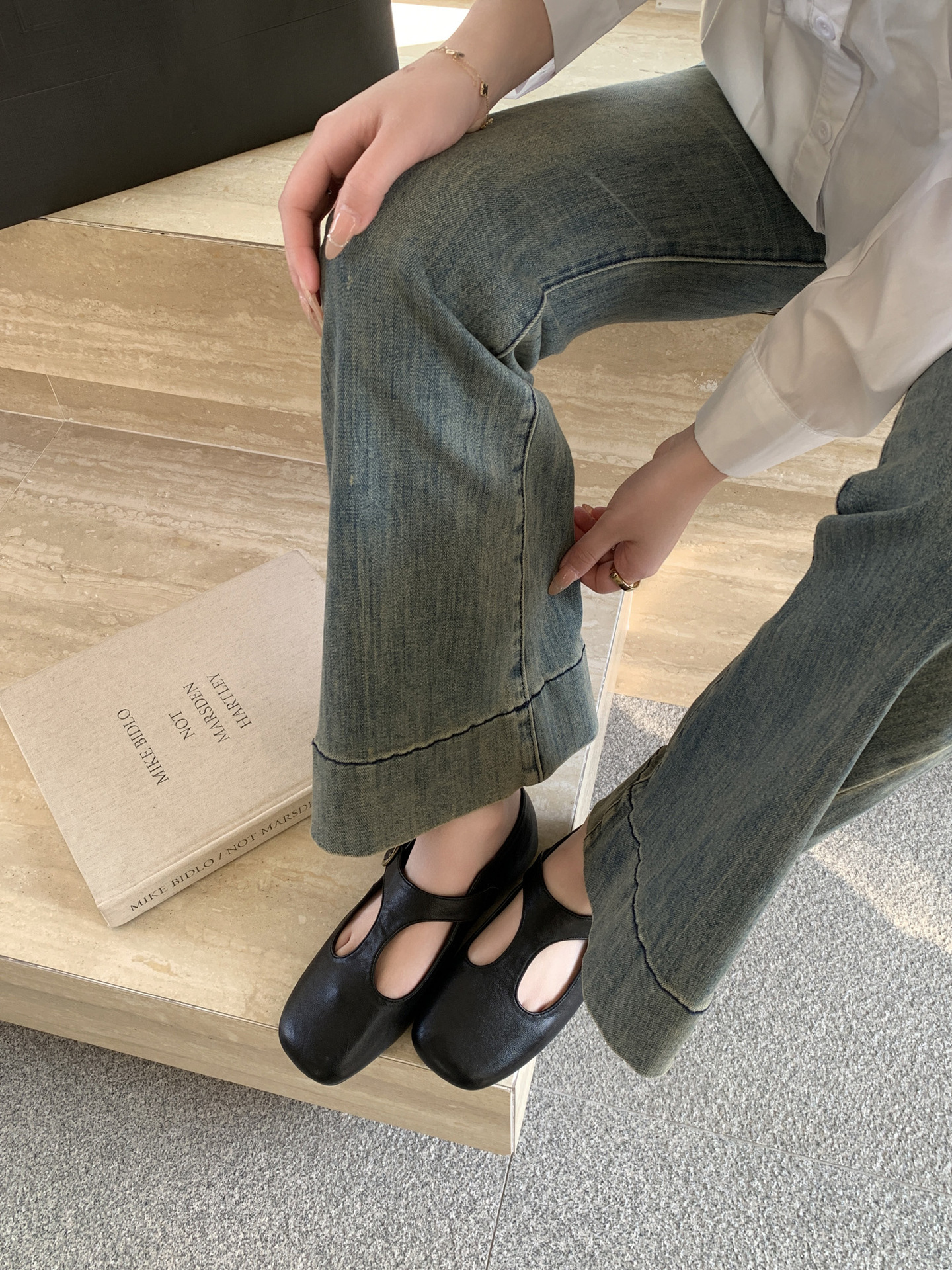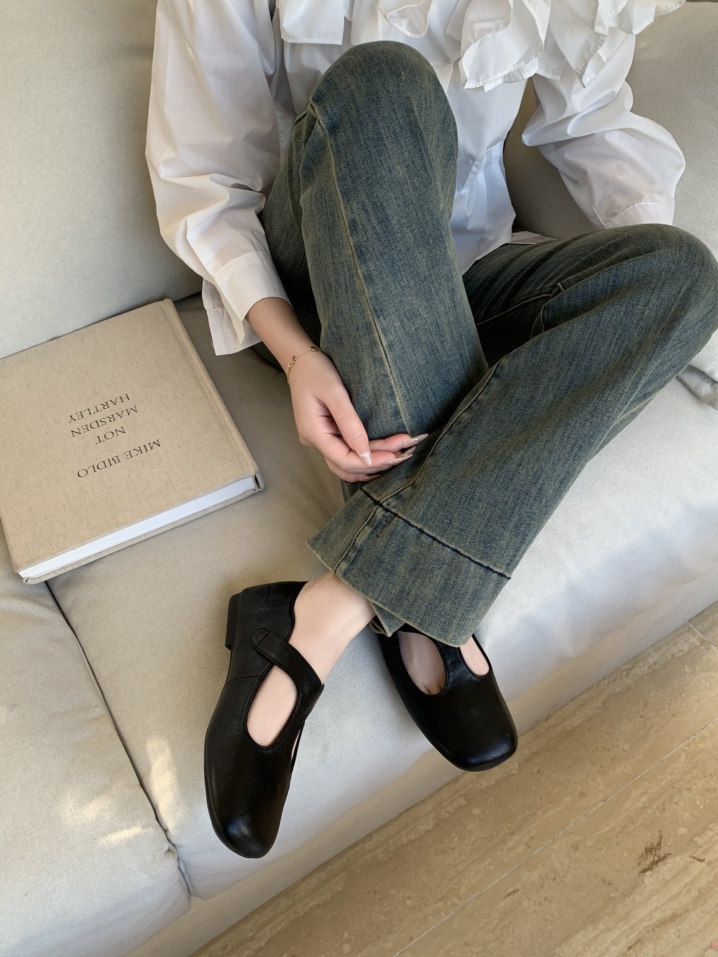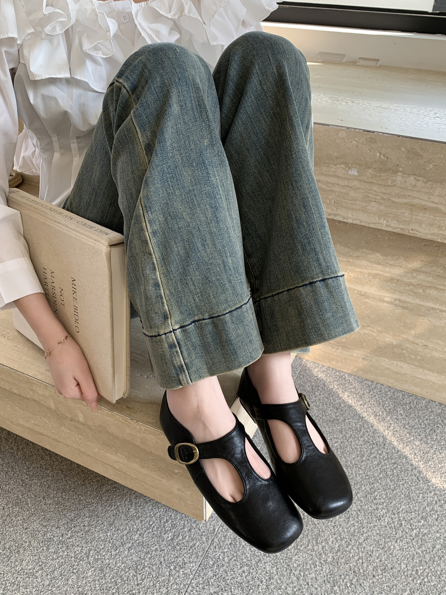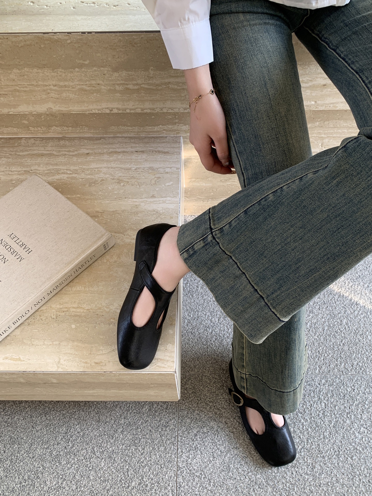 늦은 저녁 스타일 모리 스타일 레트로 레드 싱글 레이어 신발 여성 신발 2025 봄 프랑스 플랫 소프트 하단 우아한 통근 우유 신발스토어 가기
