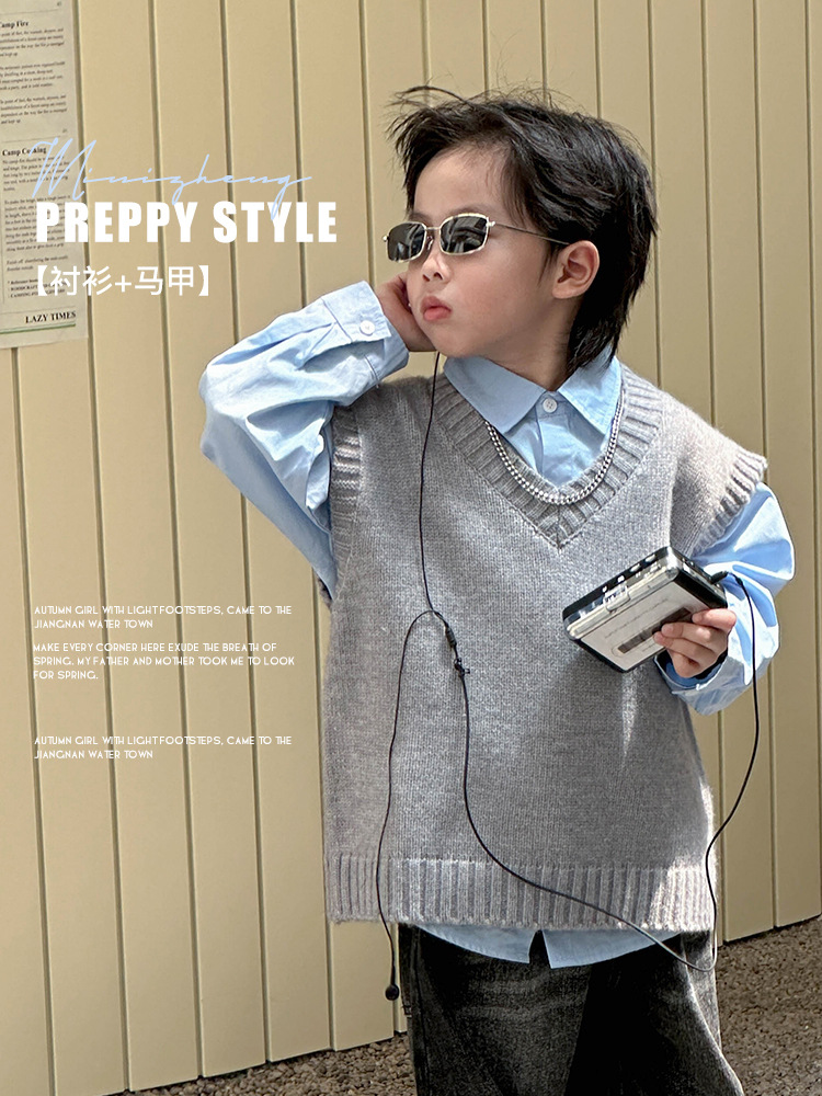 아동복 남아 스웨터 조끼 2025 가을 신상 아동 한국 스타일 조끼 상의 큰 아이 봄 가을 민소매 옷