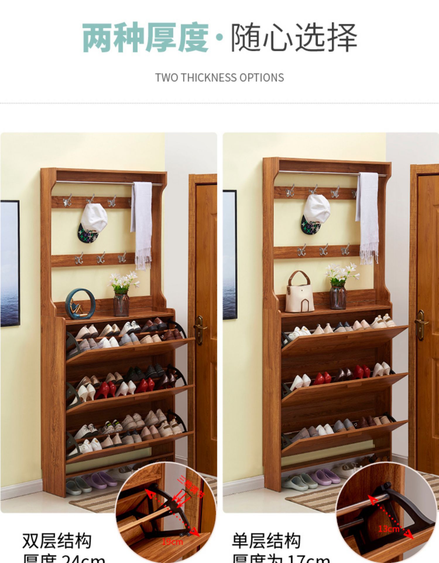 투킹 버킷 신발 캐비닛 초박형 17cm 간단한 현대 저장 가정용 대용량 도어 행거가있는 경제적 인 신발 캐비닛