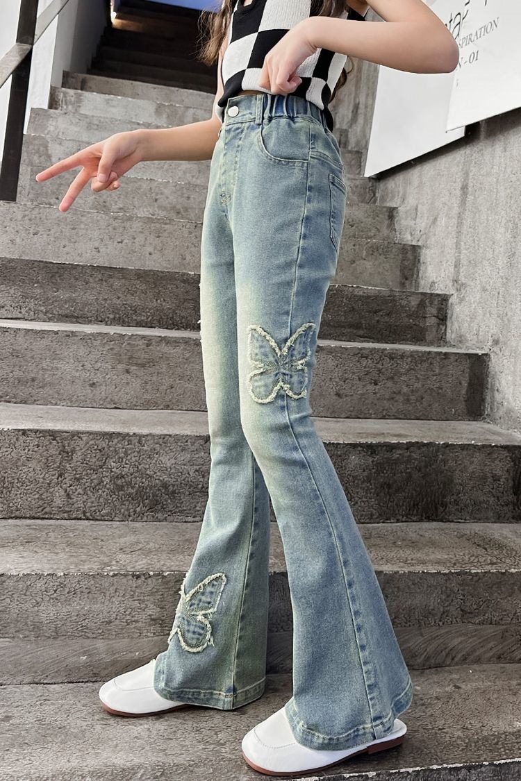소녀들의 가을과 겨울 더블 에지 플레어 팬츠 2025 큰 어린이 겨울복 레트로 원피스 벨벳 청바지 걸스 기모 바지스토어 가기