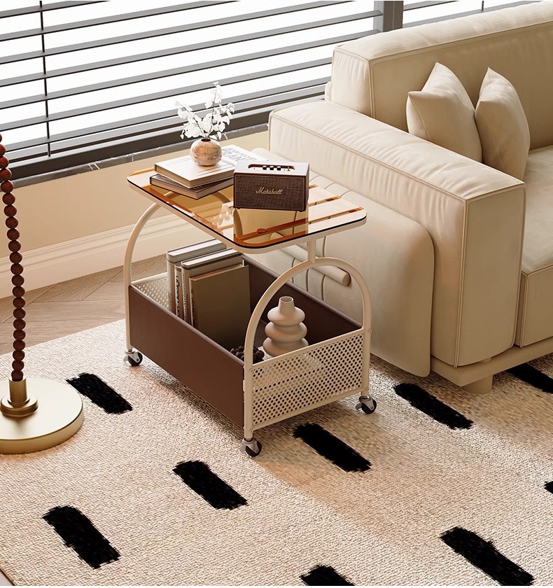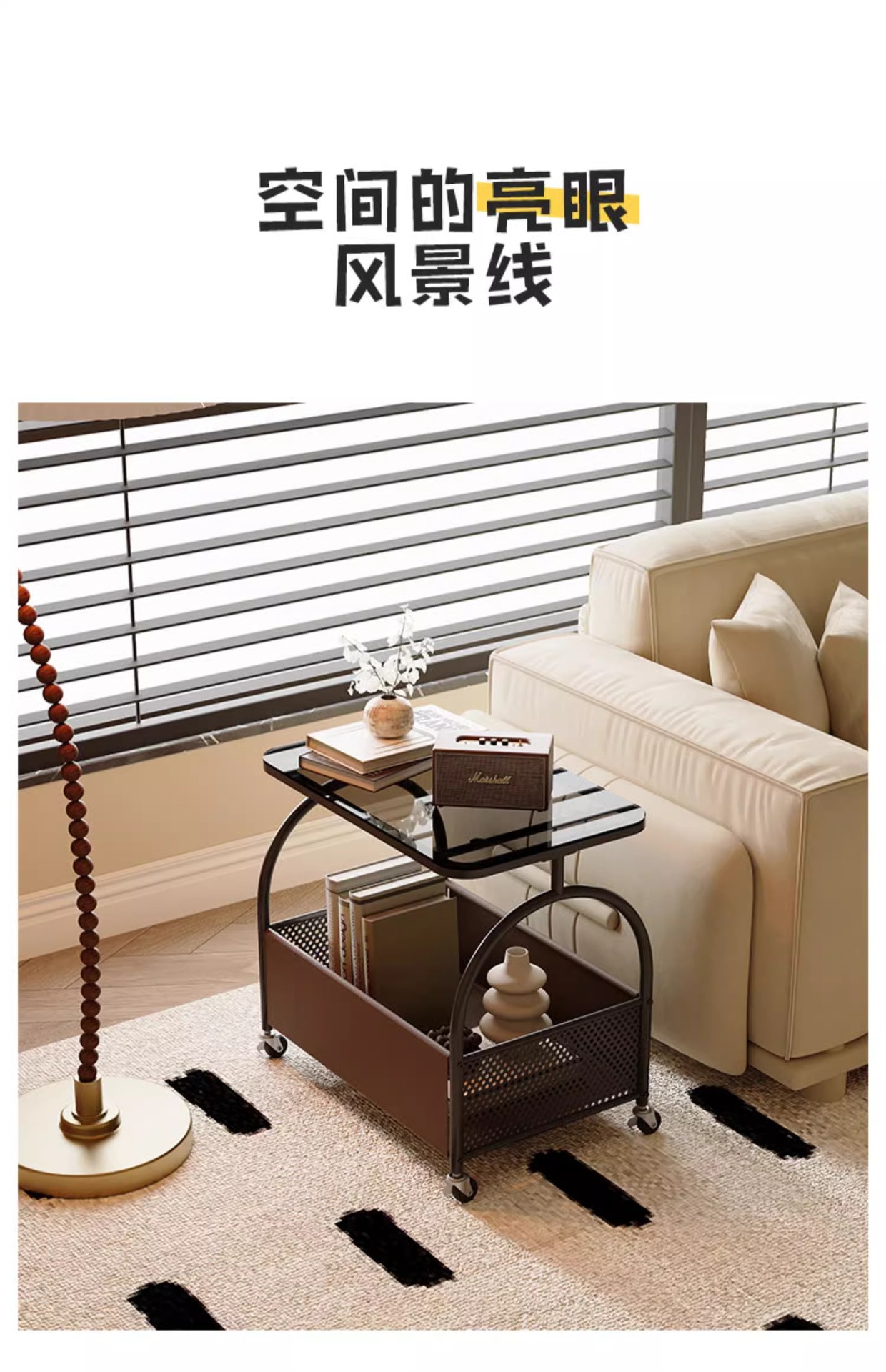 침실 측면 강화 유리 소파 골동품 강화 커피 테이블 침대 사이드 푸시를위한 중간 고대 커피 테이블스토어 가기