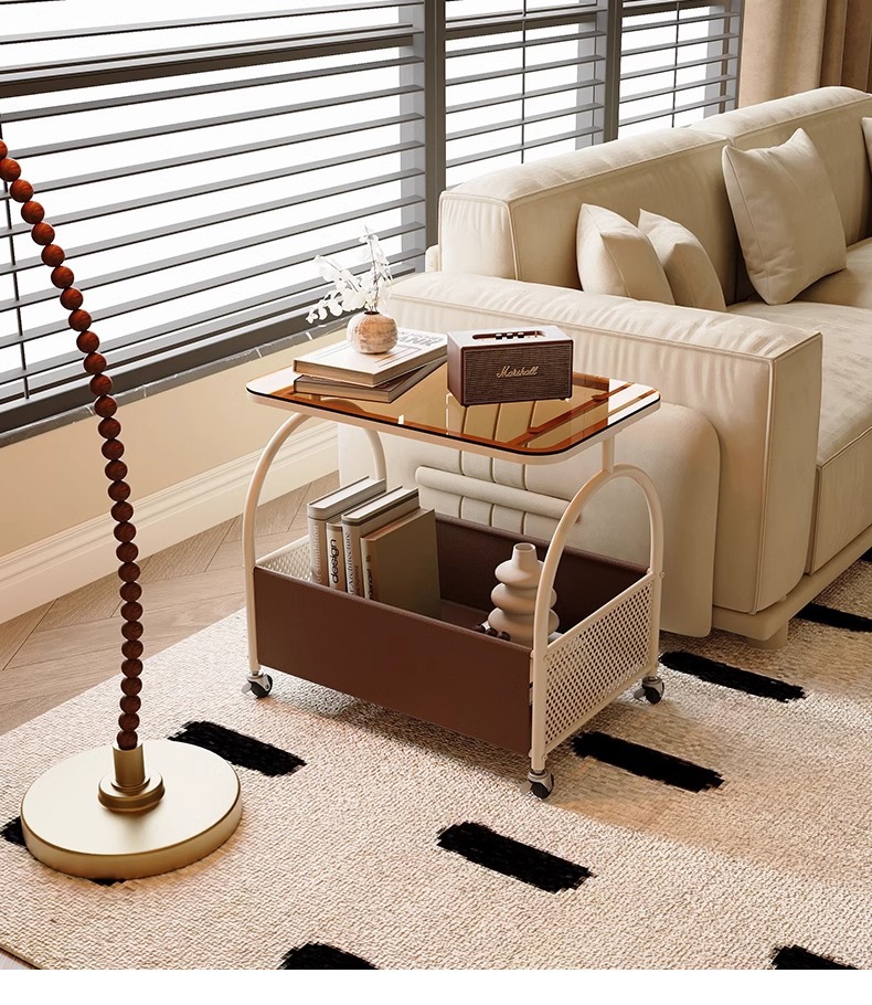 침실 측면 강화 유리 소파 골동품 강화 커피 테이블 침대 사이드 푸시를위한 중간 고대 커피 테이블