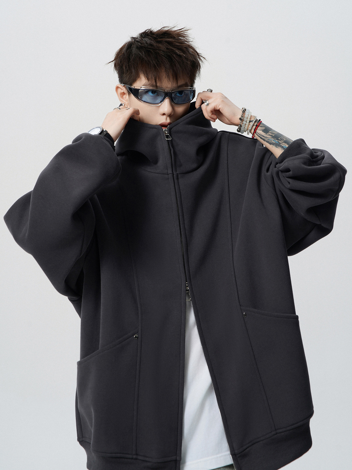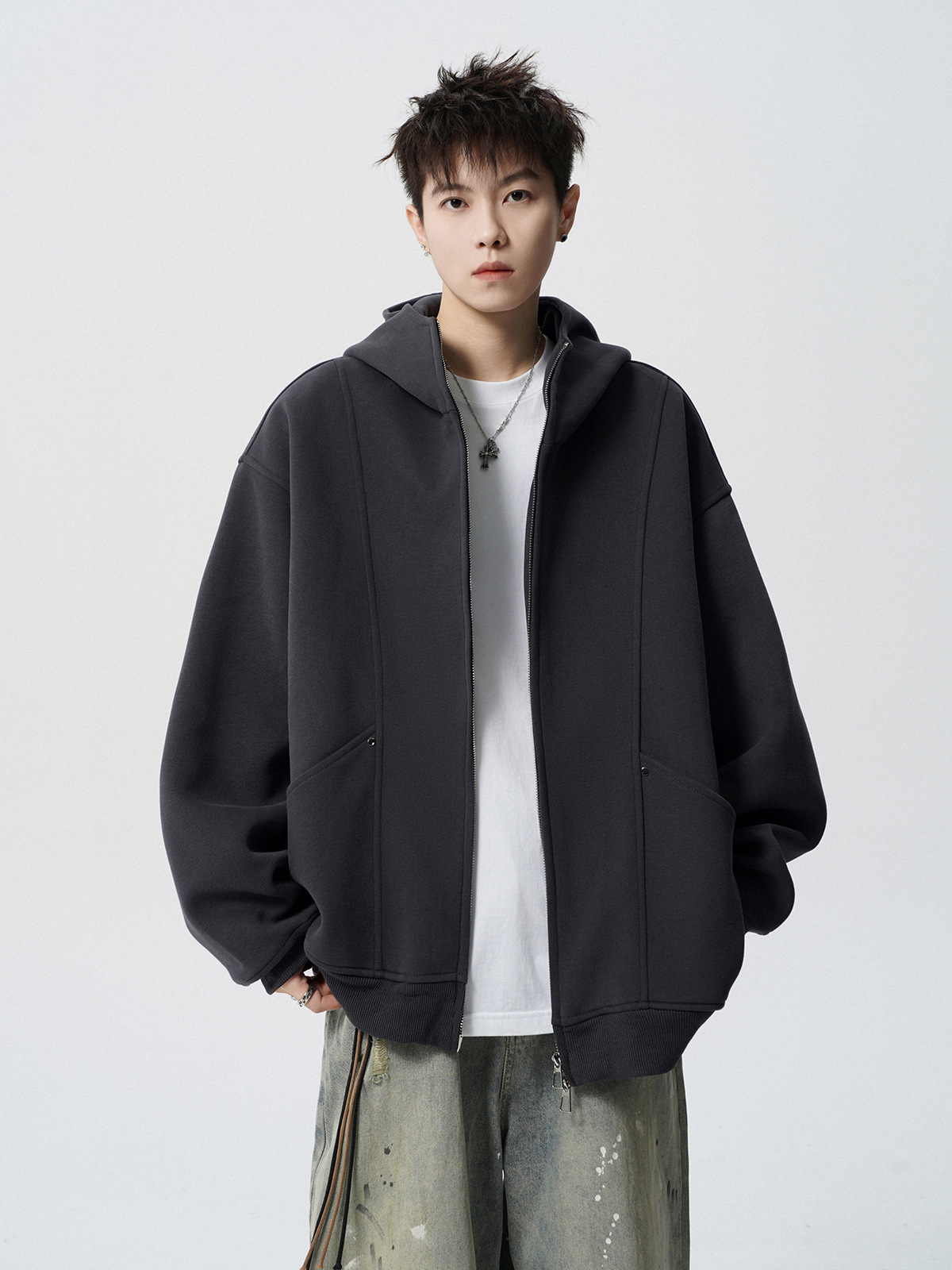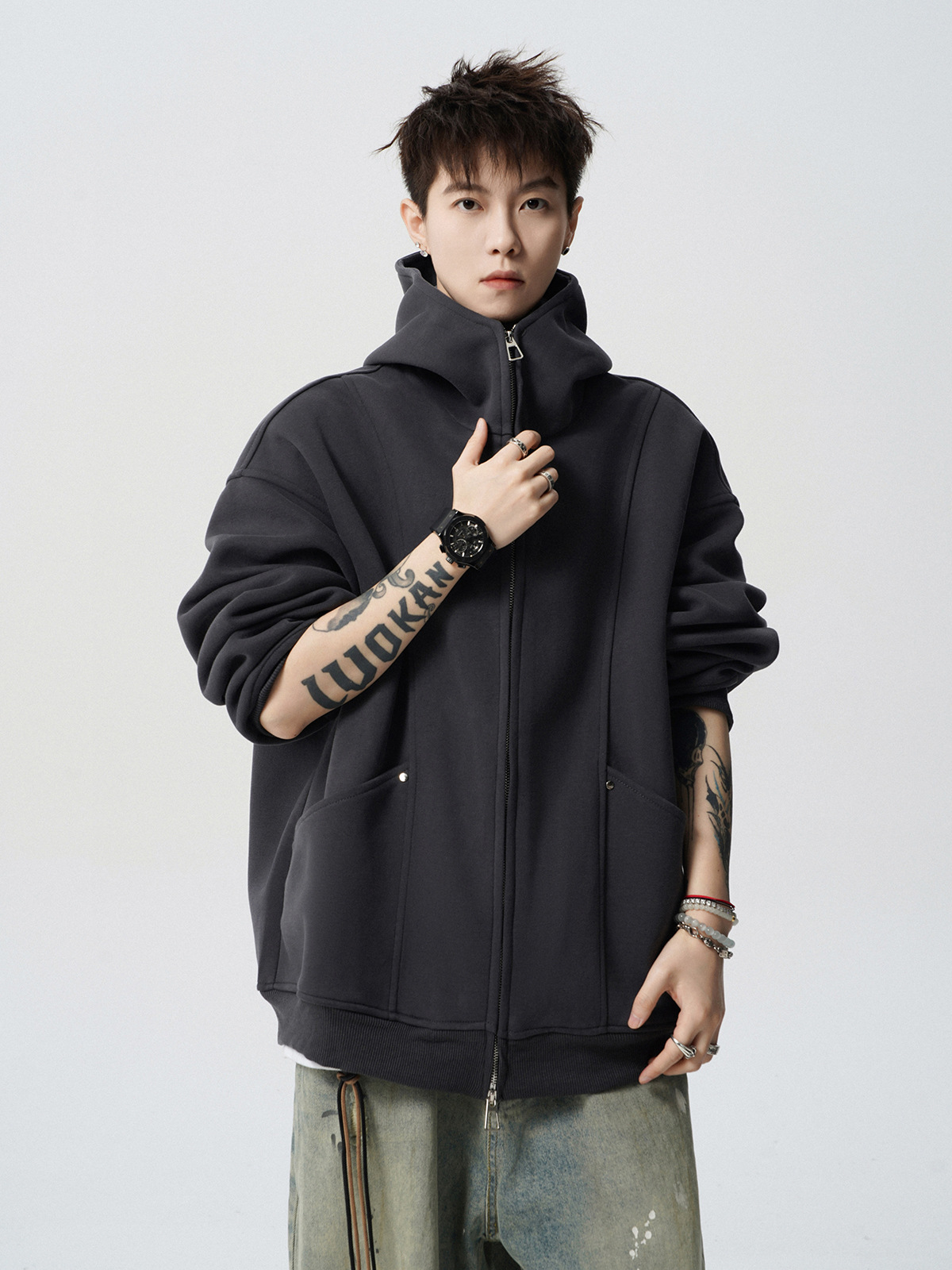 헤비 다크 그레이 후드 자켓 남자 겨울 미국 스타일 Laid-back 두꺼운 커플 재킷 트렌디 한 브랜드 디자인 센스 스웨터 카디건스토어 가기