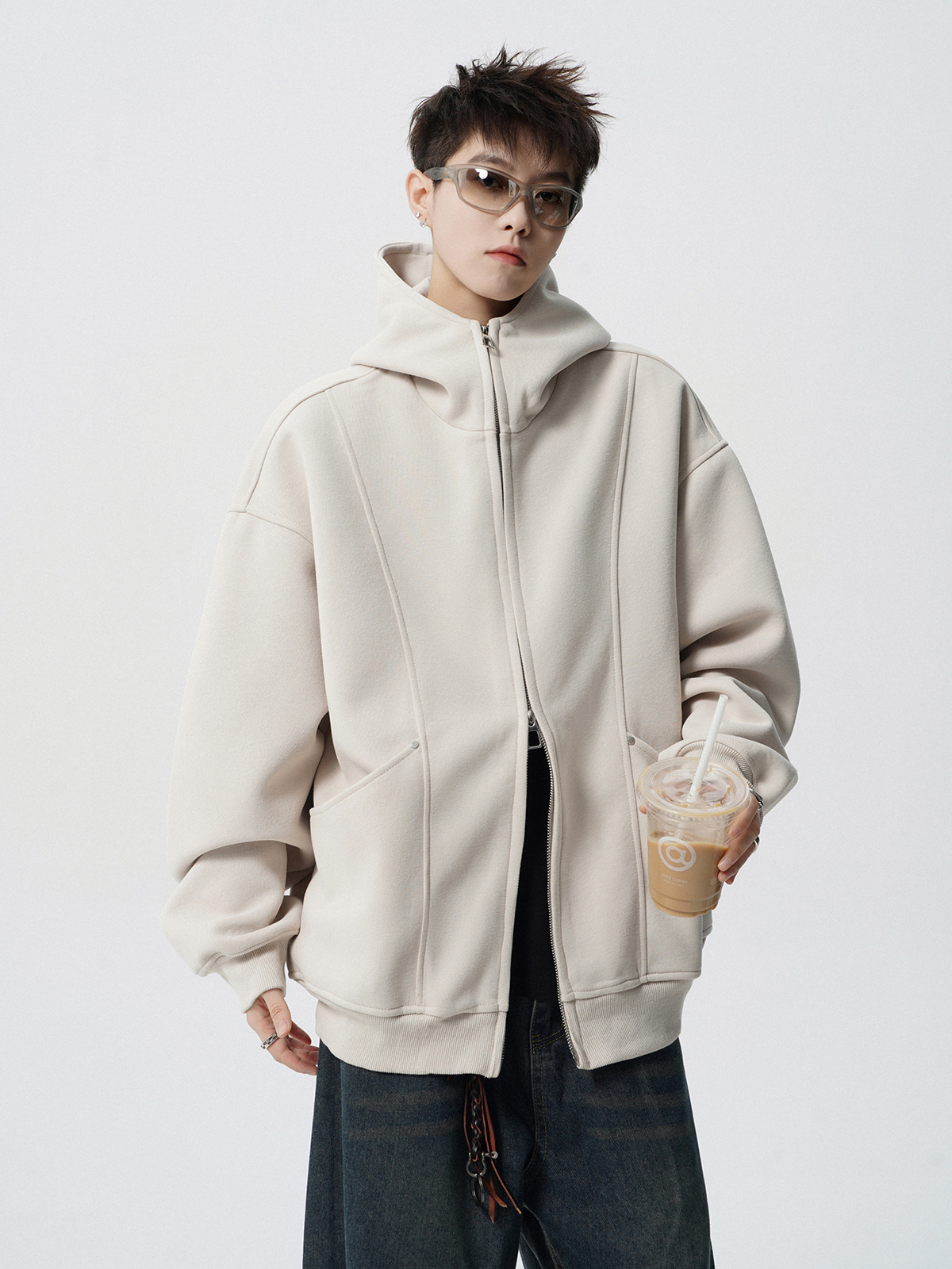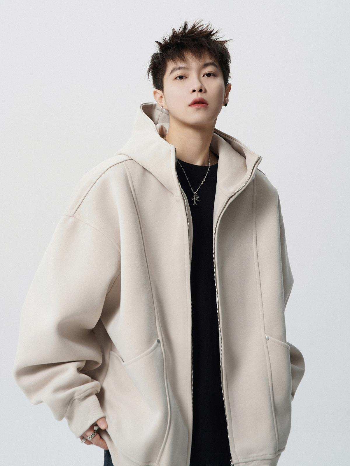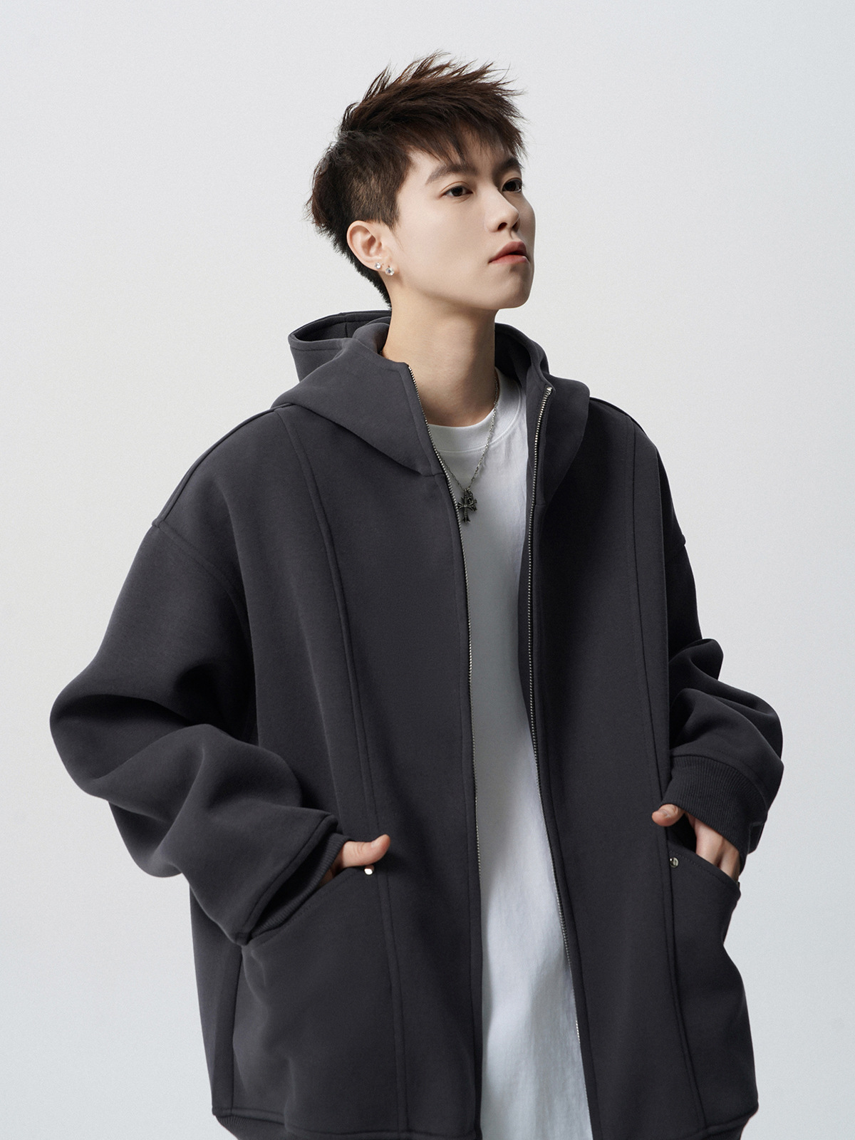 헤비 다크 그레이 후드 자켓 남자 겨울 미국 스타일 Laid-back 두꺼운 커플 재킷 트렌디 한 브랜드 디자인 센스 스웨터 카디건스토어 가기