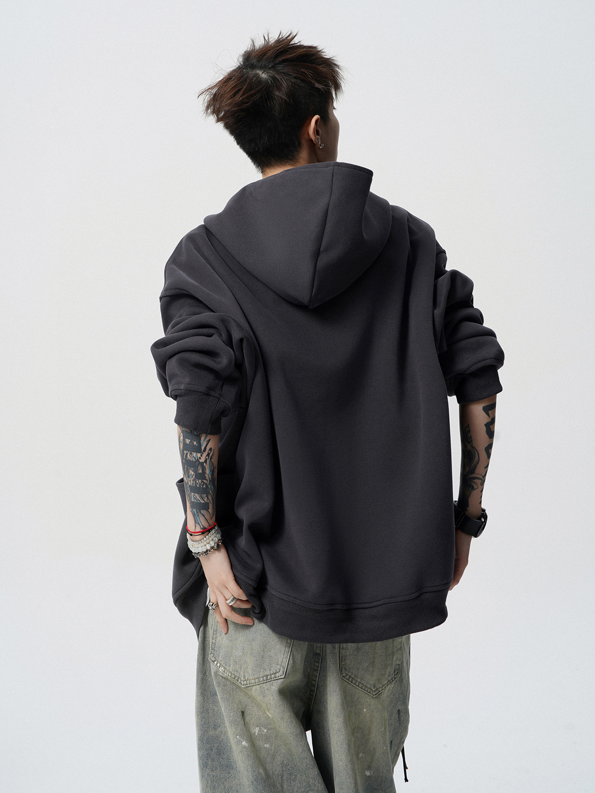 헤비 다크 그레이 후드 자켓 남자 겨울 미국 스타일 Laid-back 두꺼운 커플 재킷 트렌디 한 브랜드 디자인 센스 스웨터 카디건