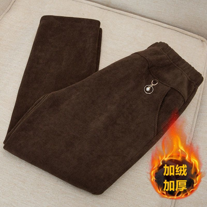 유럽면 벨벳 복합 북극 벨벳 기모 두꺼운 직선 다리 바지 여성용 겨울 새 캐주얼 어머니의 플러스 사이즈 땀 바지스토어 가기