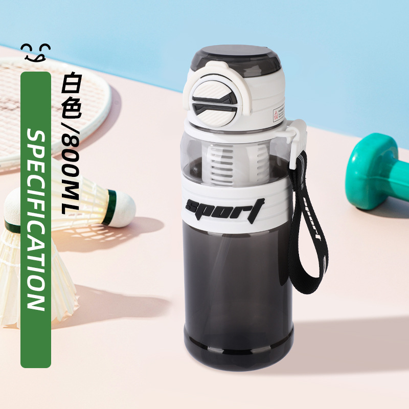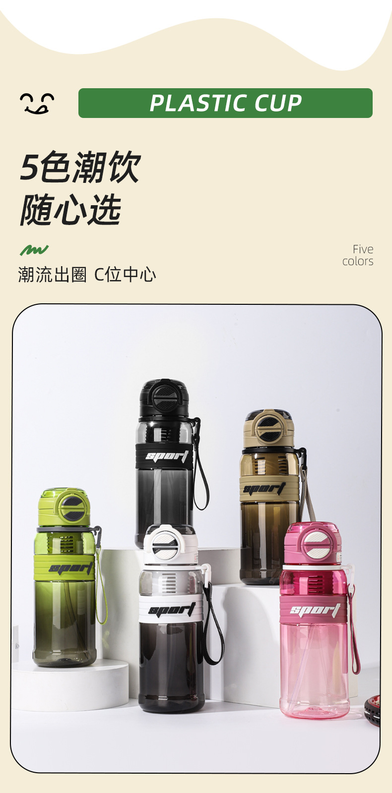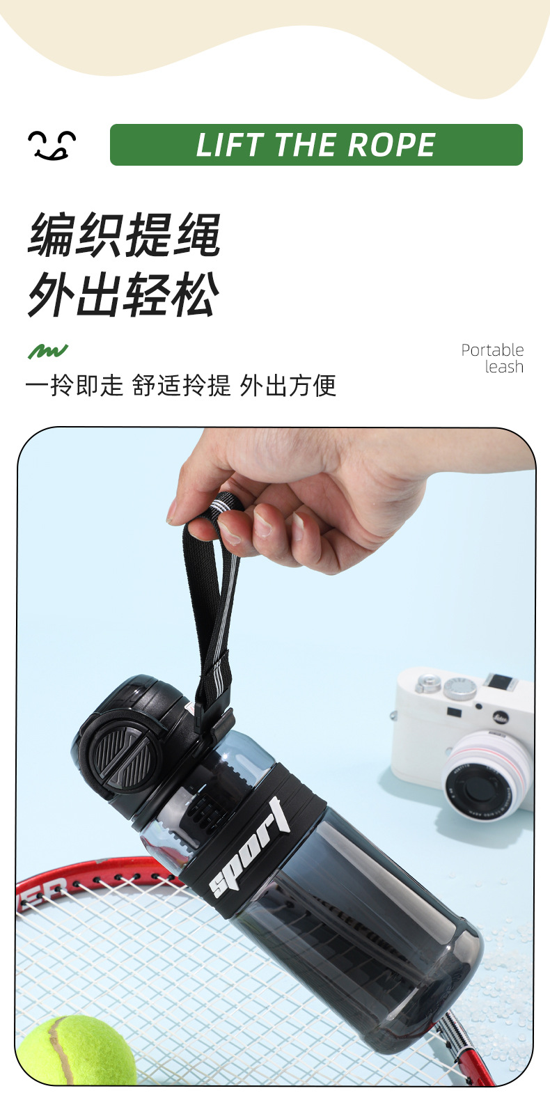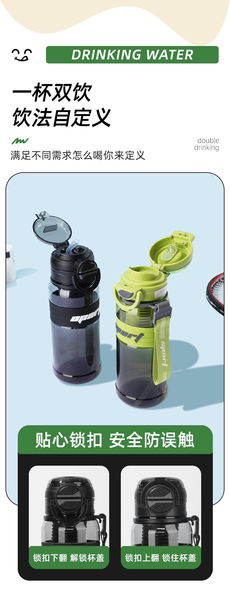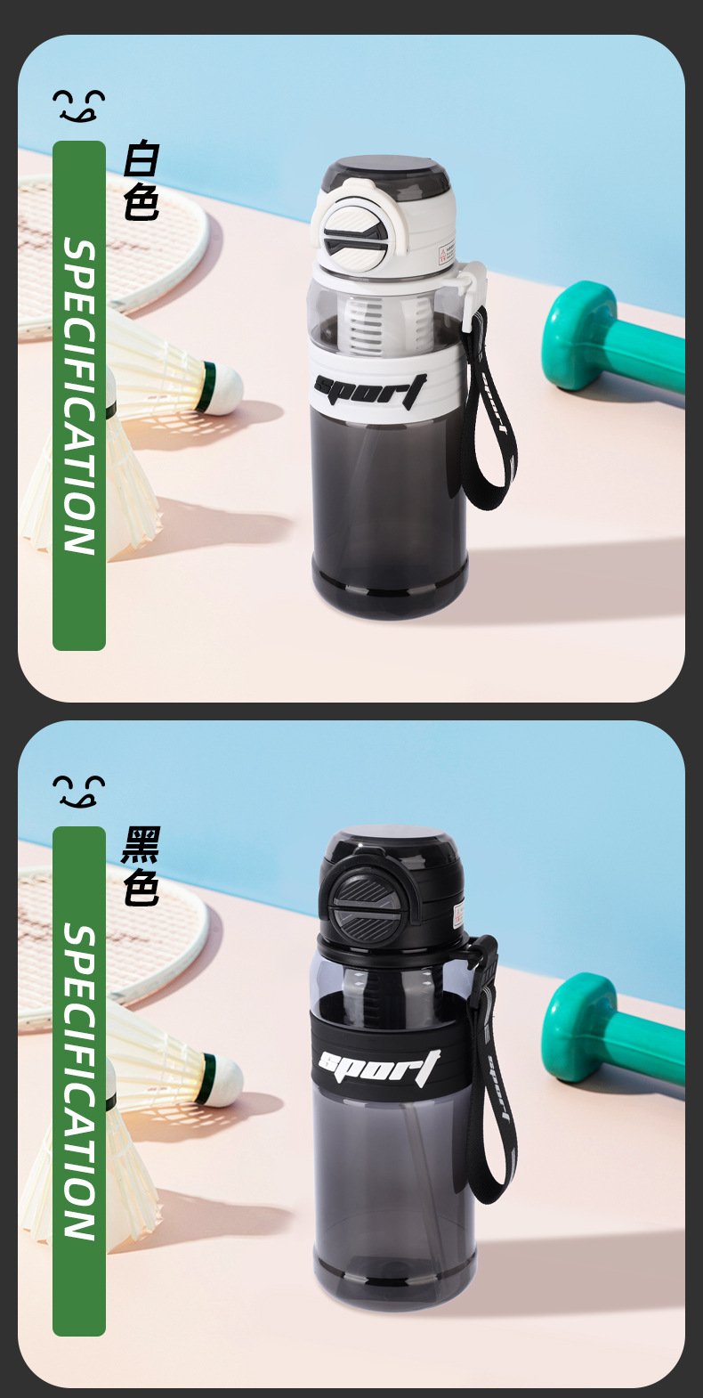 새로운 더블 음료 스포츠 플라스틱 컵 대용량 학생 휴대용 밀짚 컵 높은 색상 가치 차 분리 로프 컵