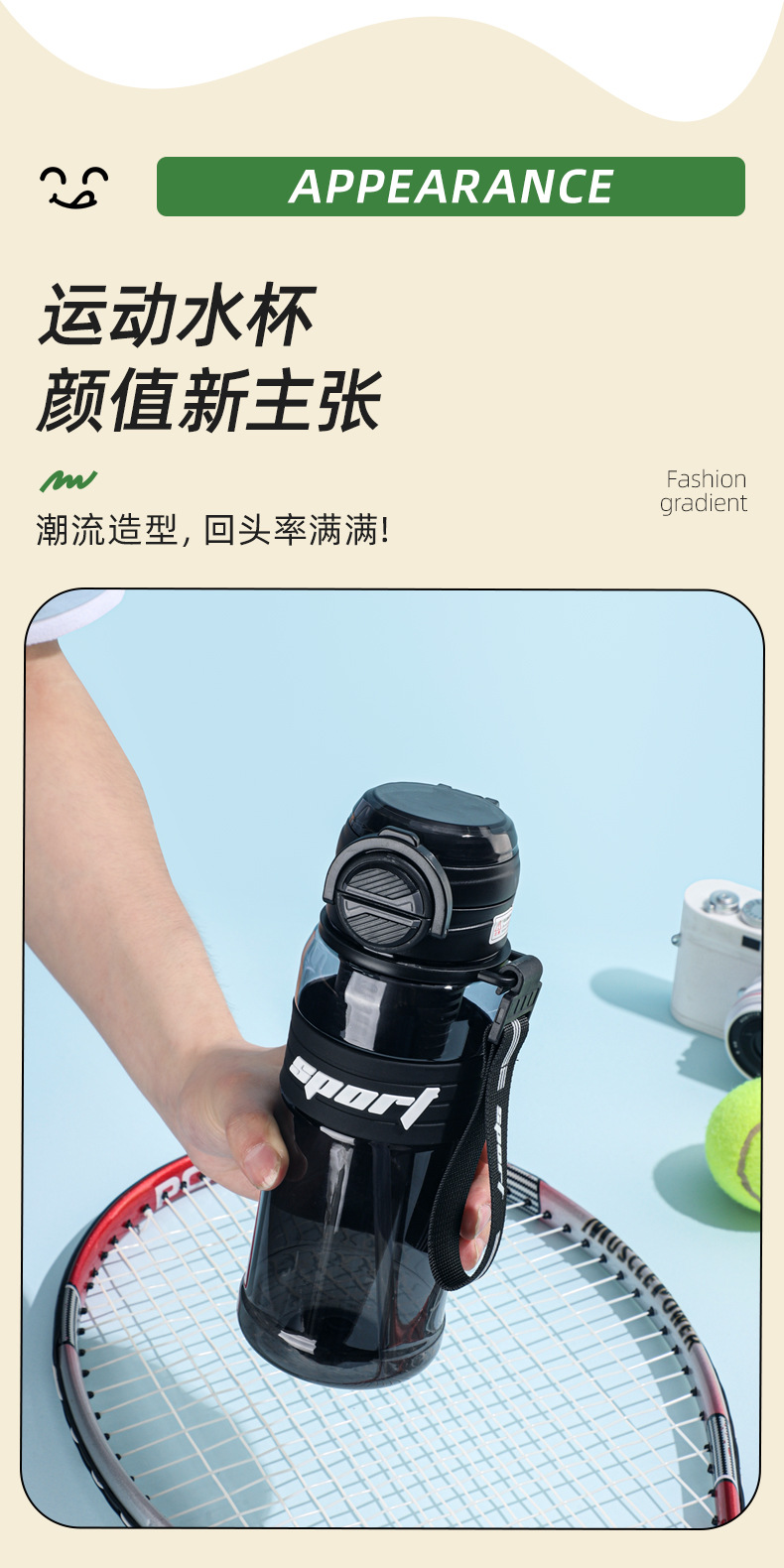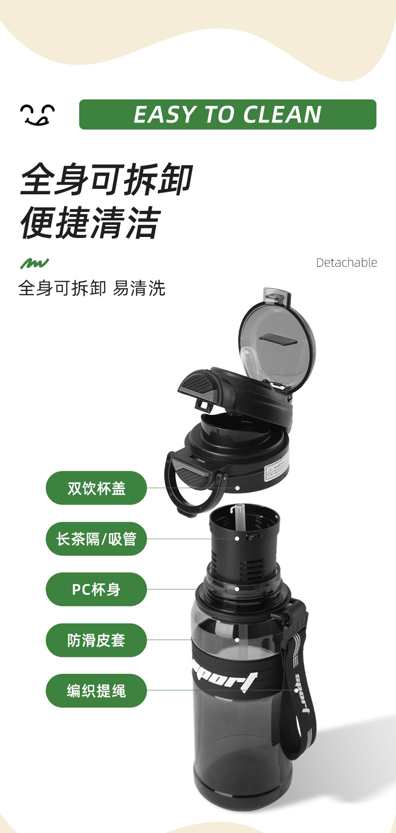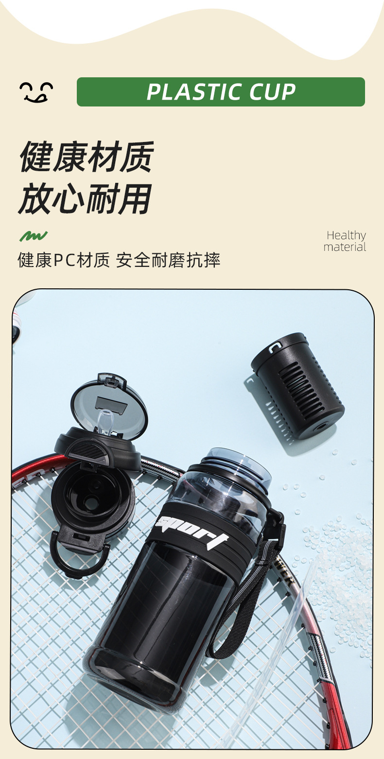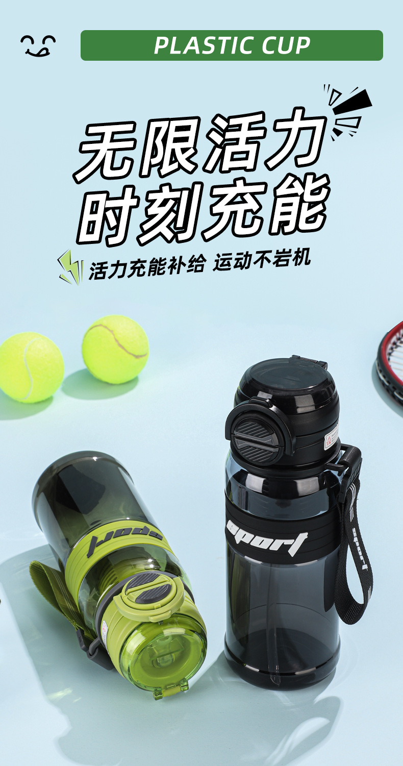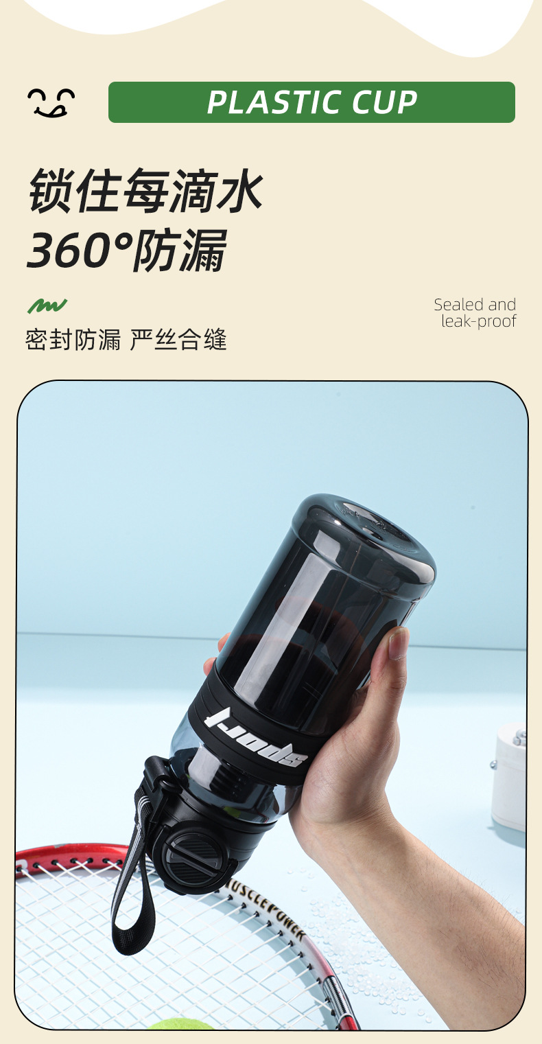 새로운 더블 음료 스포츠 플라스틱 컵 대용량 학생 휴대용 밀짚 컵 높은 색상 가치 차 분리 로프 컵