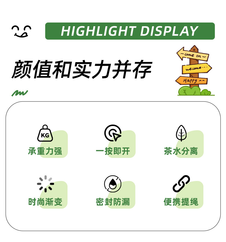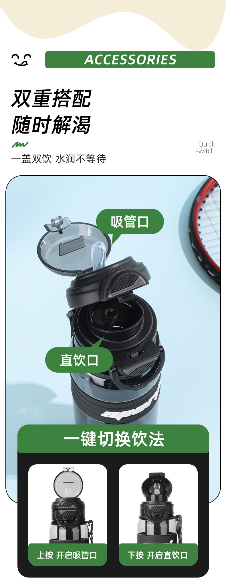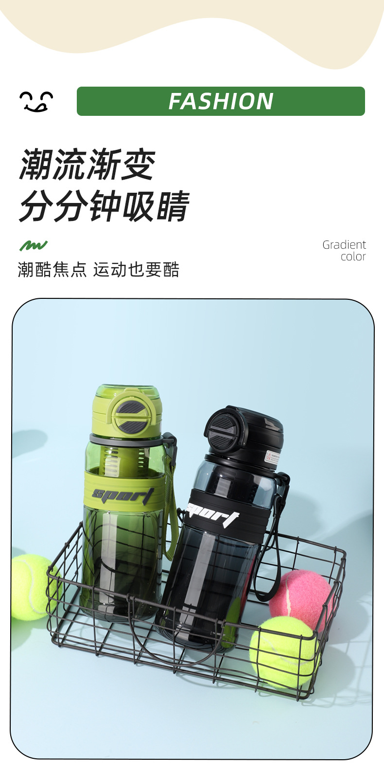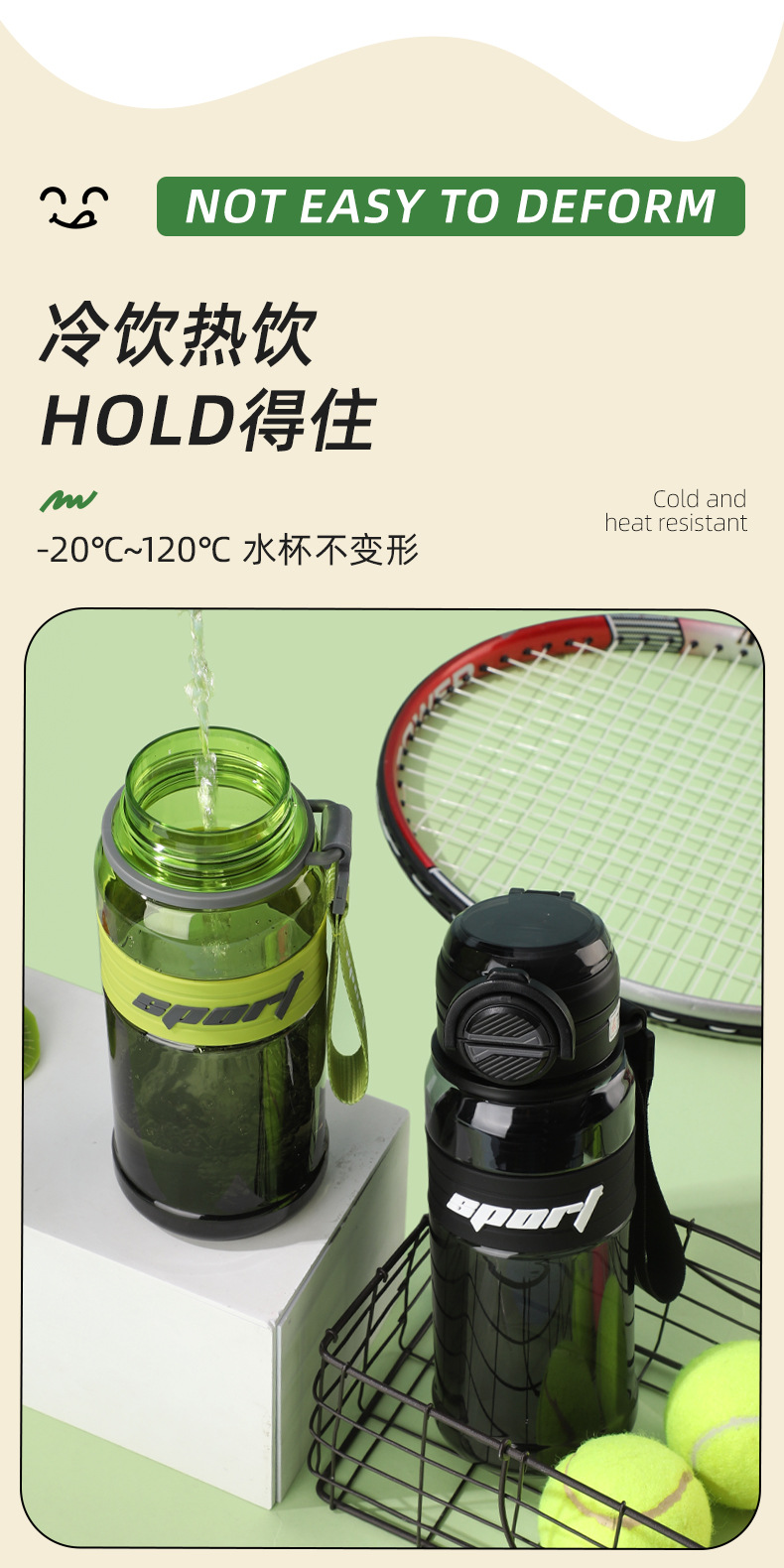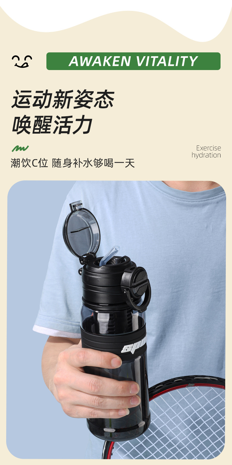 새로운 더블 음료 스포츠 플라스틱 컵 대용량 학생 휴대용 밀짚 컵 높은 색상 가치 차 분리 로프 컵