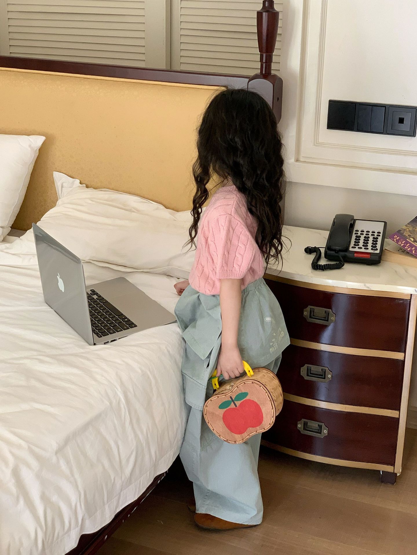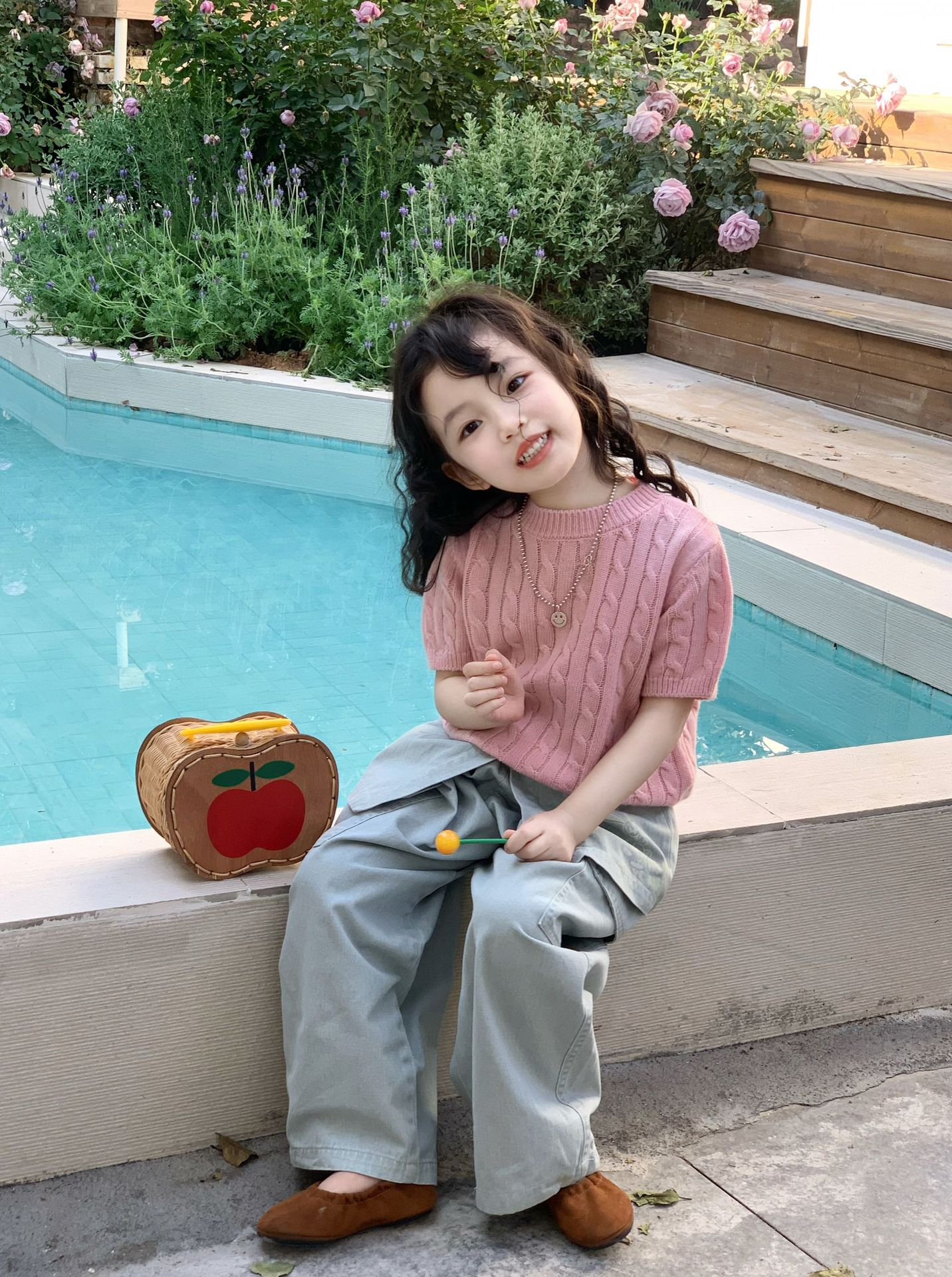 한국식 아동복 틈새 트위스트 스웨터 서양식 소녀 봄과 여름 새로운 반팔 티셔츠 어린이 최고 유행스토어 가기