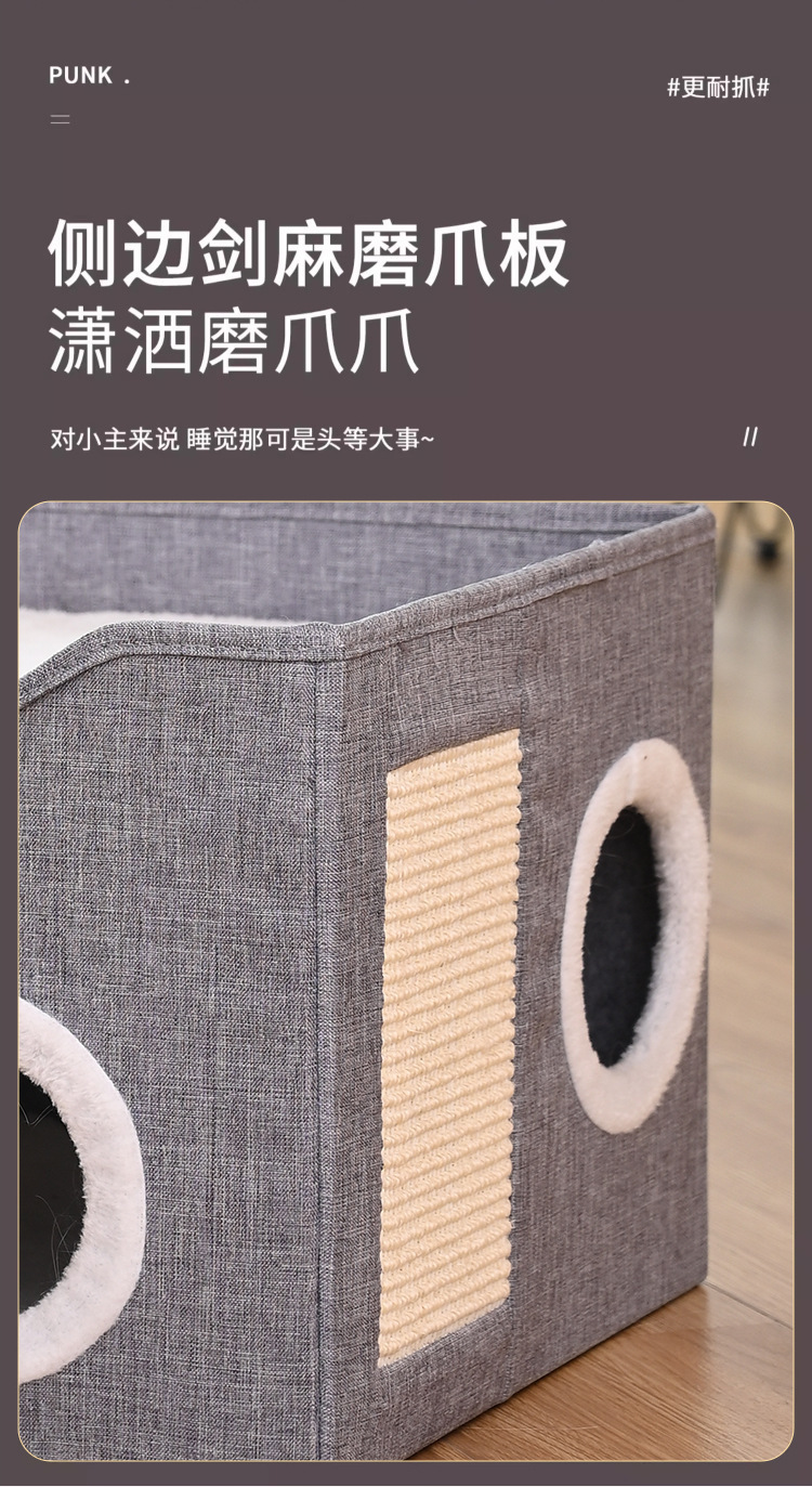 국경을 넘는 인기 상품, 사자수염 발톱갈이 이중층 고양이 집, 겨울철 따뜻한 밀폐형 사계절 사용 가능 접이식 고양이 집 도매