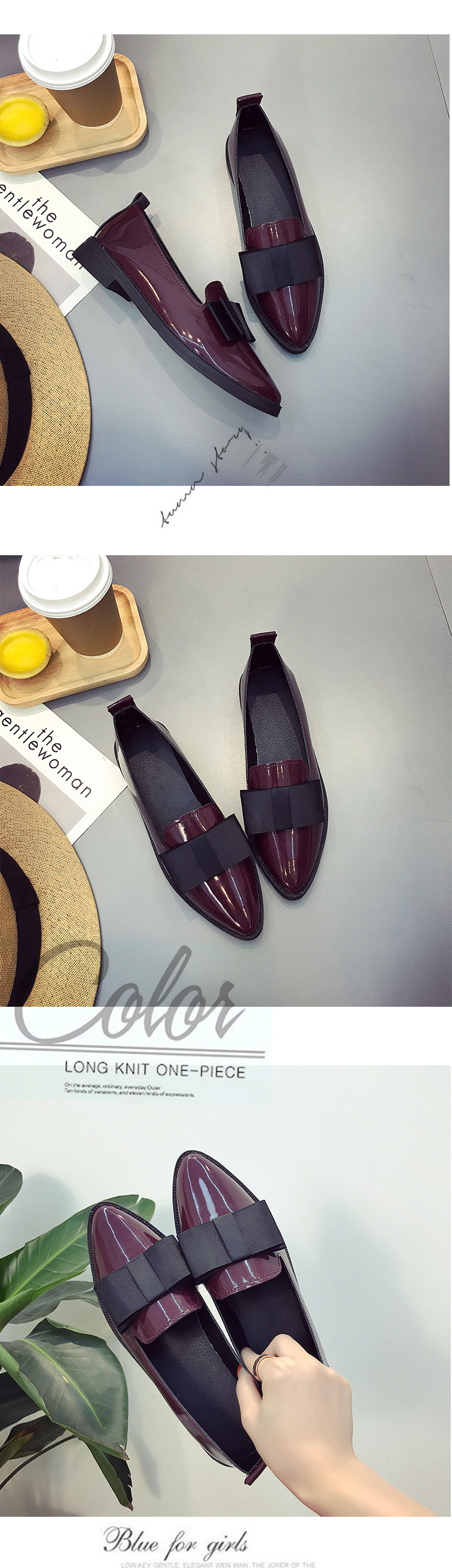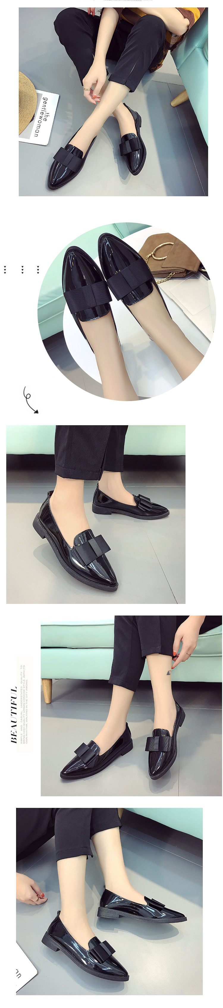 봄 한국 스타일 활 뾰족한 발가락 캐주얼 로우 탑 싱글 레이어 신발 여성 플랫 얕은 입 간단한 다리 통근 여성 가죽 신발스토어 가기