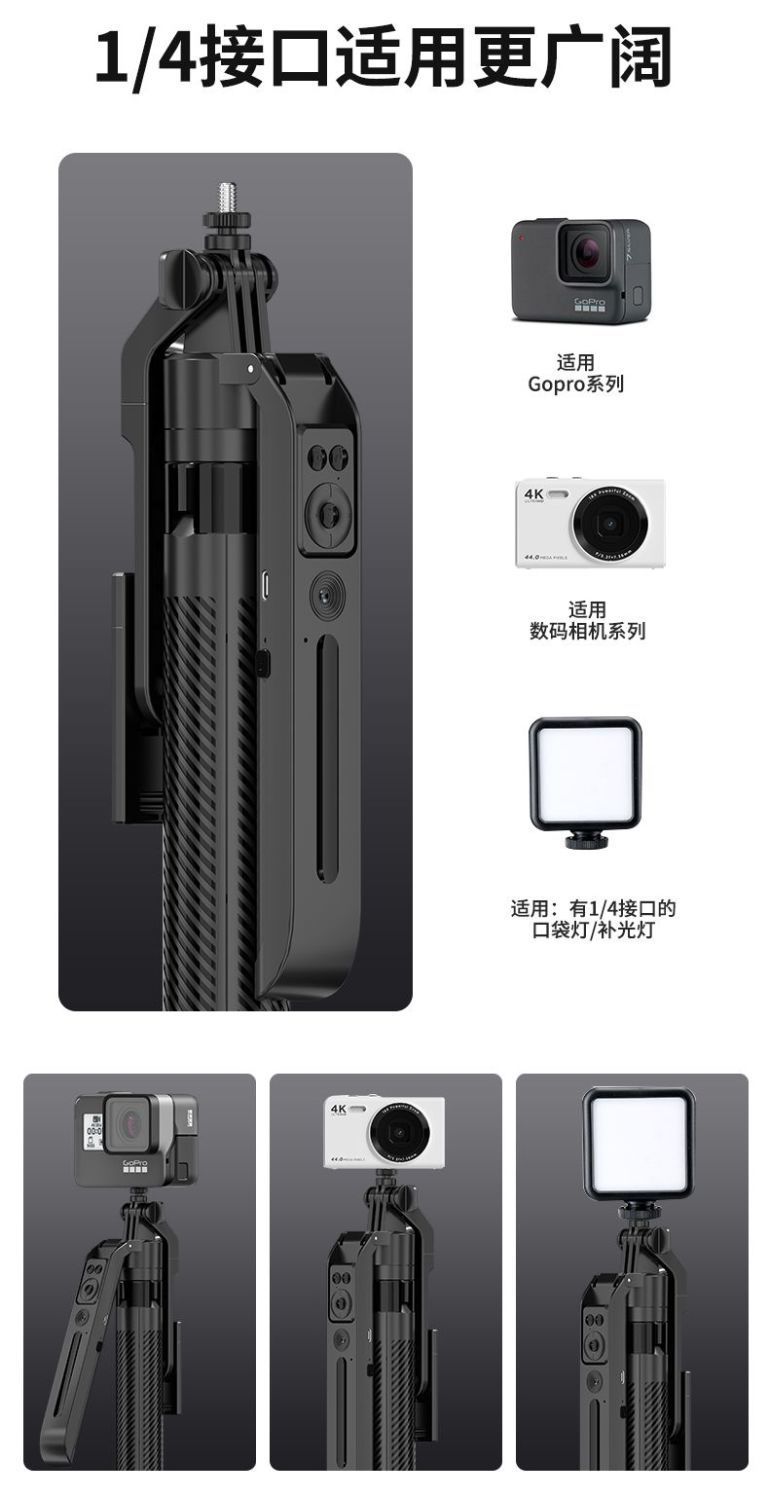 • 얼굴인식 스마트 팔로우샷 블랙 [ 1.9m 맞춤형 셀카봉 + 다기능 충전 블루투스 리모콘]