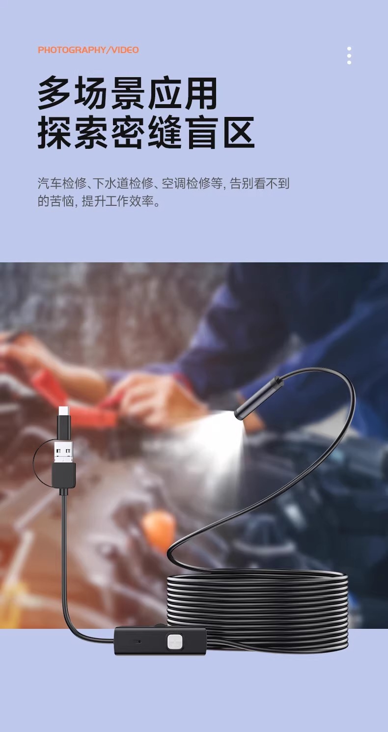 8mm双镜头内窥镜 工业管道修锁汽修检测刚性可弯曲手机高清内镜镜8mm双镜头内窥镜 工业管道修锁汽修检测刚性可弯曲手机高清内镜镜8mm双镜头内窥镜 工业管道修锁汽修检测刚性可弯曲手机高清内镜镜