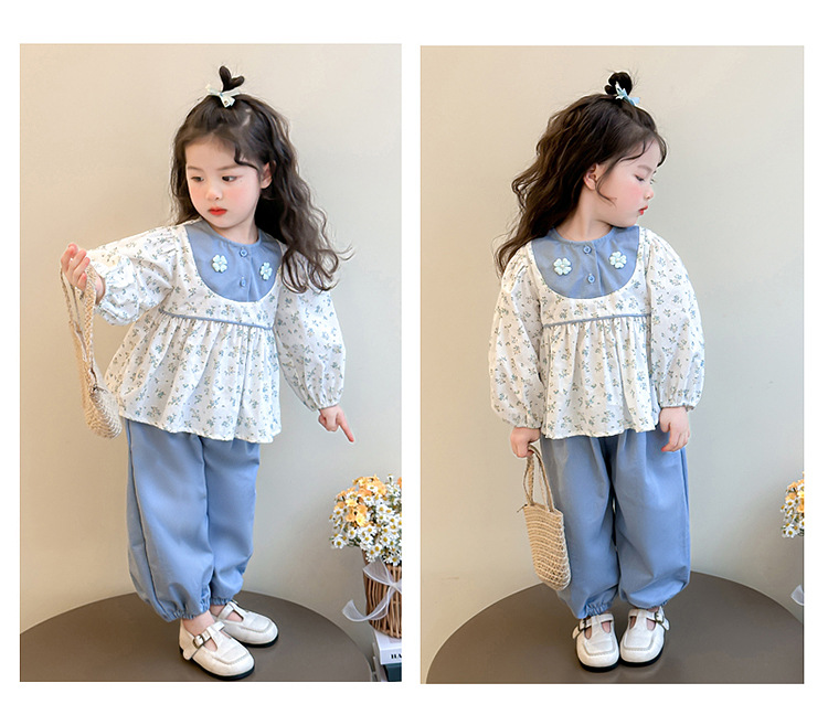 여자 세트 봄 2025 새로운 서양식 모리 꽃 어린이 한국 스타일 봄과 가을 스타일 소녀의 투피스 유행 세트