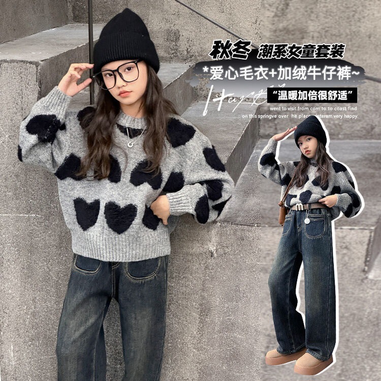 소녀의 봄 가을과 겨울 세련된 스웨터 소녀베이스 셔츠 큰 아이들의 두꺼운 니트 유행 탑스토어 가기