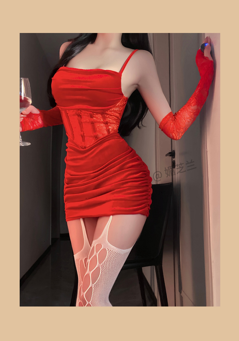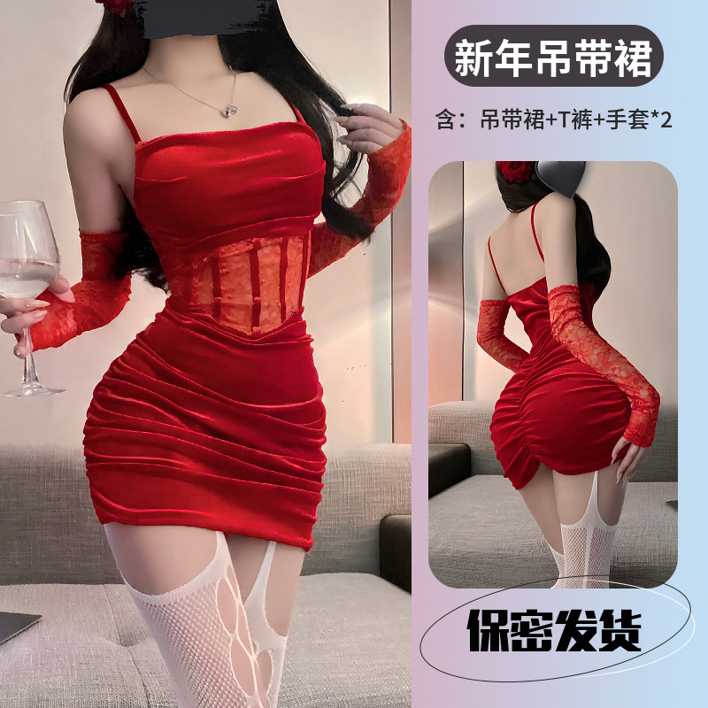 새해 붉은 섹시한 원피스 엉덩이 잠자는 뜨거운 소녀 슬림 핏 레이스 바느질 주름 빨간 벨벳 서스펜스 엉덩이 잠자는 원피스스토어 가기