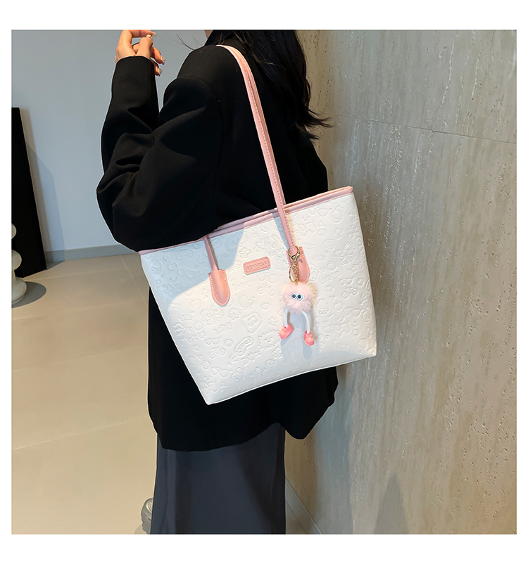 귀여운 들여 쓰기 대용량 클래스 통근 토트 백 2025 봄 새로운 패션 올 매치 대비 컬러 숄더백