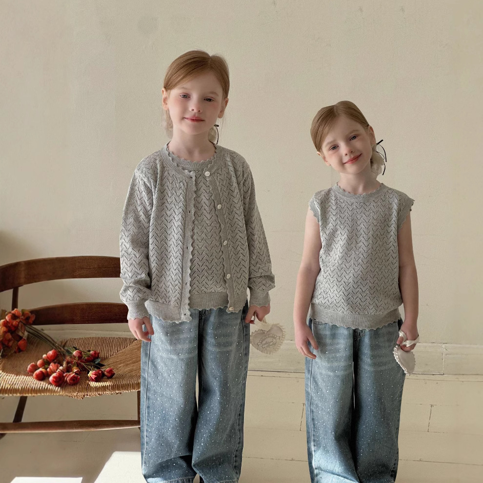 여아용 가디건 세트 2025 봄 가을 신상 한국 스타일 아동 니트 재킷 아기 조끼 투피스 상의