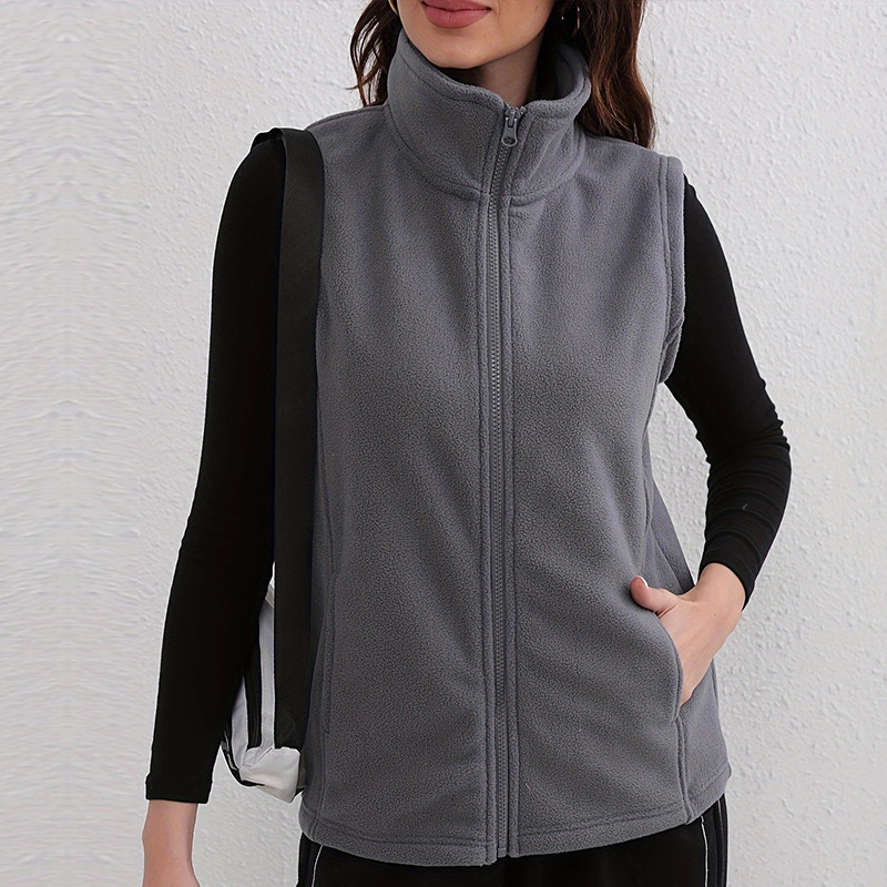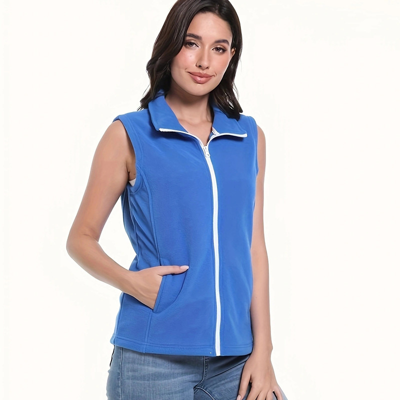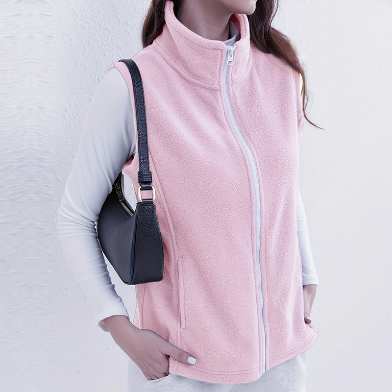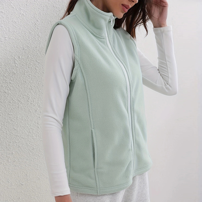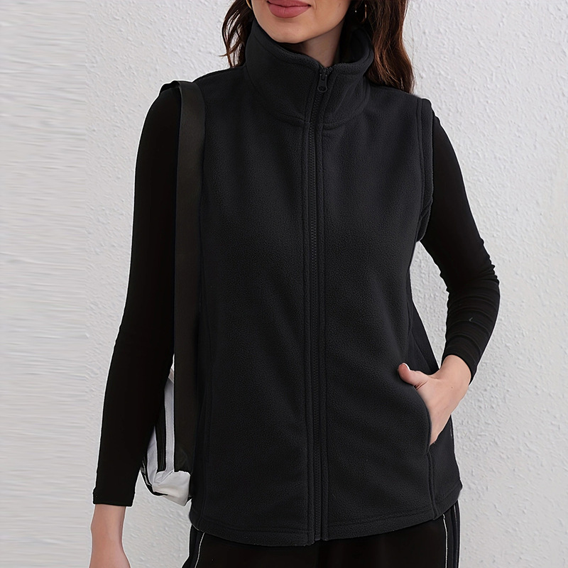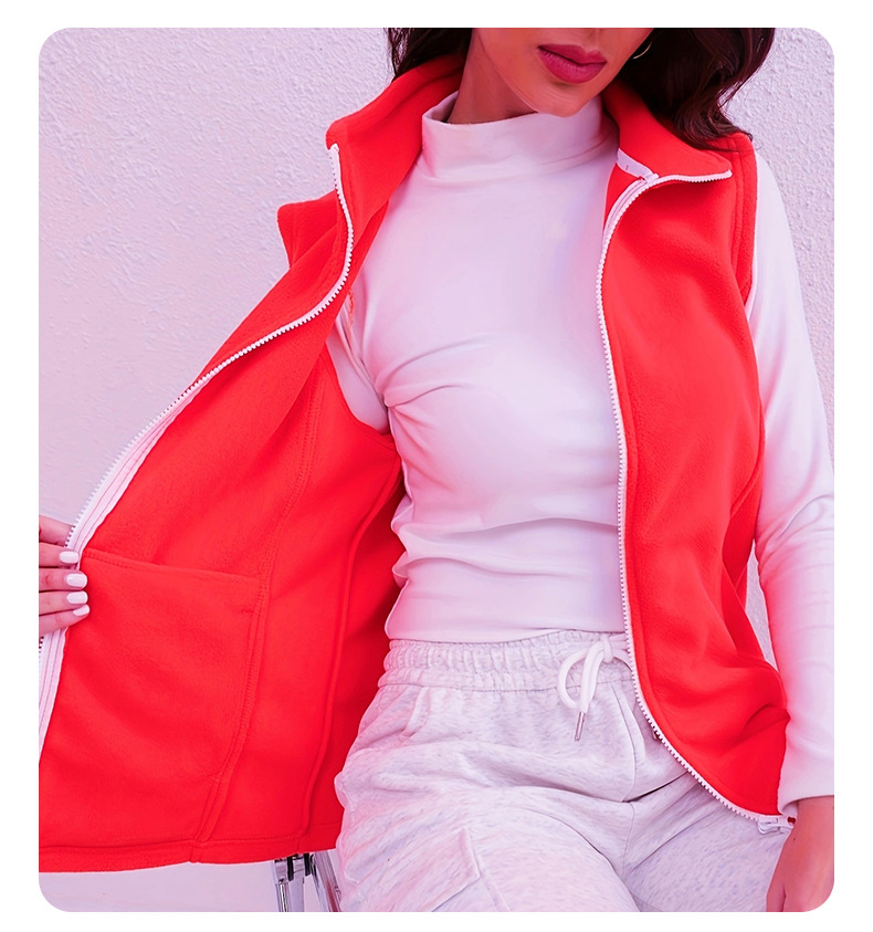 유럽과 미국 스타일의 두꺼운 보온 폴라 플리스 조끼 여성용 양면 플리스 스탠드 칼라 민소매 가을 겨울 조끼스토어 가기