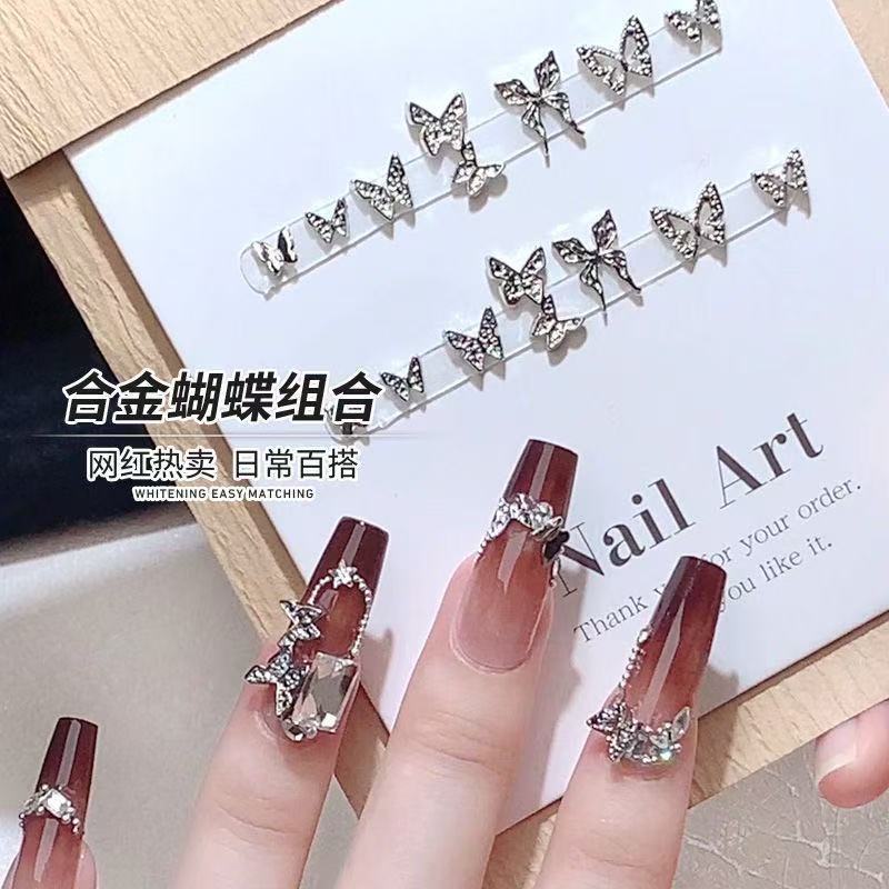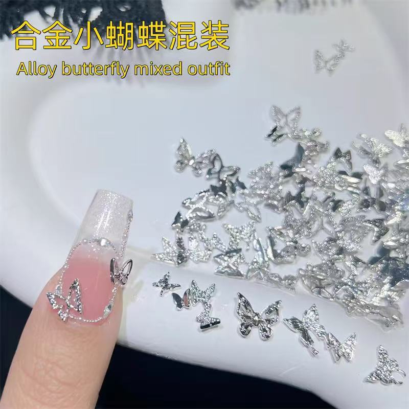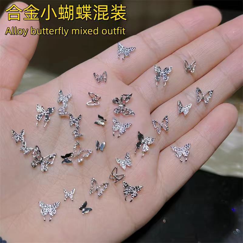 인터넷 유명 실버 합금 나비 네일 아트 쥬얼리 라이트 고급 고급 금속 3 차원 네일 장식 작은 액세서리 도매스토어 가기
