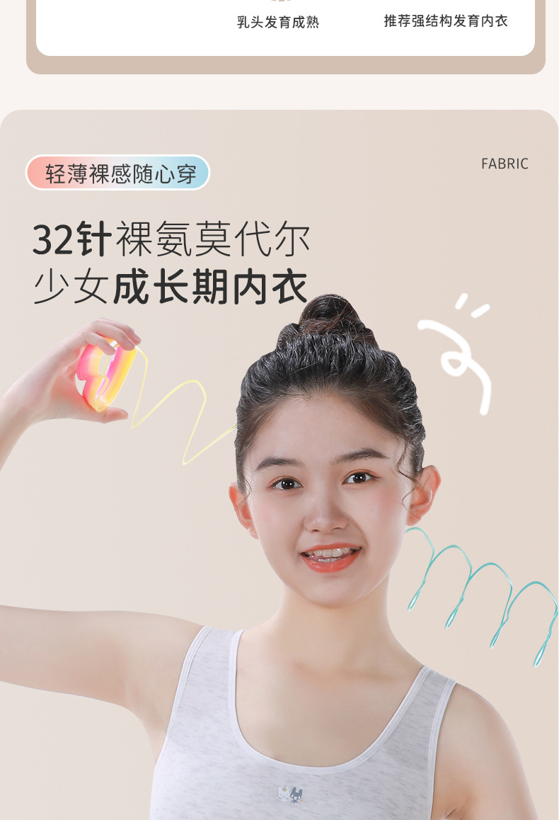 소녀를위한 소녀 개발 단계 원브라 안티 범프 조끼 학생들을위한 모달 통기성 스포츠 속옷스토어 가기