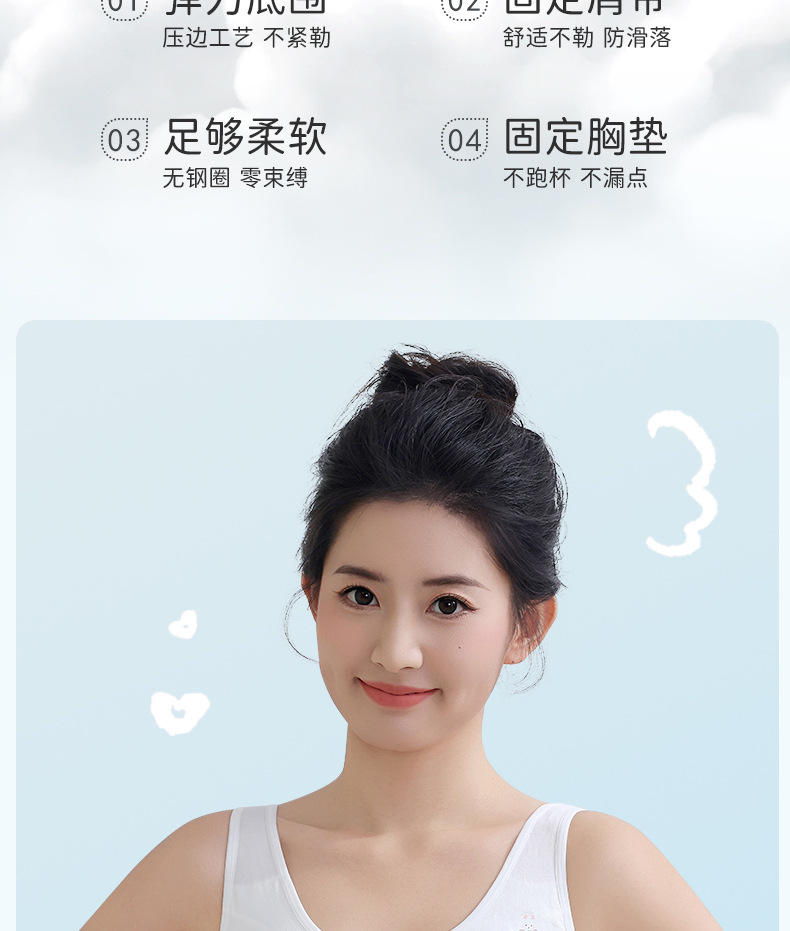모달 원활한 소녀 속옷 3 단계 개발 기간 중학교 및 고등학생 고정 컵 편안한 조끼 여성