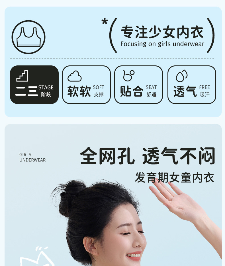 모달 원활한 소녀 속옷 3 단계 개발 기간 중학교 및 고등학생 고정 컵 편안한 조끼 여성스토어 가기