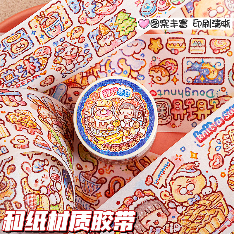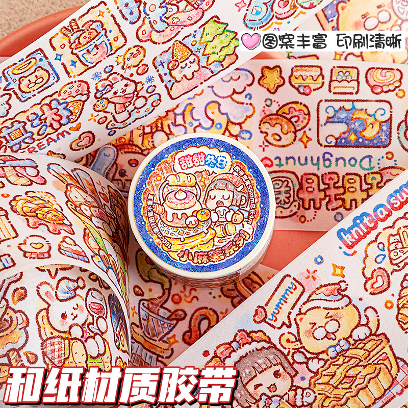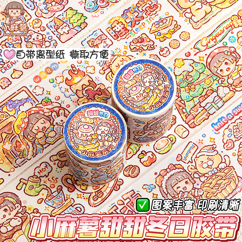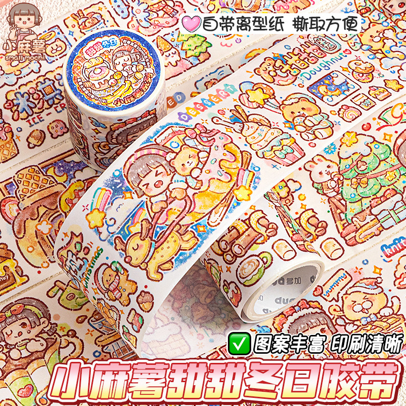 작은 대마 감자 손 계정 스티커 테이프 달콤한 겨울 크레용 바람 특수 오일 및 종이 테이프 전체 롤 손 계정 테이프 세트스토어 가기