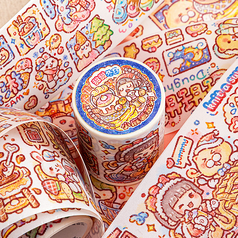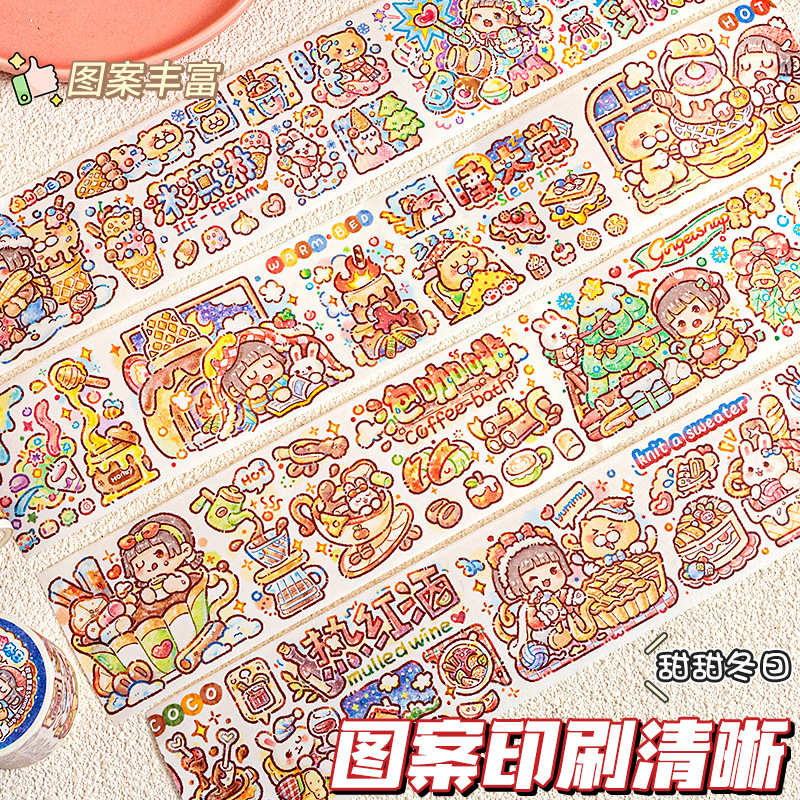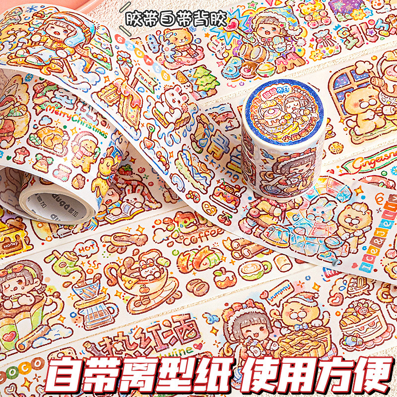 작은 대마 감자 손 계정 스티커 테이프 달콤한 겨울 크레용 바람 특수 오일 및 종이 테이프 전체 롤 손 계정 테이프 세트
