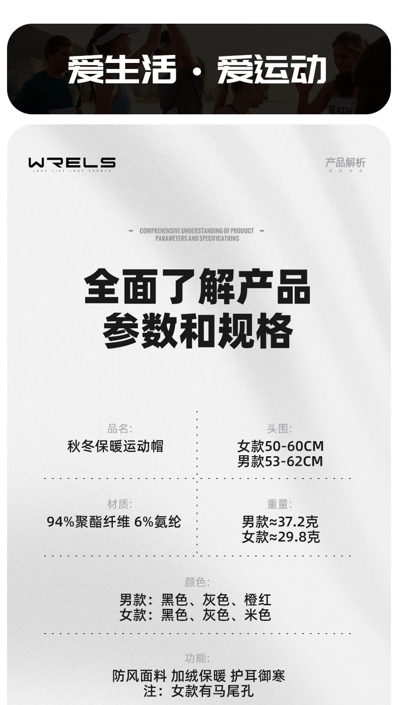 WRELS 가을과 겨울 따뜻한 스포츠 모자 귀 보호 방풍 남성 및 여성 달리기 양털 빠른 건조 콜드 캡