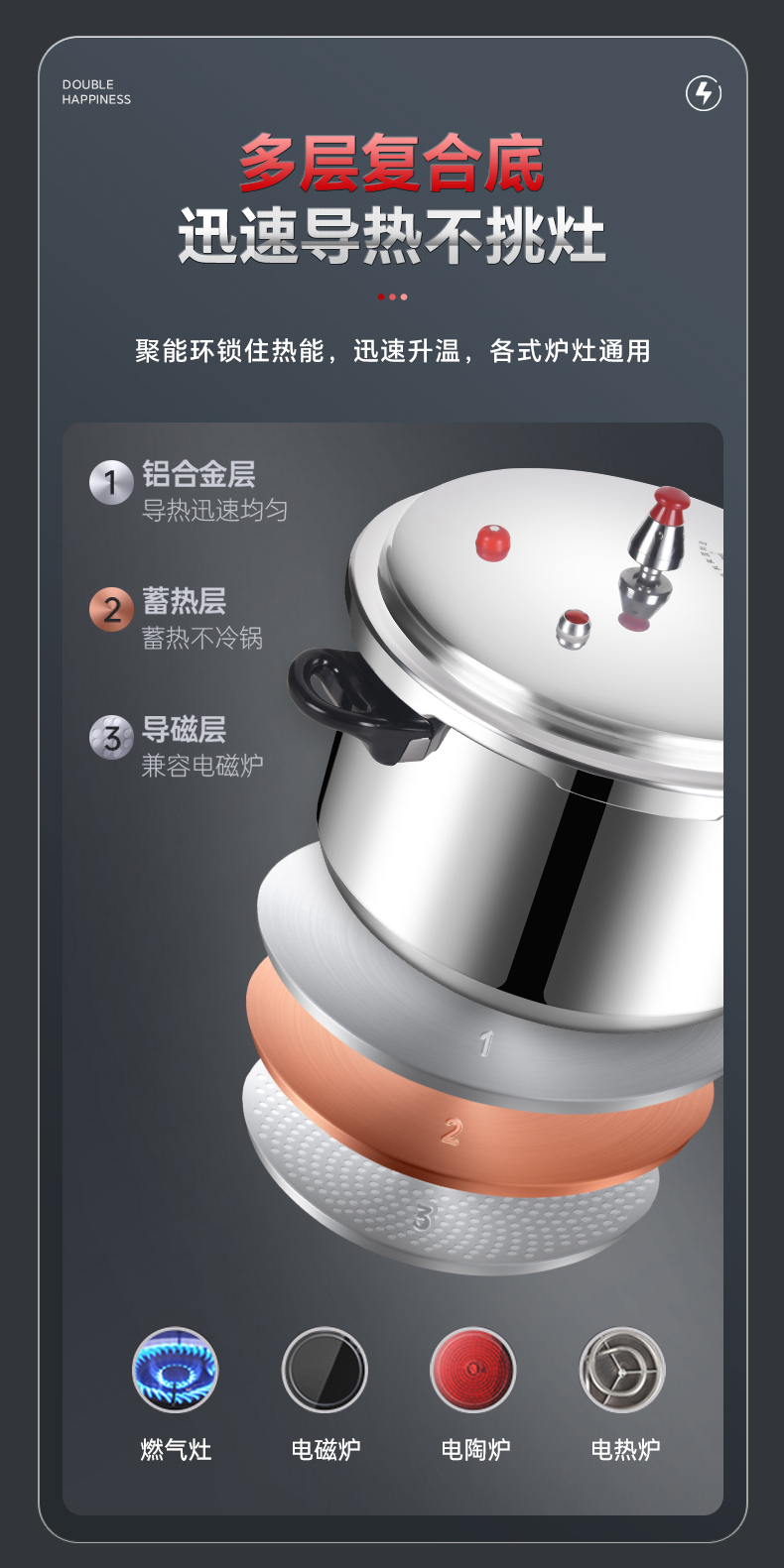 상업용 대용량 두 배 행복 유니버설 압력 밥솥 가정용 가스 압력 밥솥 두꺼운 플래그십 유도 밥솥 안전 폭발 방지스토어 가기