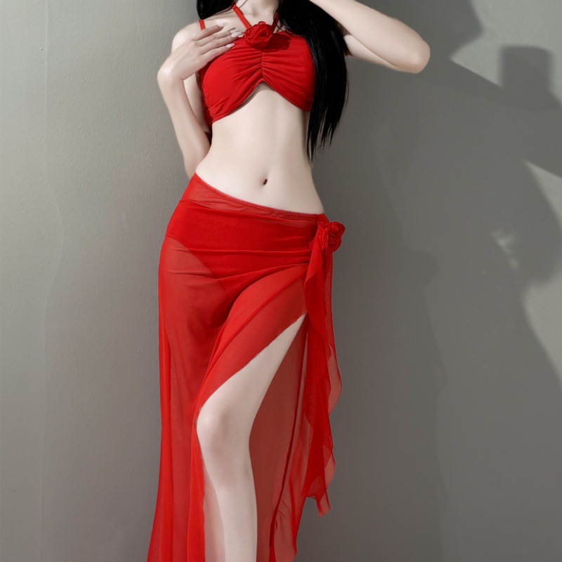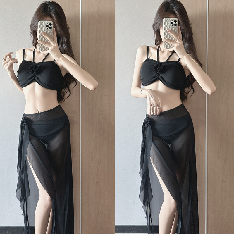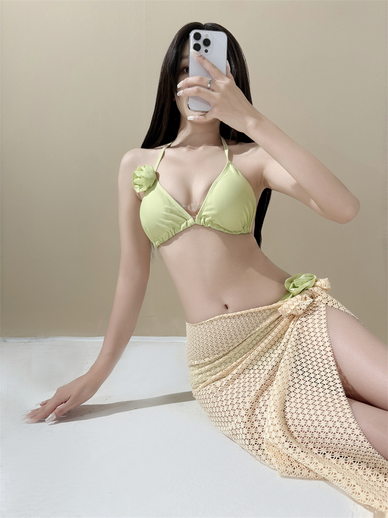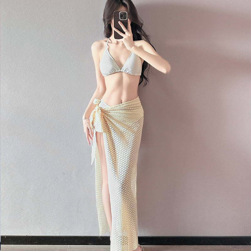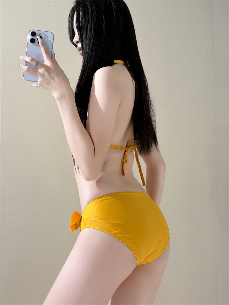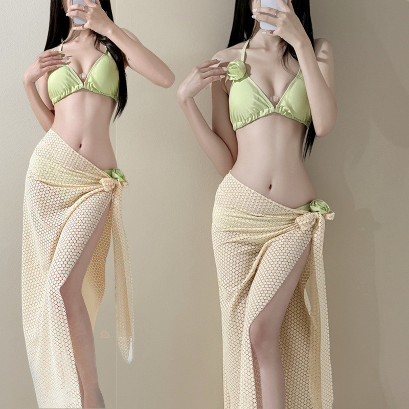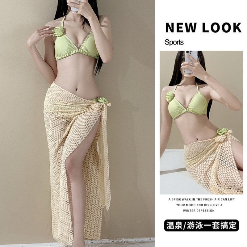 태국 새로운 생강 노란색 틈새 분할 꽃 비키니 섬 휴가 슬리밍 온천 3 피스 수영복 여성