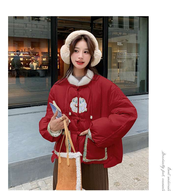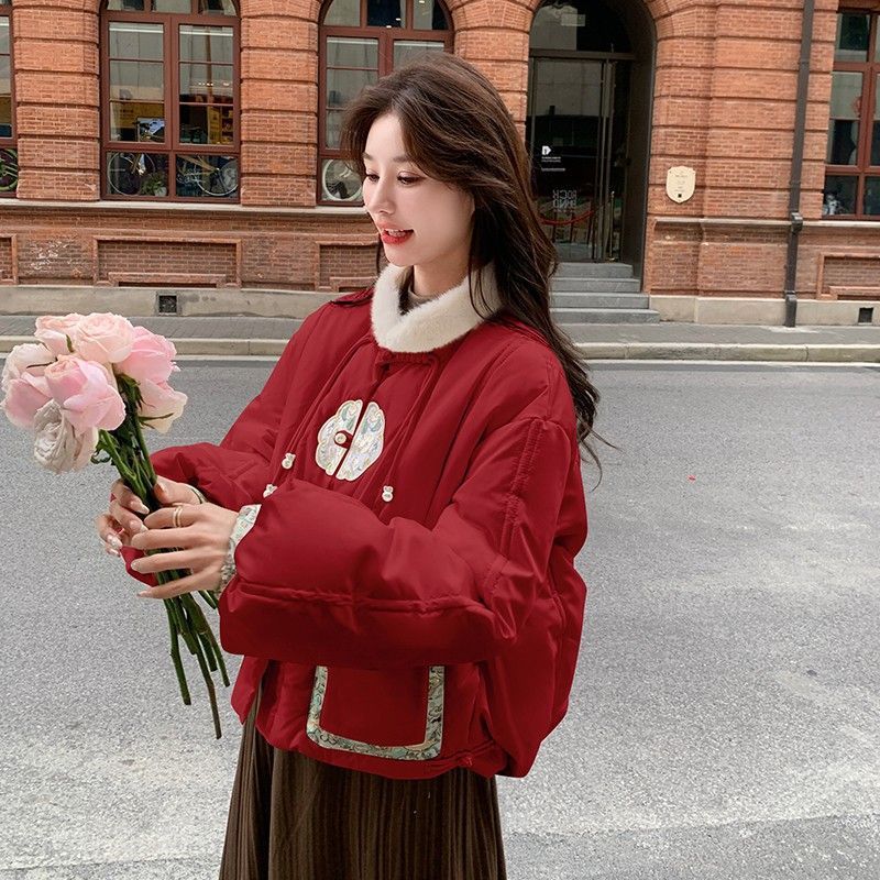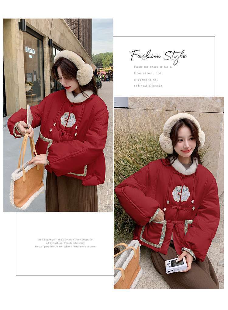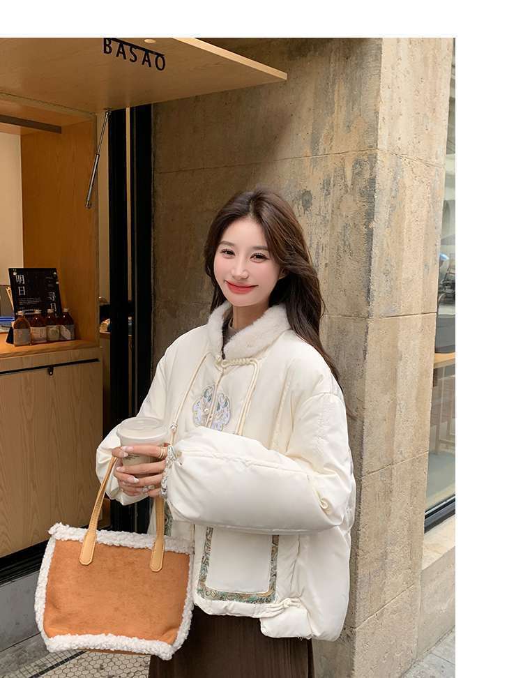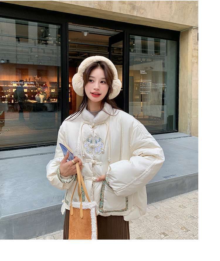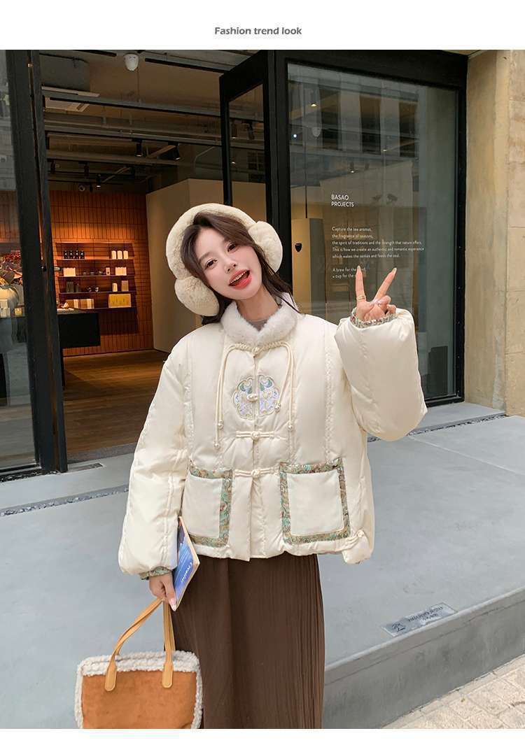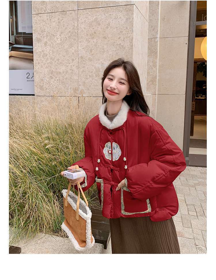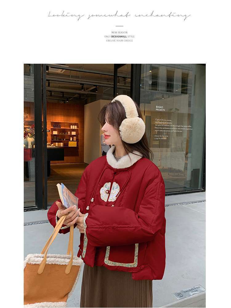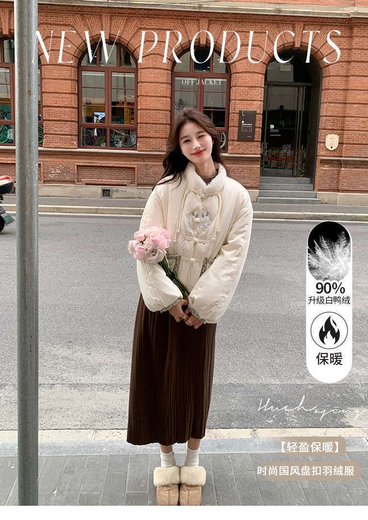 G2L 새로운 중국 레드 자수 다운 재킷 여성의 2024 겨울 새로운 국가 스타일 레트로 짧은 새해 화이트 덕 다운스토어 가기