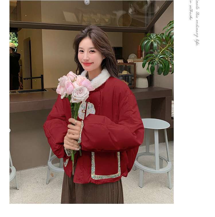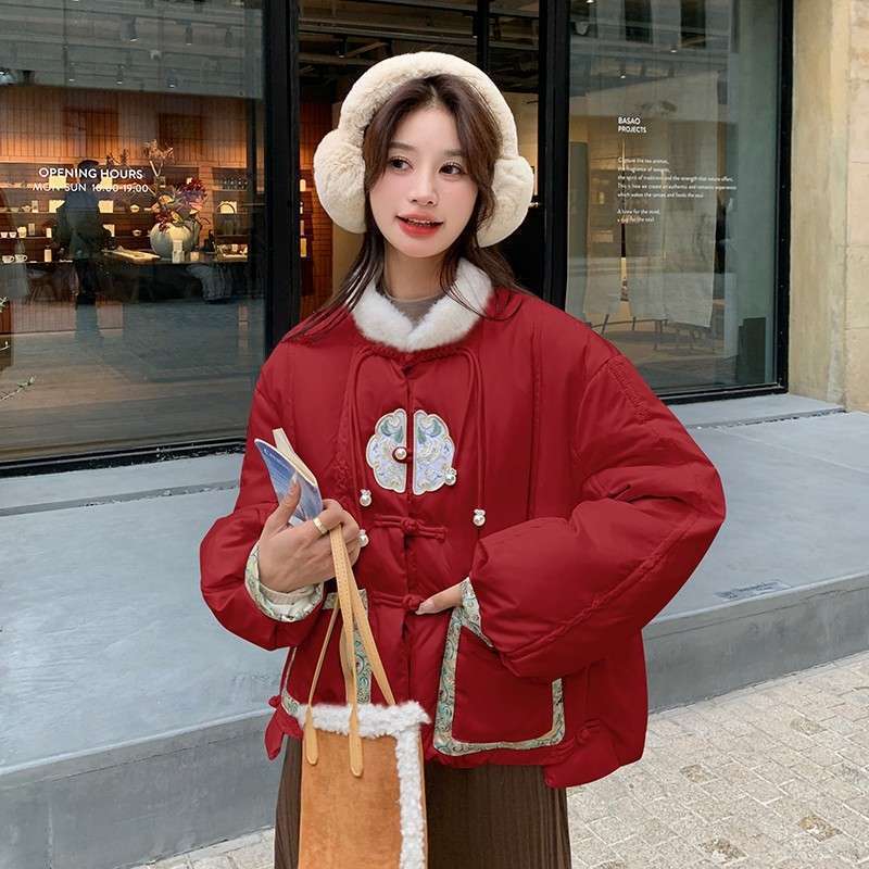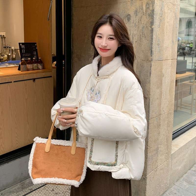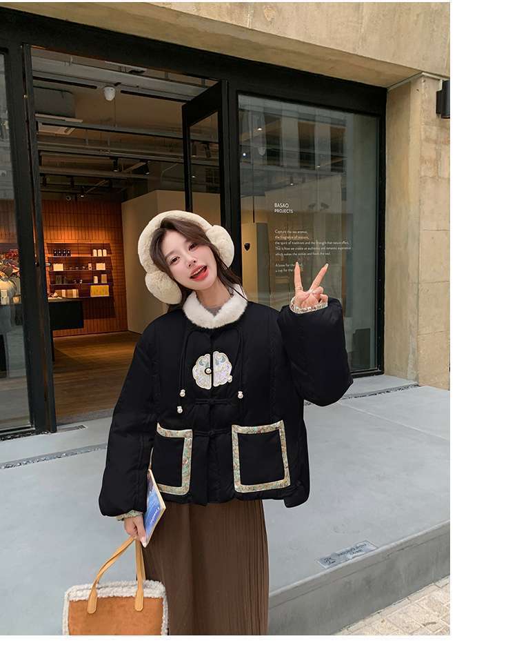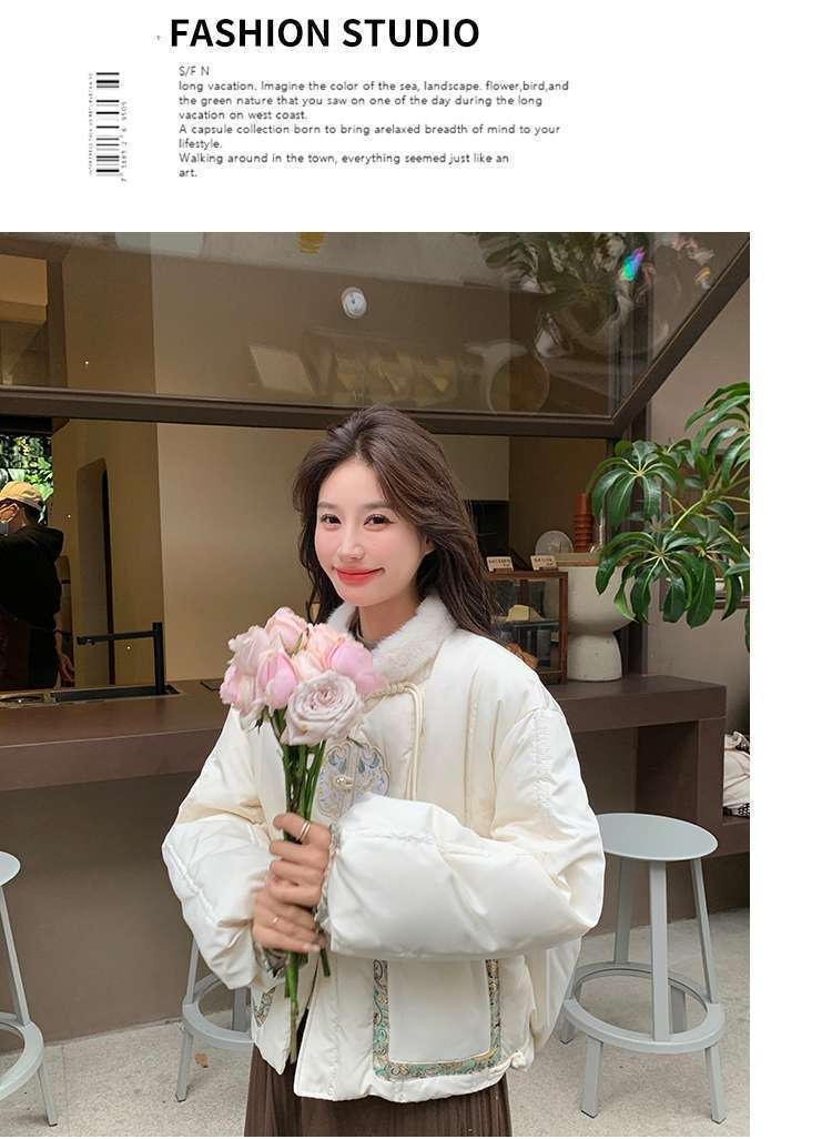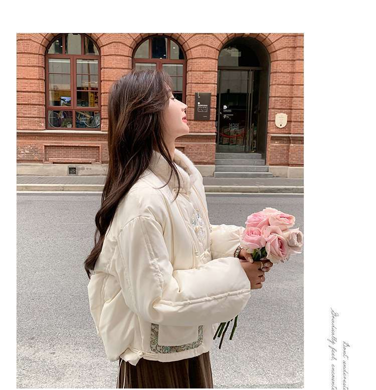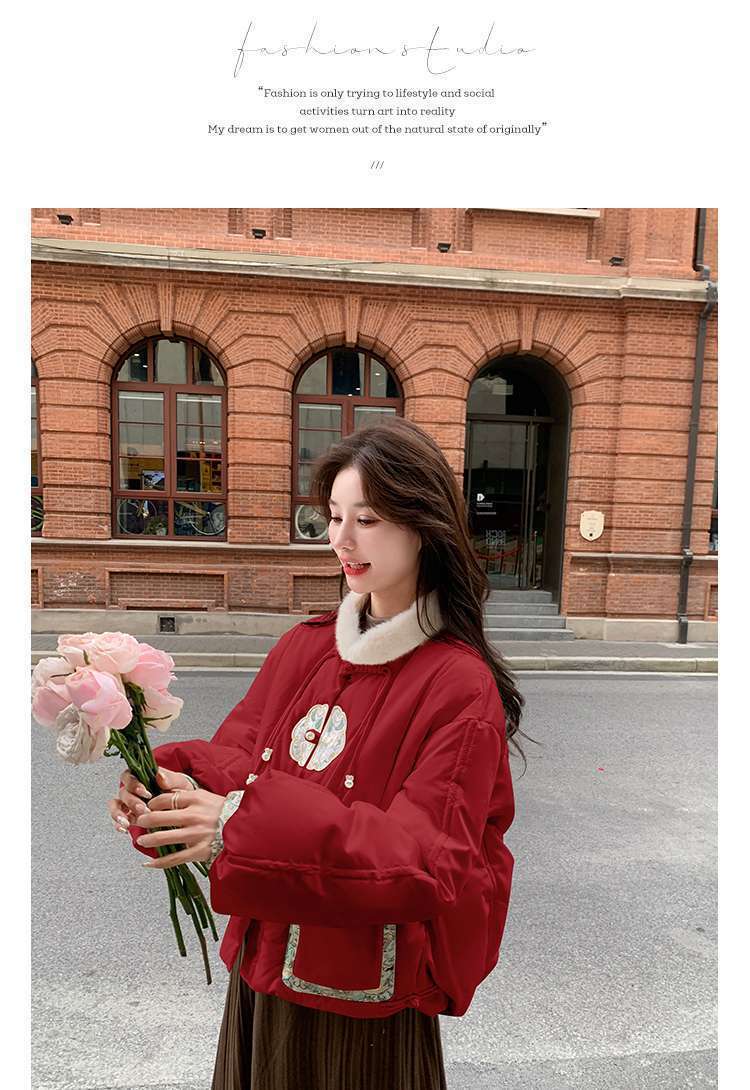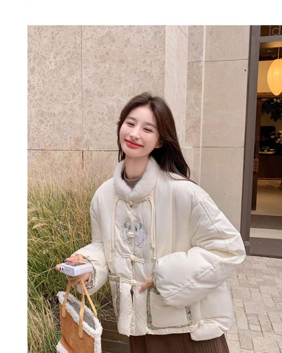 G2L 새로운 중국 레드 자수 다운 재킷 여성의 2024 겨울 새로운 국가 스타일 레트로 짧은 새해 화이트 덕 다운스토어 가기