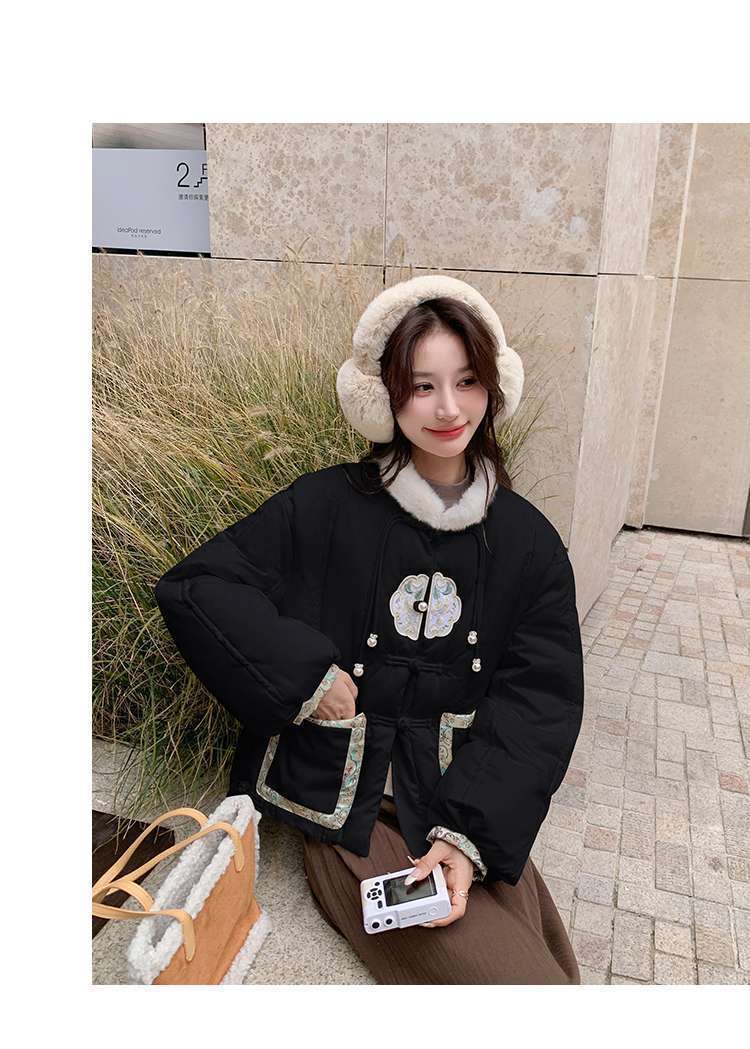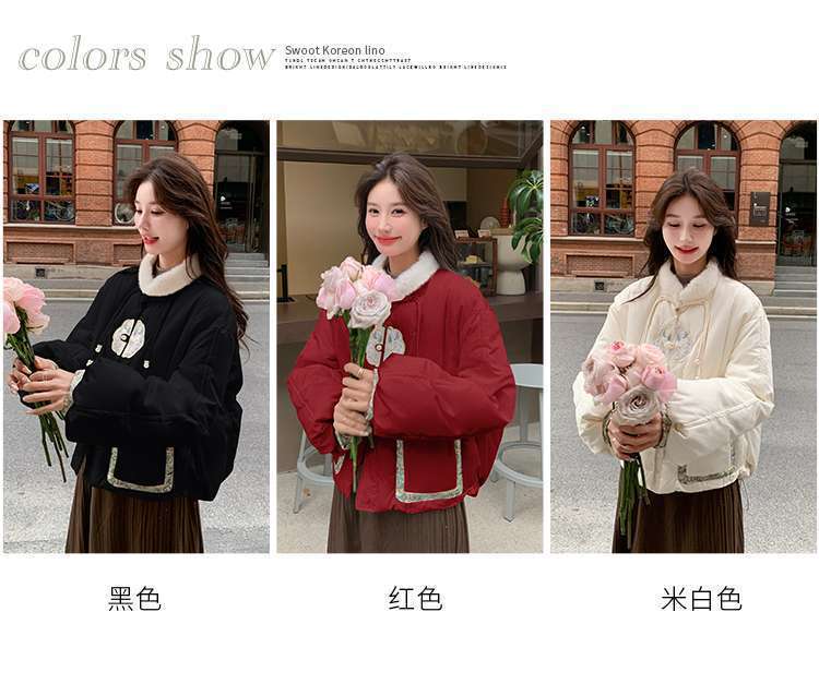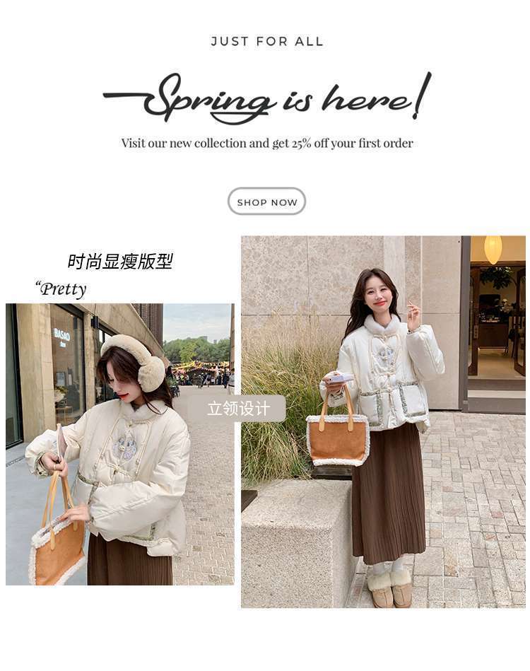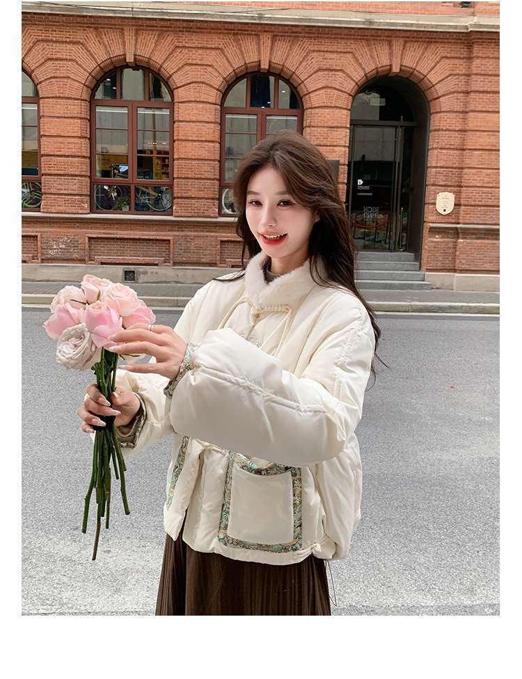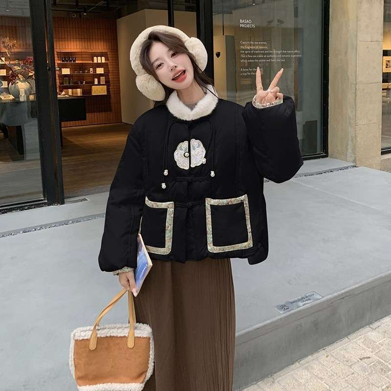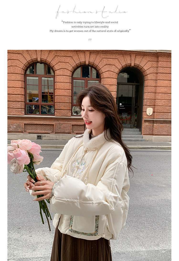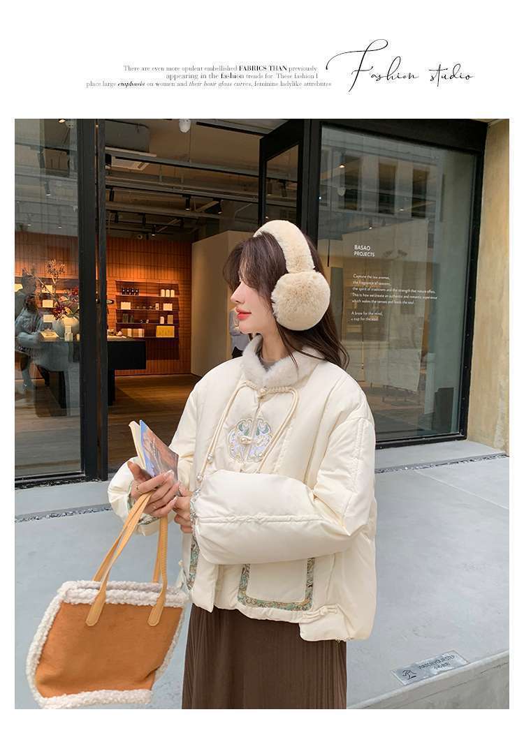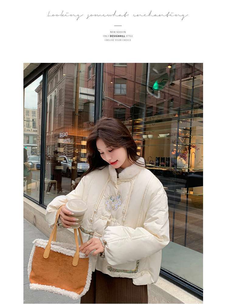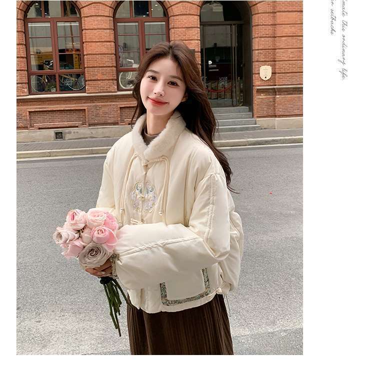 G2L 새로운 중국 레드 자수 다운 재킷 여성의 2024 겨울 새로운 국가 스타일 레트로 짧은 새해 화이트 덕 다운스토어 가기