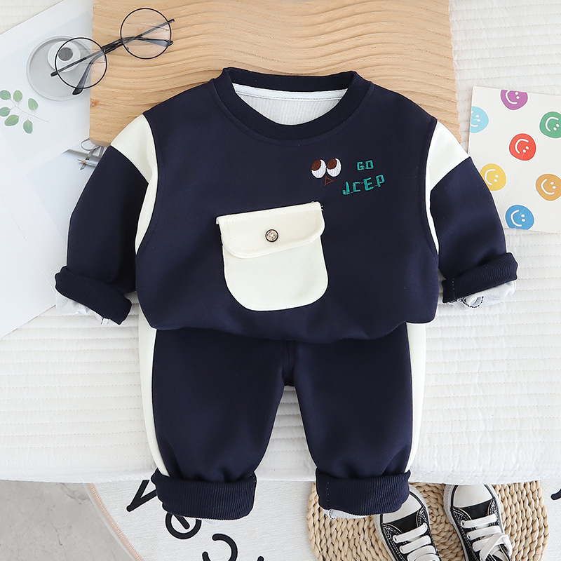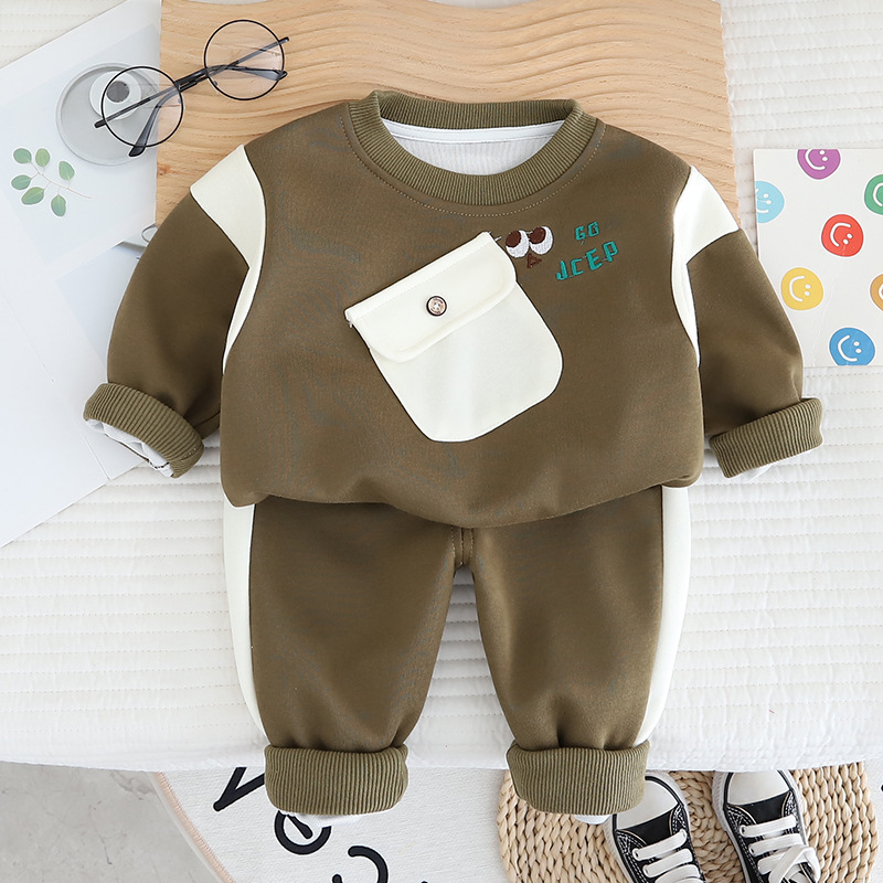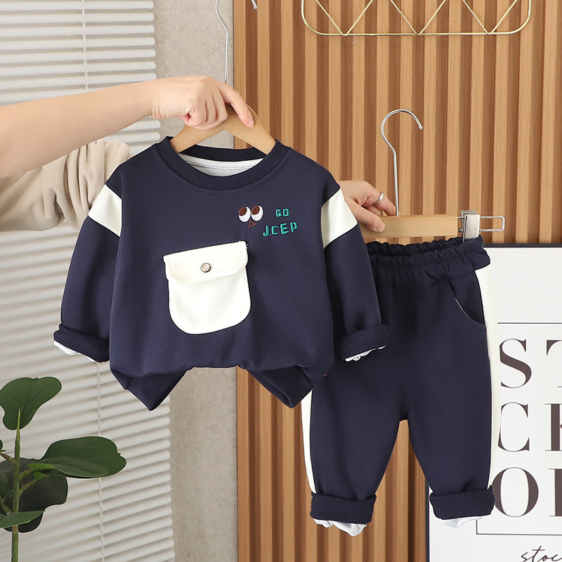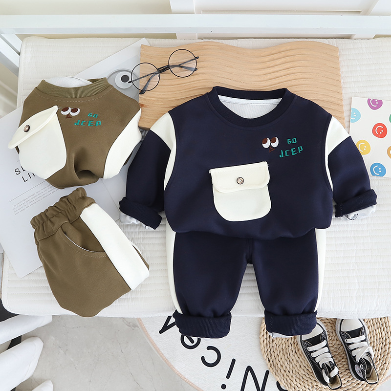 봄 2025 새로운 잘 생긴 소년 대조 컬러 포켓 셔츠 한국 어린이 의류 봄 가을 아기 투피스 세트스토어 가기