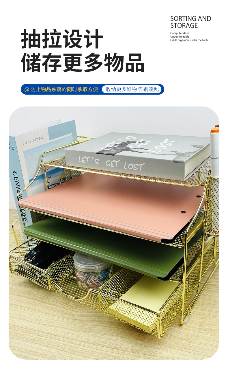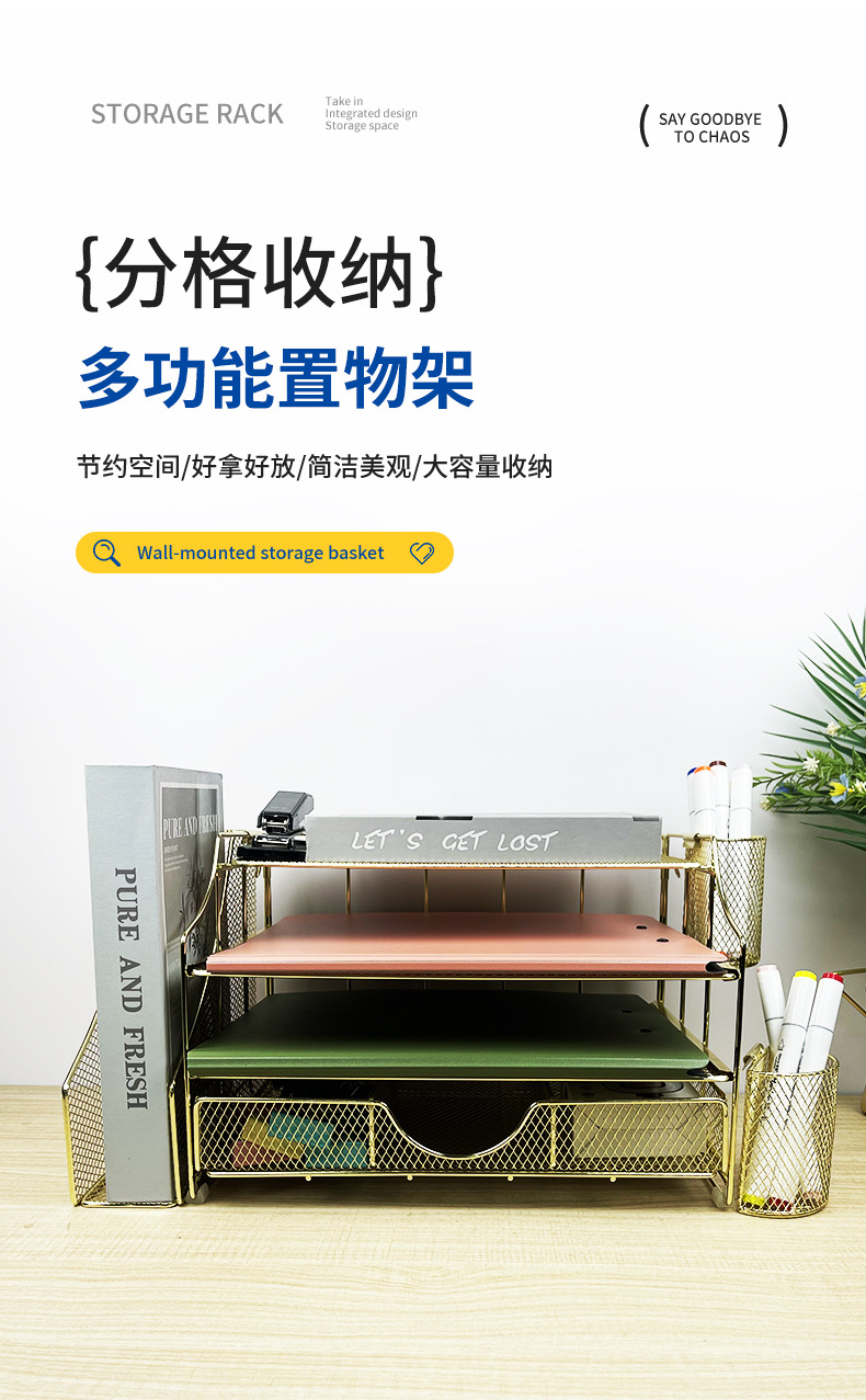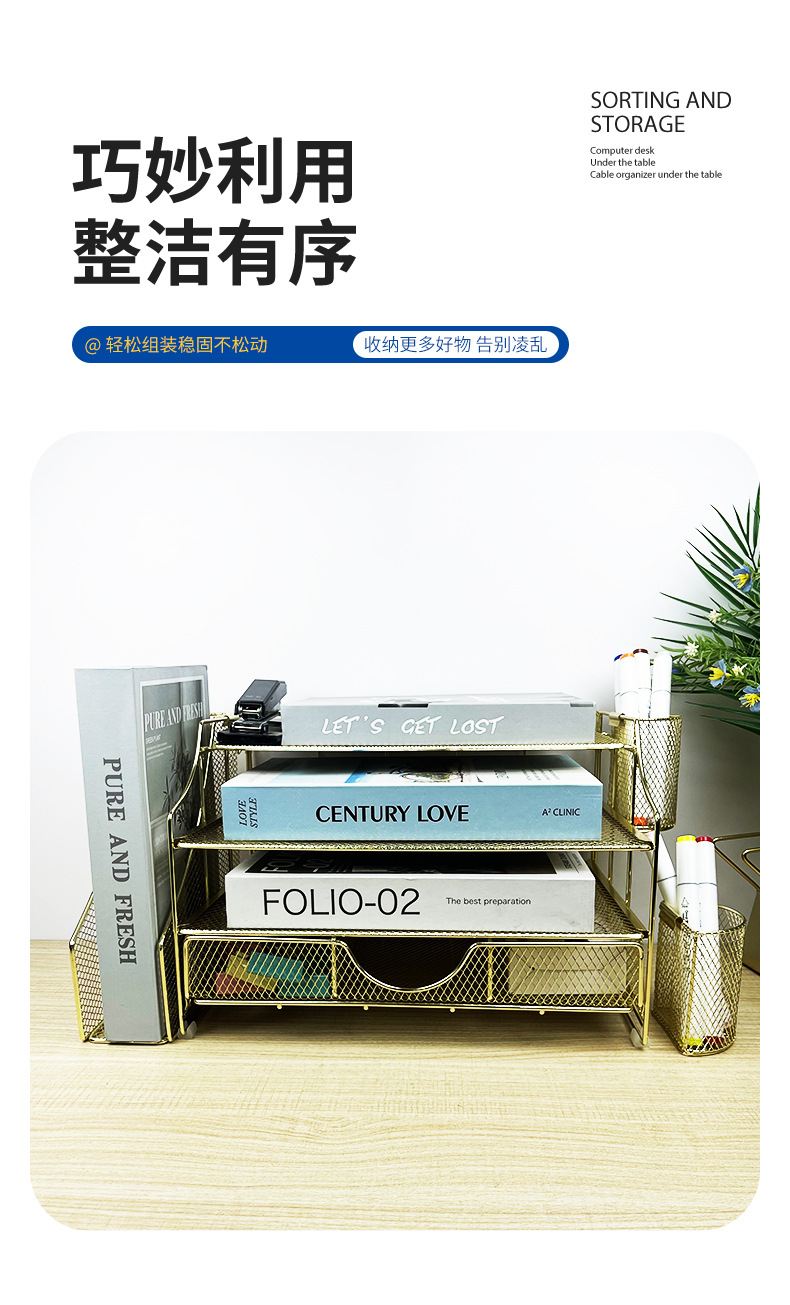 국경을 넘는 문서 보관함 다층 옷장 금색 수납 무타공 다기능 사무용품 보관함