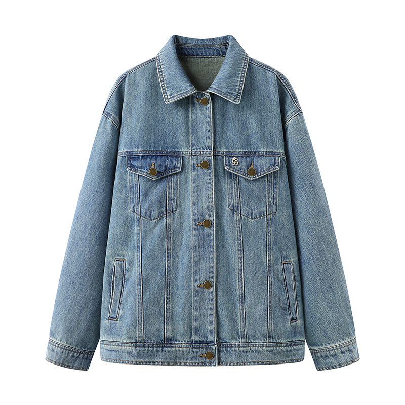 데님 셔츠 재킷 여자 2025 봄 새로운 한국 스타일 레트로 캐주얼 옷깃 데님 재킷 J651612701