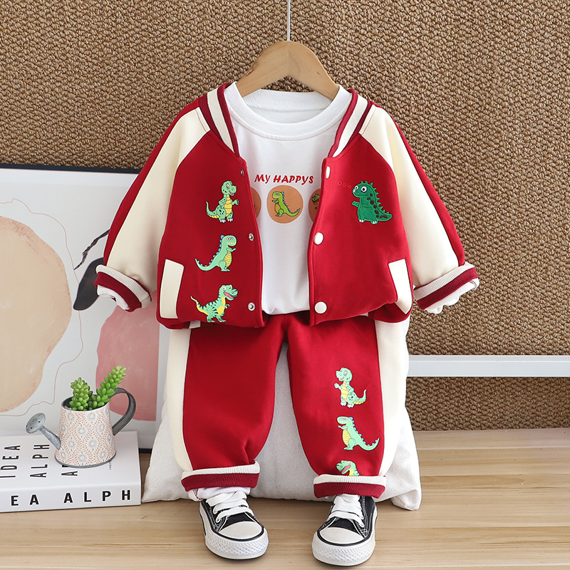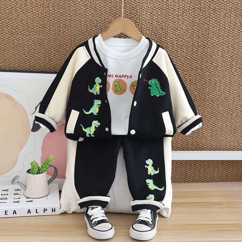 소년 봄 세트 2025 새로운 어린이 한국 스포츠 아기 인쇄 공룡 세 조각 세트스토어 가기