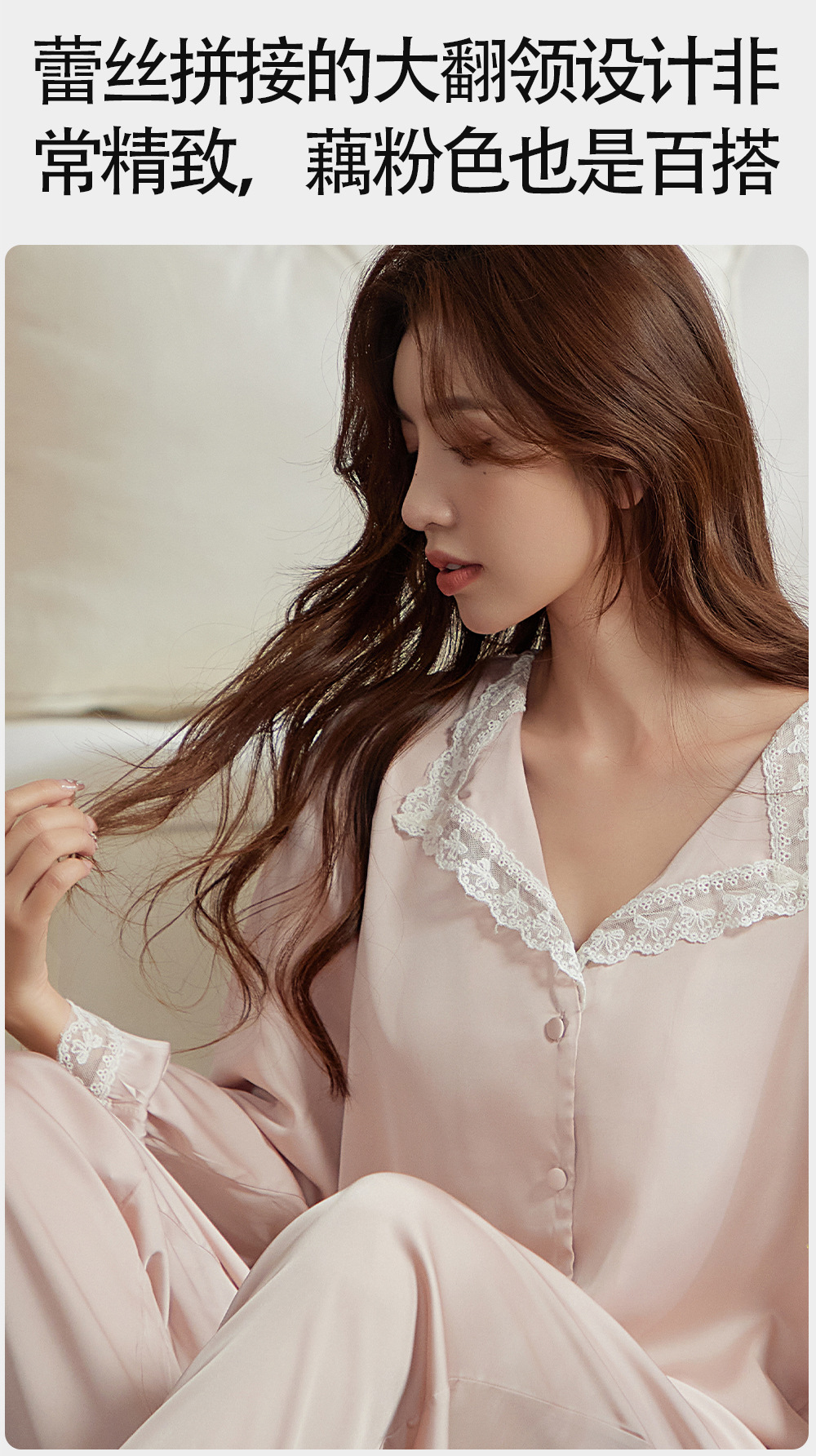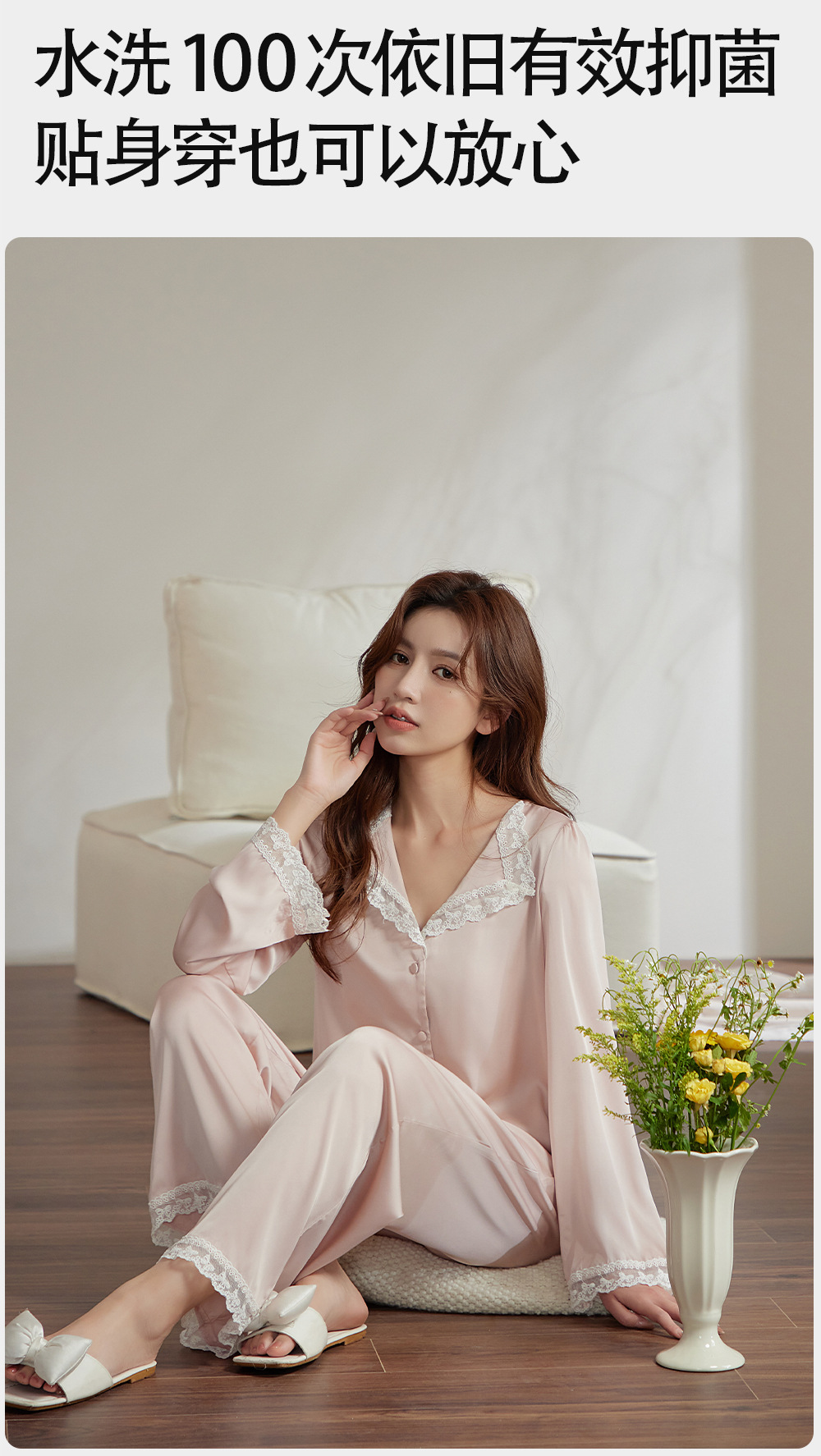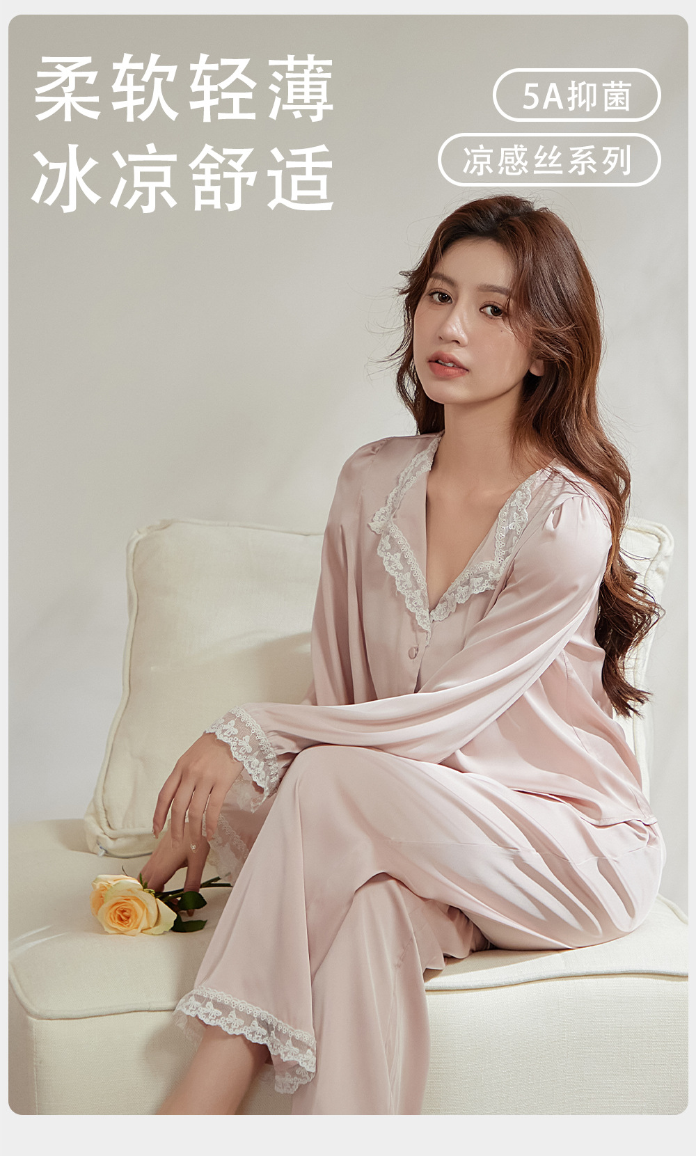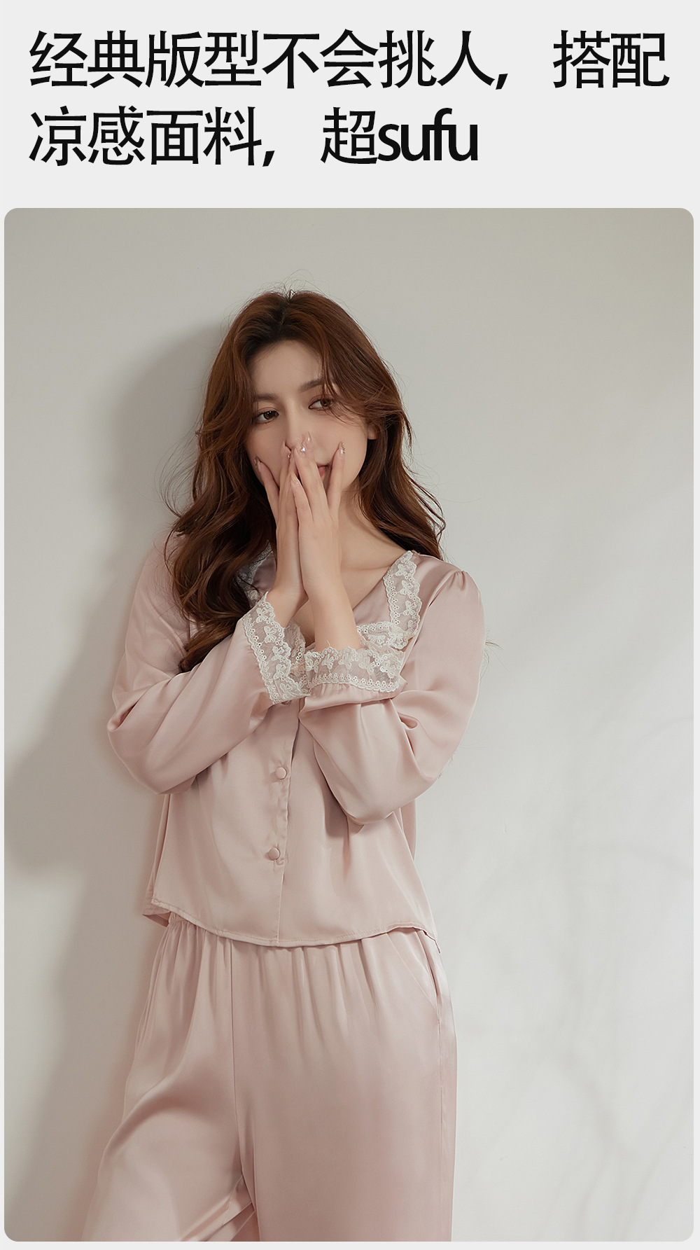 아이스 실크 잠옷 여성의 봄과 가을 달콤한 귀여운 공주 스타일 2025 새로운 모방 실크 세트 홈 옷스토어 가기