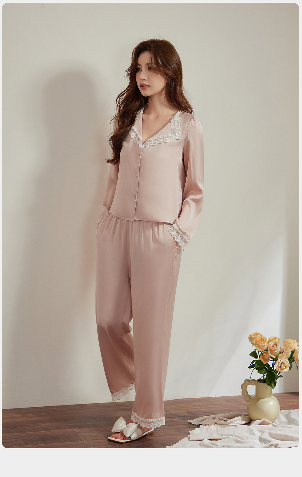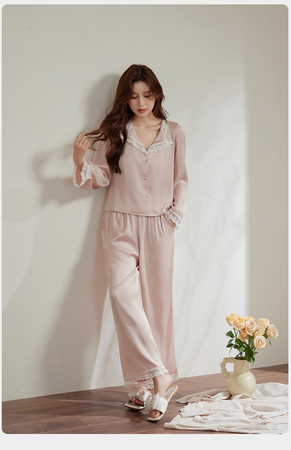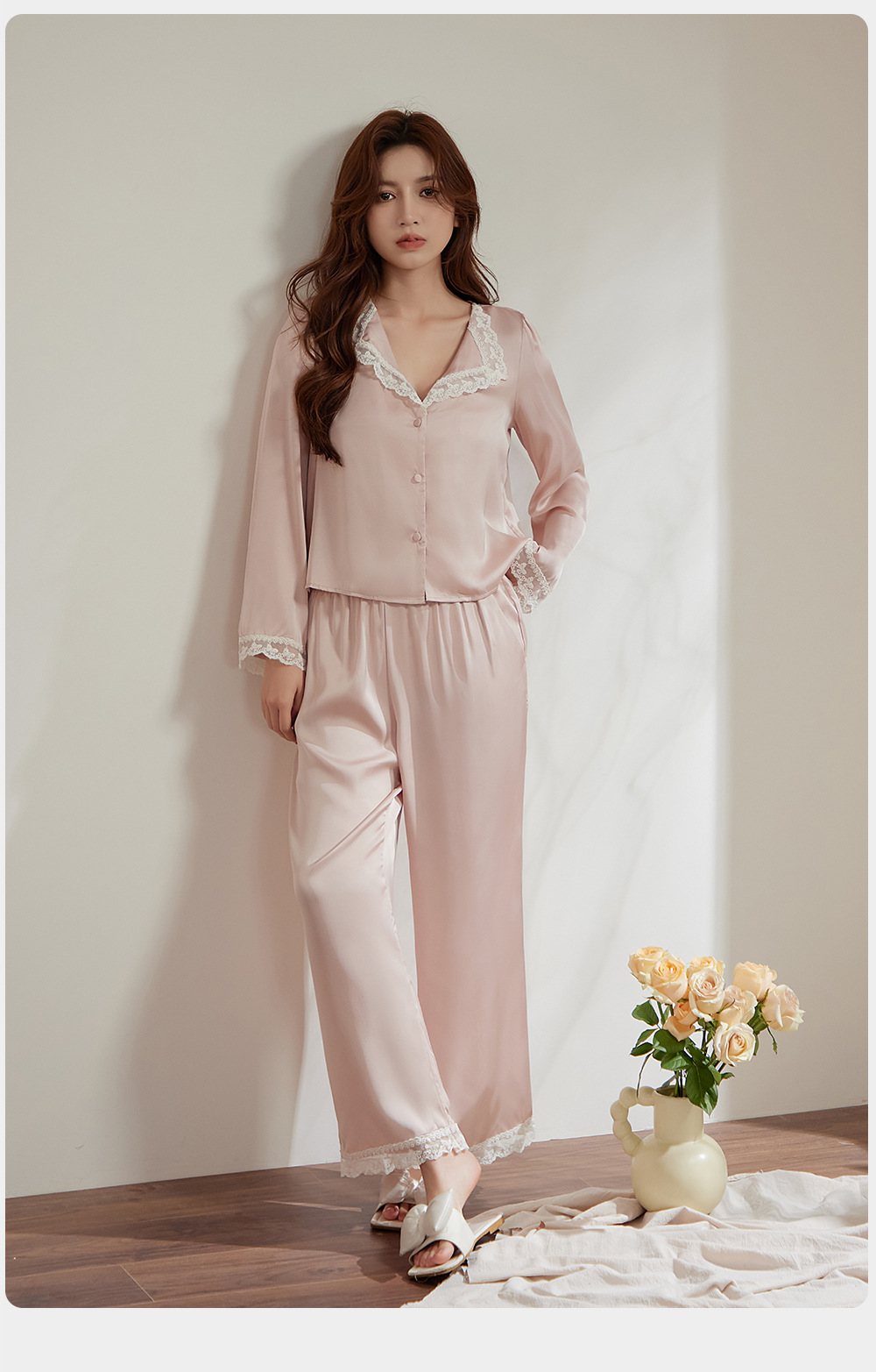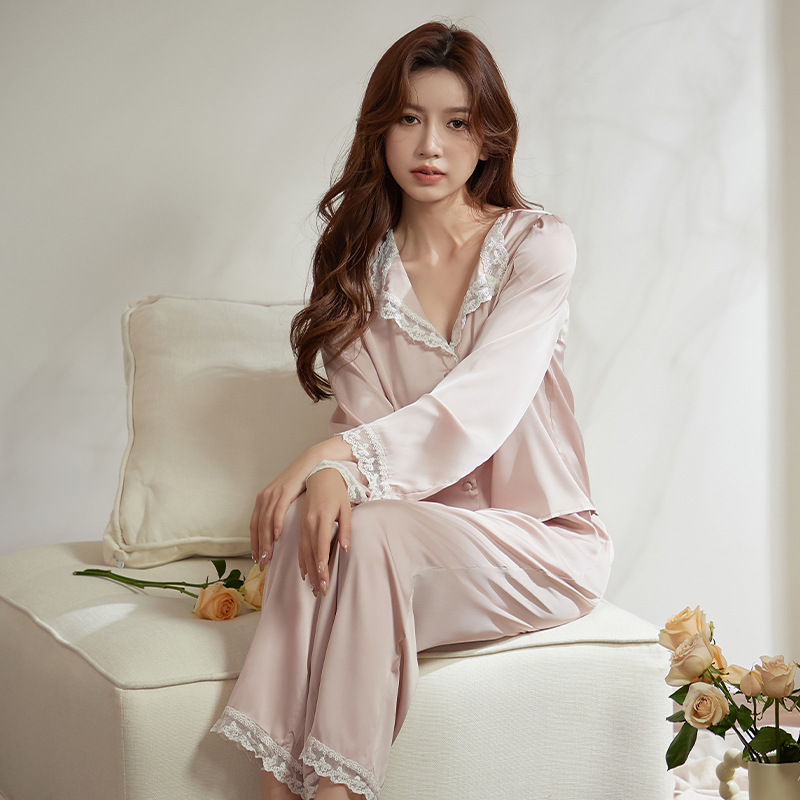 아이스 실크 잠옷 여성의 봄과 가을 달콤한 귀여운 공주 스타일 2025 새로운 모방 실크 세트 홈 옷스토어 가기