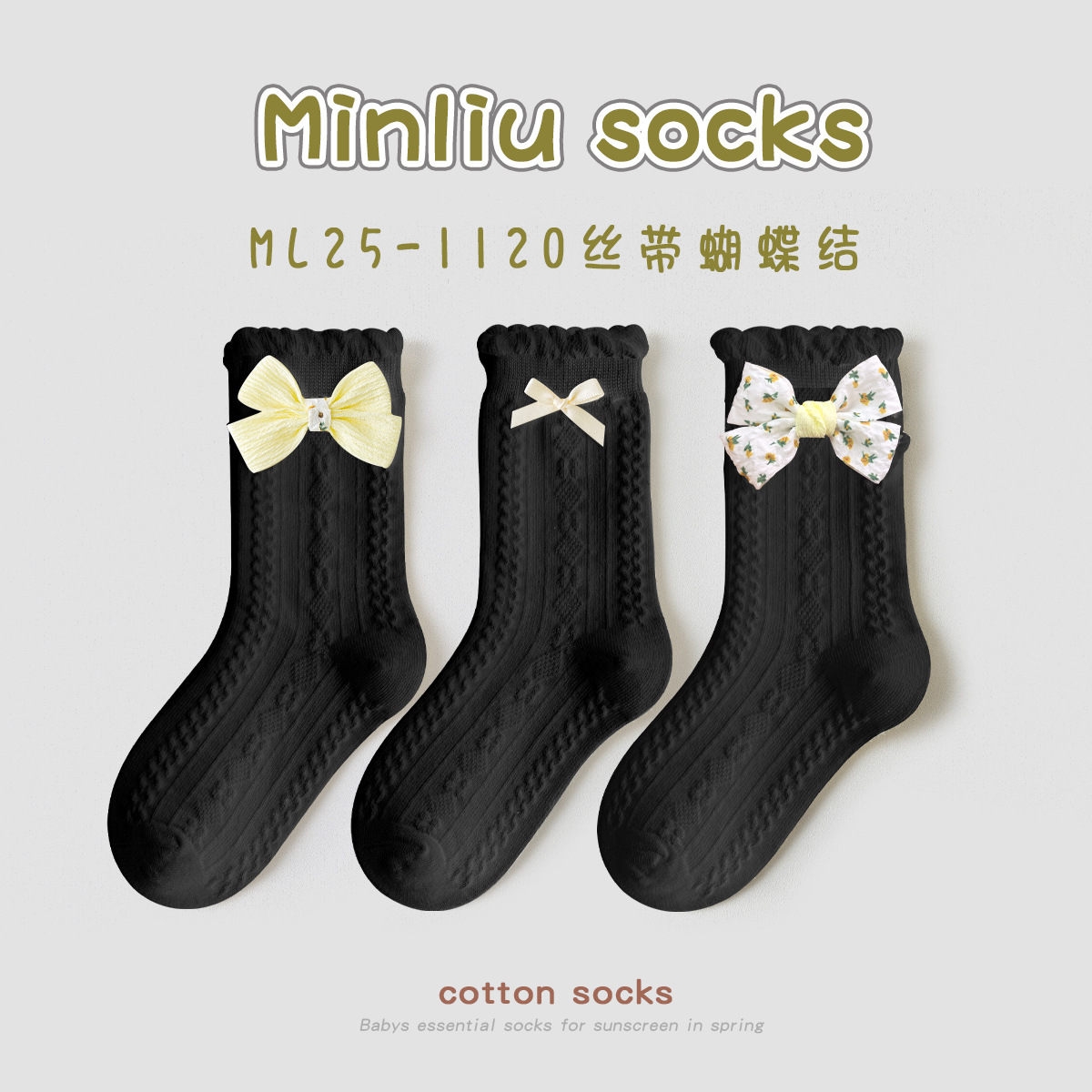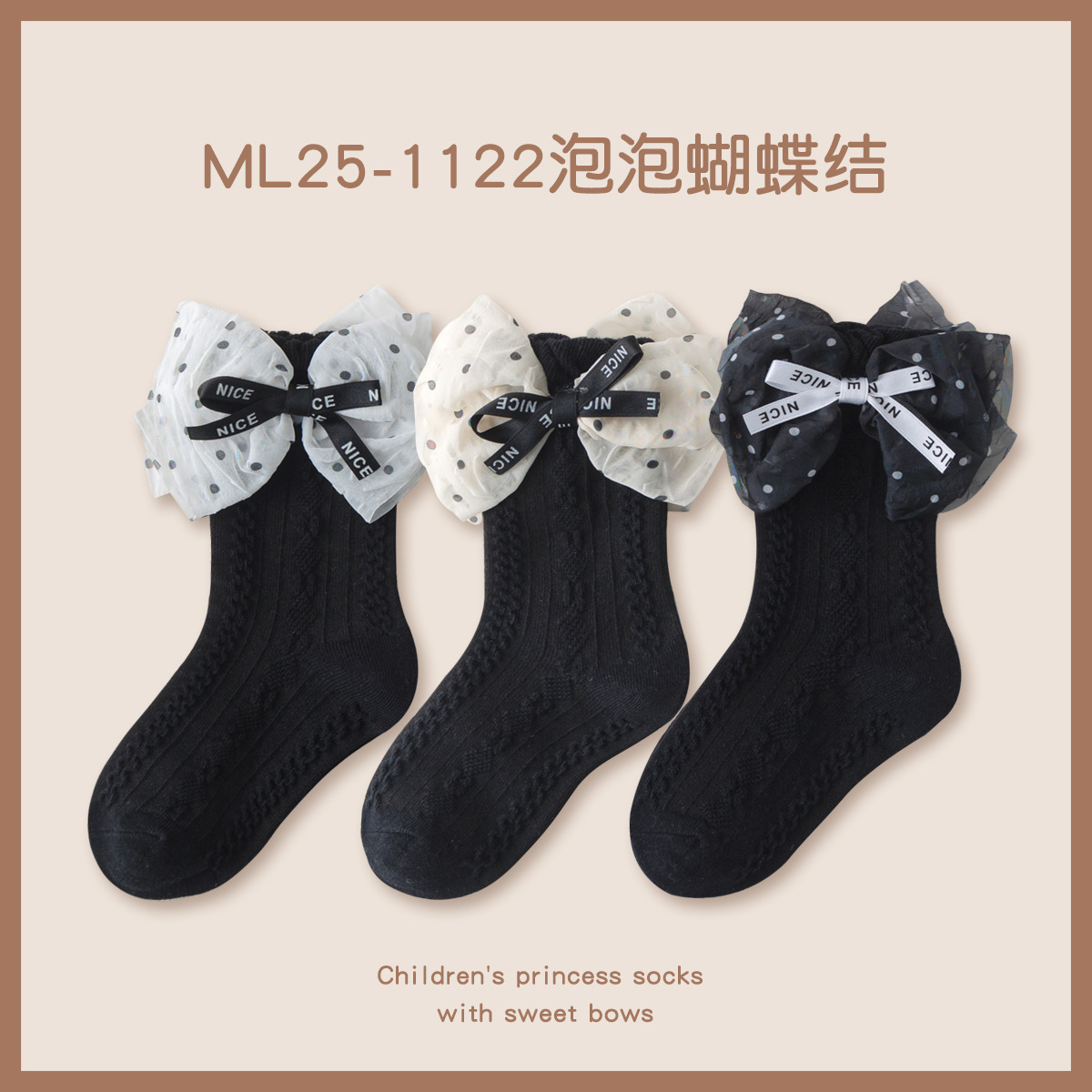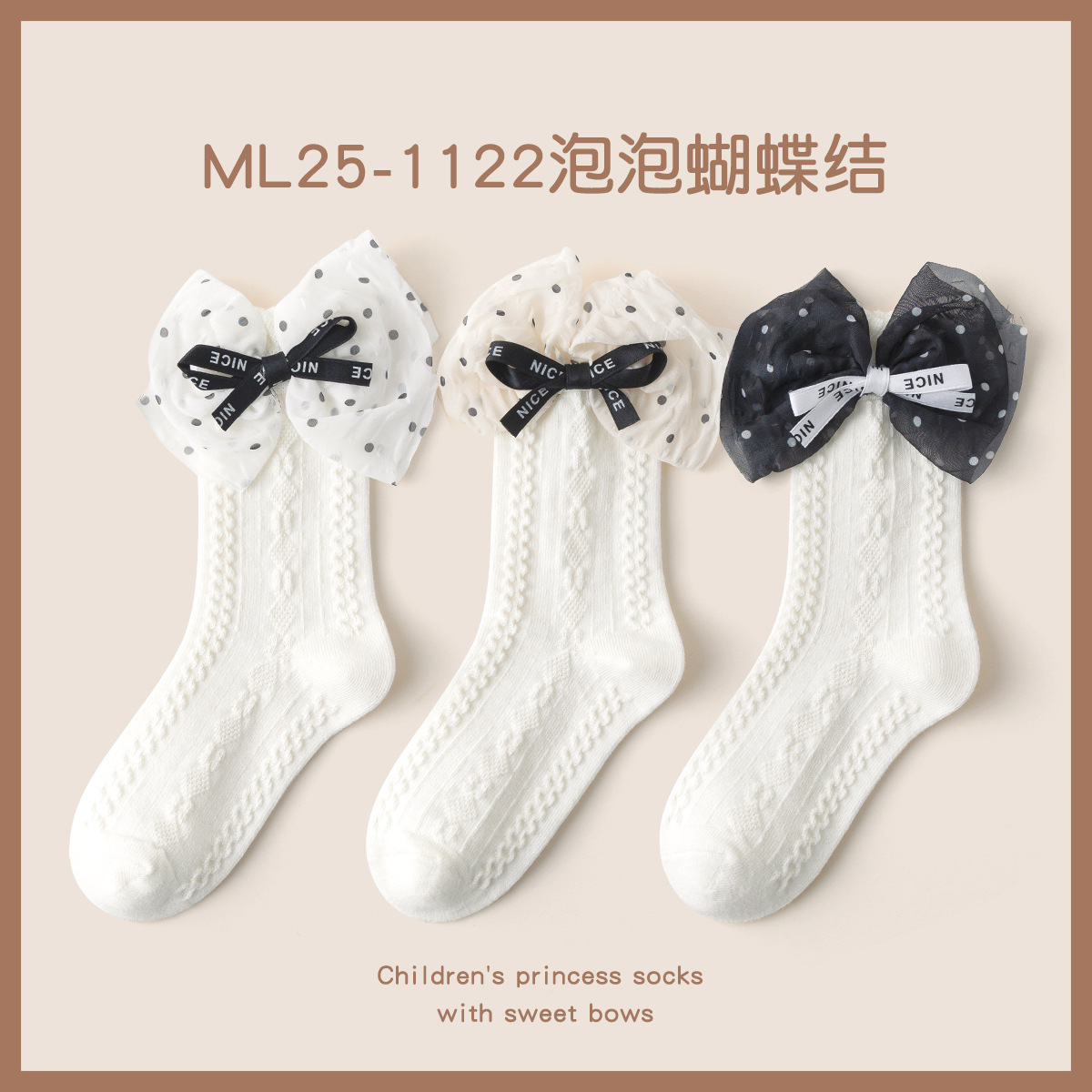 2025년 신상 로리타 레이스 리본 공주 양말 일본식 달콤한 소녀 중간 길이 양말 트렌디한 아동 양말