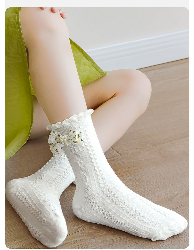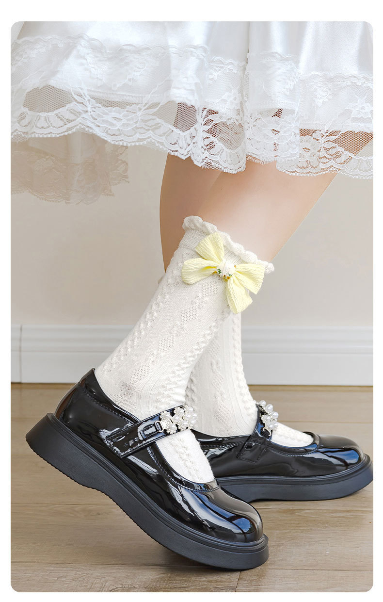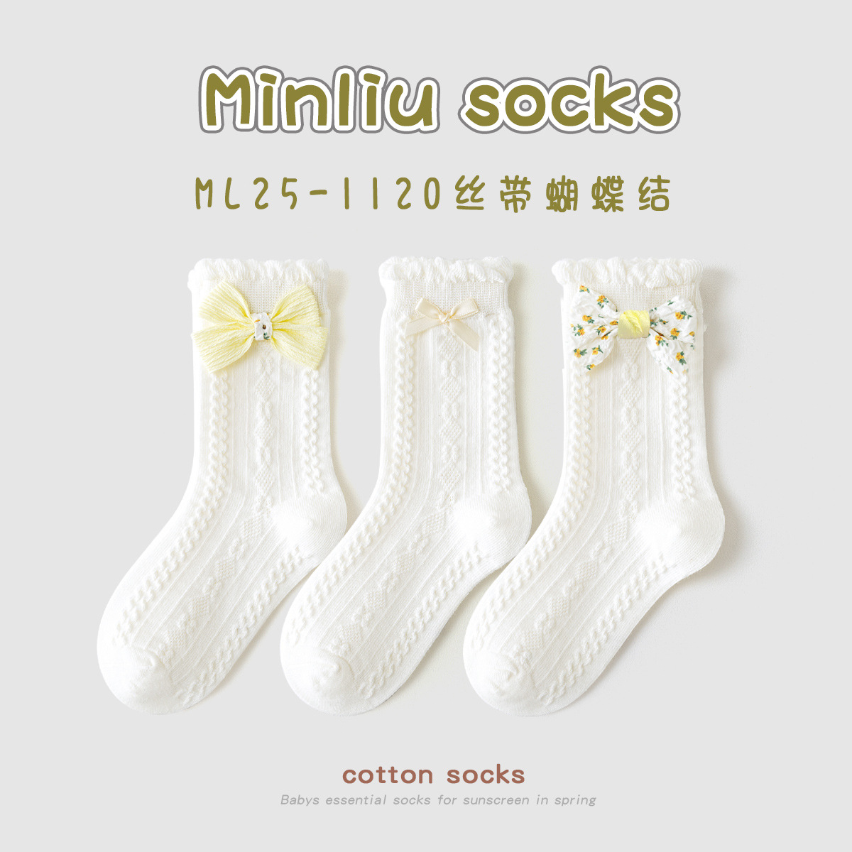 2025년 신상 로리타 레이스 리본 공주 양말 일본식 달콤한 소녀 중간 길이 양말 트렌디한 아동 양말