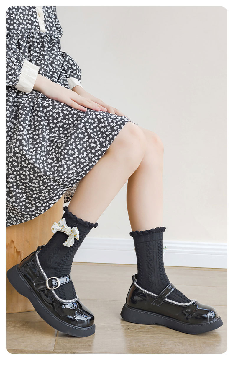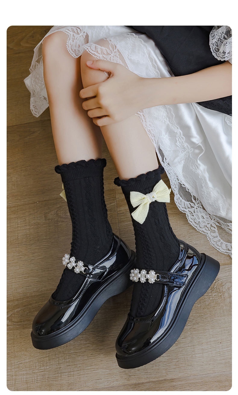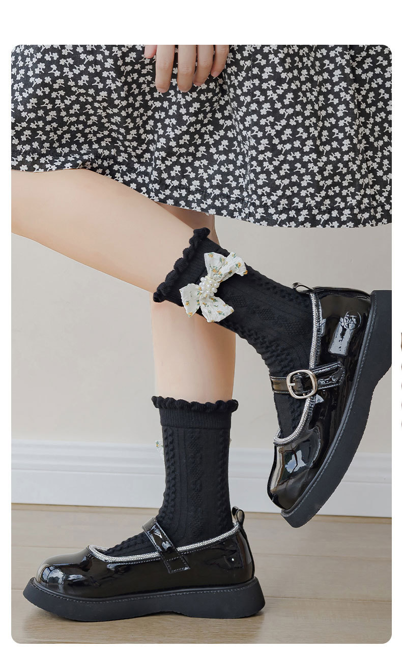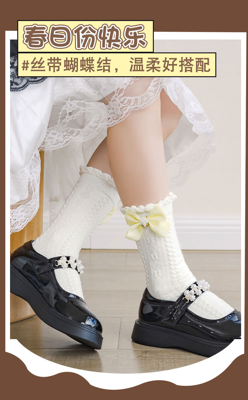 2025년 신상 로리타 레이스 리본 공주 양말 일본식 달콤한 소녀 중간 길이 양말 트렌디한 아동 양말스토어 가기