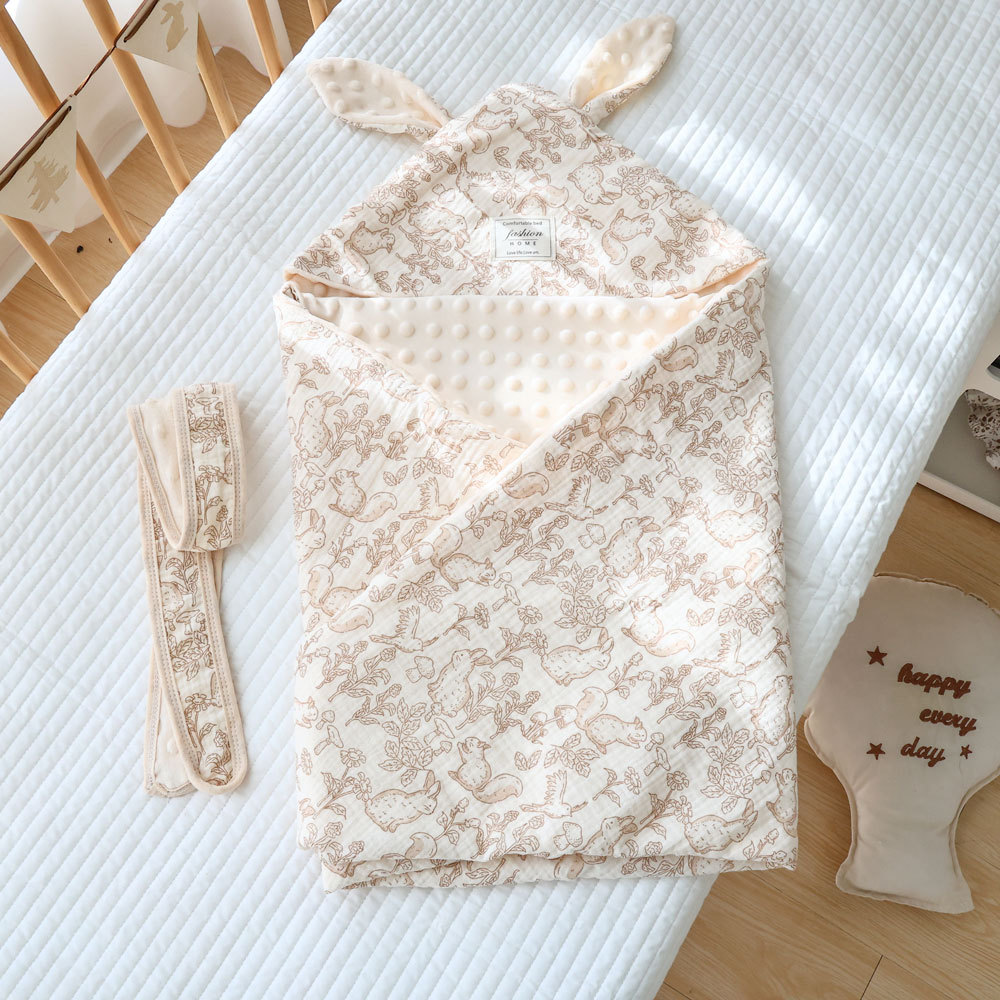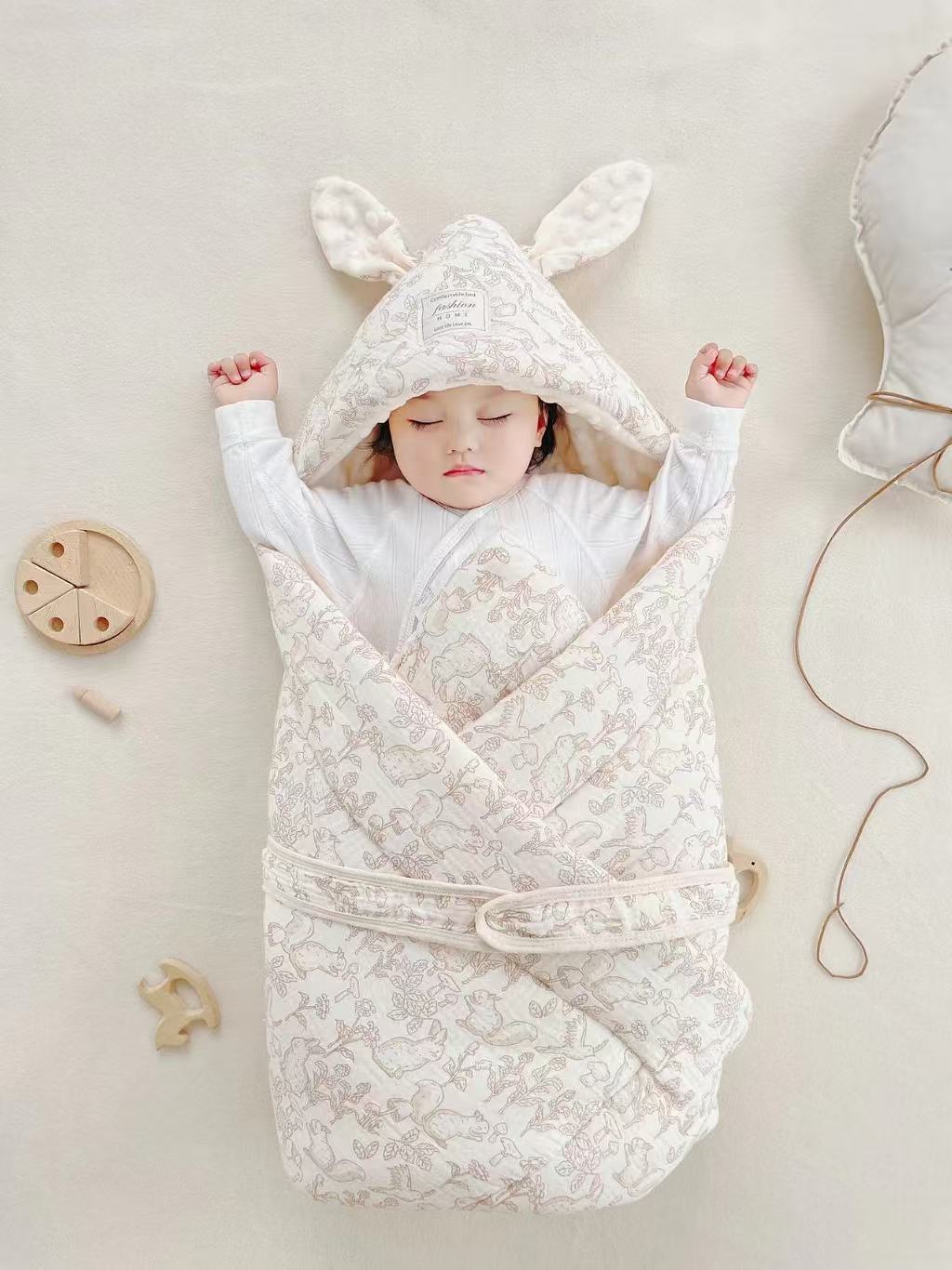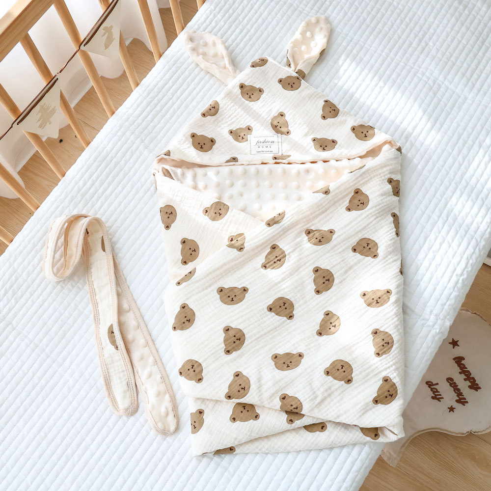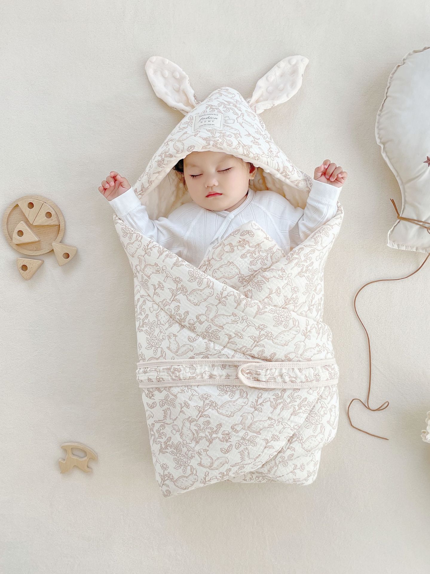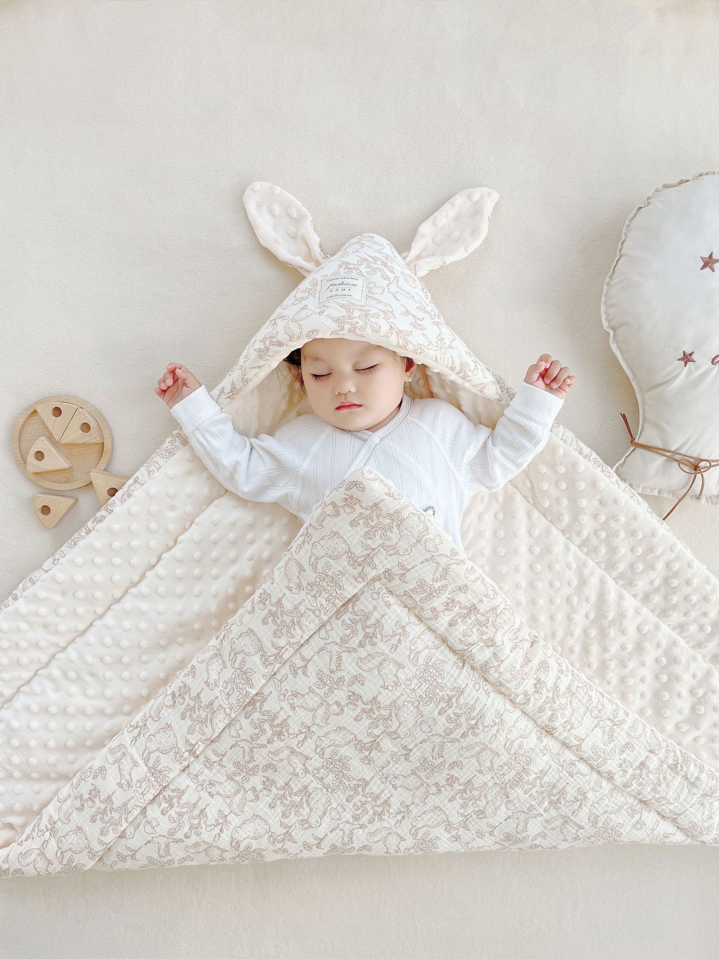 신생아 포대기 아기 출산실 가을 겨울용 두꺼운 포대기 순면 신생아 콩털 포대기