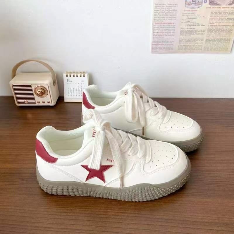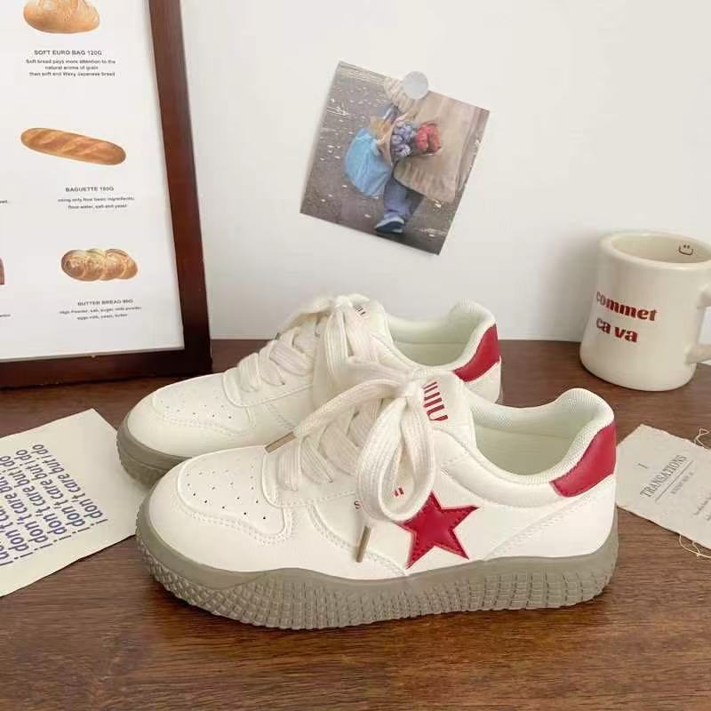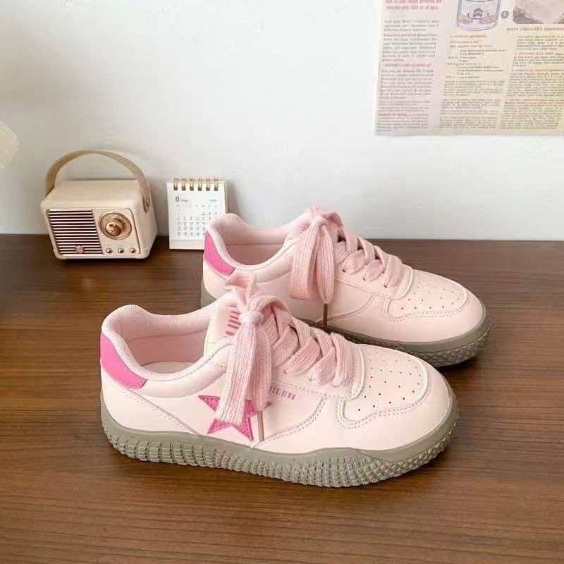 핑크 플랫폼 신발 여성 스타 봄 새로운 세련된 틈새 디자인 가죽 흰색 신발 학생 스포츠